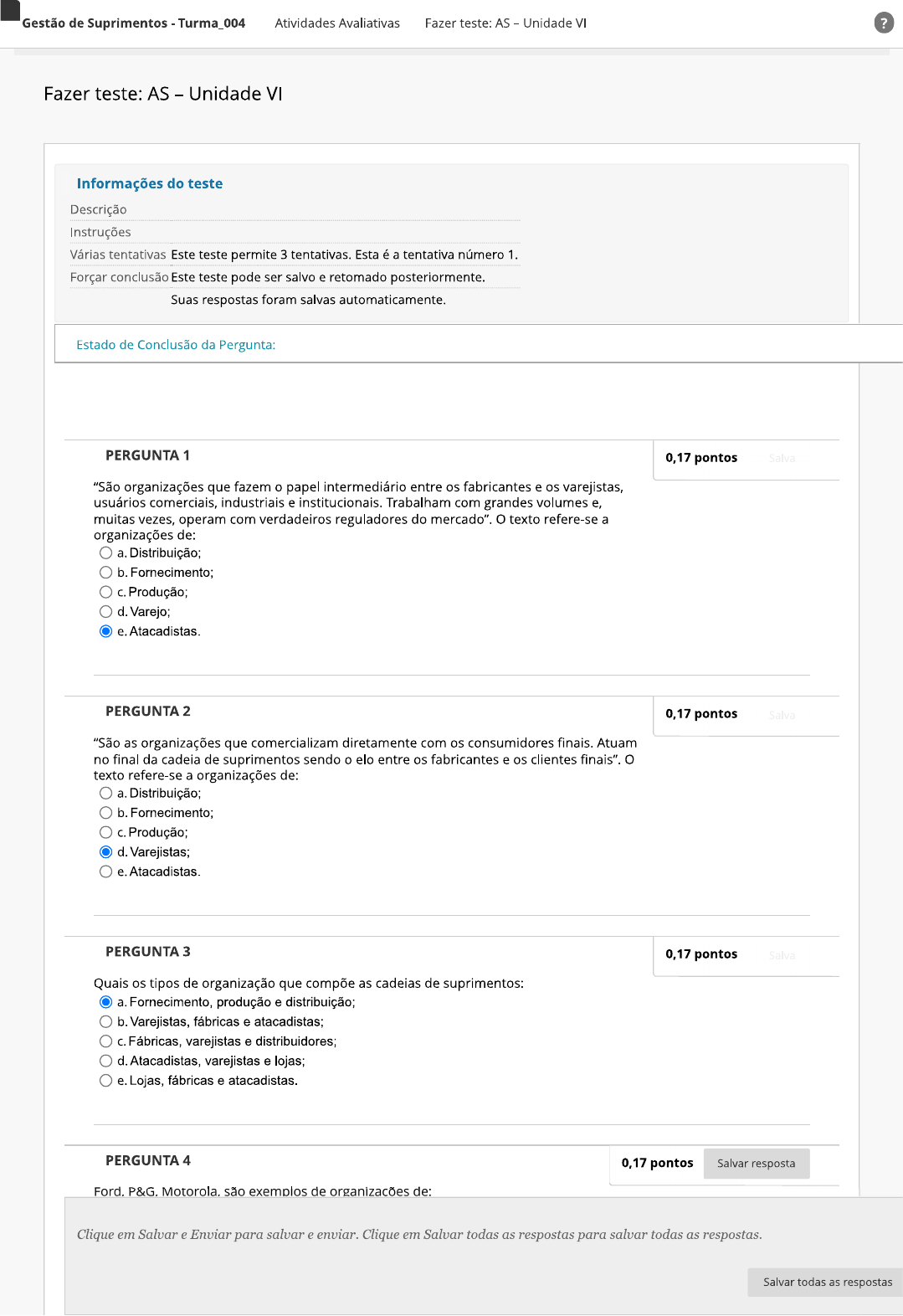 Pergunta 3 Sob a ótica de processos, a estrutura de poder funcional, a departamentalização é uma característica da: Gestão por processos. Gestão de...