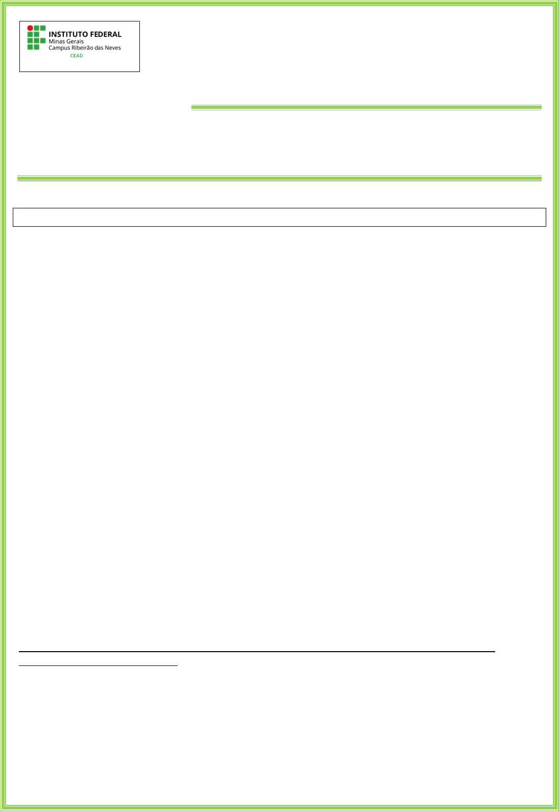 INSTITUTO FEDERAL DE EDUCAÇÃO, CIÊNCIA E TECNOLOGIA DE MINAS GERAIS CENTRO DE EDUCAÇÃO A DISTÂNCIA Campus Ribeirão das Neves Curso/período: Técnico subsequente em logística – modalidade EAD – 1º módulo Disciplina: Introdução à Logística Professora: Cristiane Alves Anacleto ORIENTAÇÃO DE ESTUDOS Unidade I – Introdução à Logística 1 – Como você vai estudar nesta Unidade. O conteúdo da unidade 1 deve ser estudado utilizando o caderno didático. O conteúdo corresponde é o referente à semana 1. Existem três aulas gravadas disponíveis no Ambiente Virtual de Aprendizagem. Semana 1 – Caderno didático Unidade 1 do livro VITORINO, C. M. Logística. São Paulo: Pearson, 2012. 168 p. Esse livro está disponível na biblioteca virtual. Faça uma boa leitura de todo o material disponibilizado. Se quiser saber mais, consulte as outras referências constantes no material da unidade e no plano de ensino da disciplina. Faça a atividade avaliativa de valor igual a 20 pontos. Se tiver dúvidas, anote-as e utilize o fórum de dúvidas (AVA). 2 – Como você será avaliado nesta Unidade. Uma atividade aberta avaliada em 20 (vinte) pontos. Nesta atividade você possui uma tentativa para encaminhar o que realizou. A sua realização também contabiliza a frequência na semana. Fique atento ao prazo de postagem, pois o sistema fecha automaticamente às 23h59m da data constante em seu cronograma de estudos. As atividades contemplam os conteúdos apresentados e disponibilizados para estudos. O prazo de entrega das atividades encerra-se (data de acordo com o planejamento), às 23h59m (horário de Brasília). Não haverá segunda oportunidade para resolução das atividades. Fique atento e não perca os prazos. 3 – O que você deverá alcançar a partir de seus estudos e atividades Você irá aprender sobre importância da logística nas organizações com alguns dados gerais do setor no Brasil. Conhecerá a evolução histórica da logística até os dias atuais. Aprenderá alguns que serão constantemente usados ao longo do curso também são apresentados. Compreenderá sobre a atuação do técnico em logística. 1 Tempo previsto para a Unidade A unidade será disponibilizada a partir de 05/02/2024 e ficará aberta durante toda a semana, até 11/02/2024. 4 – Funcionamento do Fórum de Dúvidas O Fórum de Dúvidas possui o objetivo de elucidar dúvidas! É importante a sua participação! O cronograma da disciplina é um importante aliado nos seus estudos. Nele você encontra todas as datas importantes da agenda da disciplina, assim como os horários disponibilizados pelo professor para tutoria. Se necessário, imprima-o, para que possa consultá-lo diariamente, ou semanalmente, quando for o caso. Atenciosamente, Cristiane Alves Anacleto