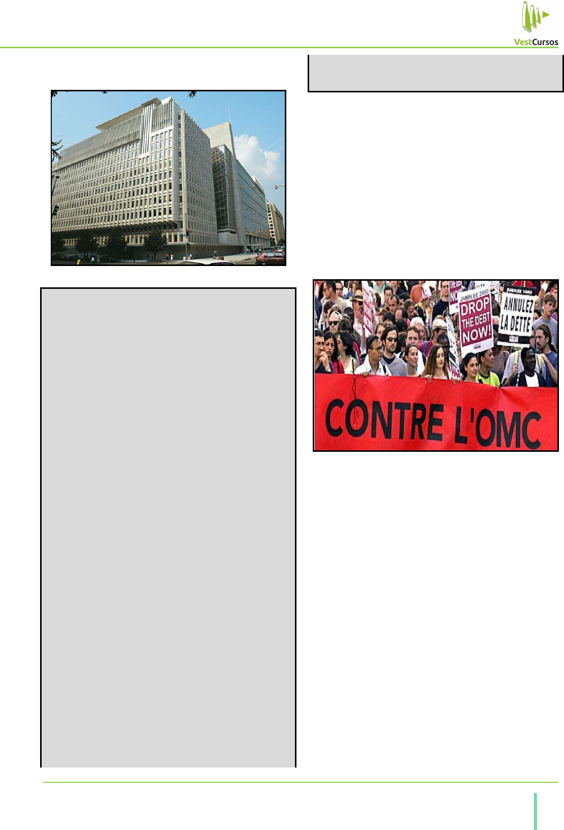 402 VestCursos – Especialista em Preparação para Vestibulares de Alta Concorrência CURSO ANUAL DE GEOGRAFIA – (Prof. Italo Trigueiro) Por tradição, o presidente do Banco é norte americano e é nomeado pelos Estados Unidos, o maior acionista do Banco. Sede do Banco Mundial, Washington, DC. A IDEOLOGIA DO BANCO MUNDIAL Há mais de meio século, o Banco Mundial promove com financiamentos e ideias a expansão do capitalismo. Este sistema econômico tornou-se universal com a lógica da acumulação, da maximização do lucro e da competição, penetrando os múltiplos aspectos da vida humana e da natureza. O Banco Mundial determina a concepção de desenvolvimento e as estratégias para alcançá-lo. Suas políticas macroeco- nômicas, que condicionam a aprovação de empréstimos, são ditadas pelos interesses do mercado. Este enseja concentração, desigualdade, injustiça, instabilidade, concorrência. As orientações, seguidas à risca pelos governos, beneficiam mais as corporações multinacionais do que as comunidades nacionais e os trabalhadores. Impropriamente denominado de agência multilateral, o Banco Mundial constitui um poderoso instrumento para promover a ideologia da modernização no Terceiro Mundo. Os empréstimos aumentam a dívida pública dos países clientes, que reduzem os investimentos produtivos e cortam gastos sociais para pagar os juros da dívida. O resultado é o aumento do desemprego, da pobreza, da fome, da violência. A influência do Banco Mundial ultrapassa seus recursos financeiros (US$ 30 bilhões anuais para projetos), seus técnicos (8 mil funcionários) e sua área de atuação (4,8 bilhões de pessoas em 100 países). Ele exerce liderança política sobre as demais agências internacionais, influencia governos, intelectuais, imprensa, empresariado e ONG’s/Organizações Não-Governamentais. Atualmente, as contestações ao Banco Mundial se intensificam e diversificam. Um ex-diretor afirma que ficou menos pobre o país que ignorou as medidas neoliberais do Consenso de Washington. Nos Estados Unidos, os organizadores da campanha “50 anos bastam” realizam boicotes e pressionam por mudanças institucionais. Manifestações de protesto ocorrem paralelamente às assembleias anuais da entidade e críticas contundentes começam a encontrar acolhida nos meios de comunicação. Generaliza-se a resistência ao programa de reforma agrária de mercado, liderada pela Via Campesina, articulação de entidades camponesas de mais de 60 países. Monica Das Martins ORGANIZAÇÃO MUNDIAL DO COMÉRCIO (OMC) Diferentemente do FMI e do Banco Mundial, que têm suas sedes em Washington, a Organização Mundial do Comércio está sediada em Genebra, na Suíça. Essa organização foi criada em 1995 em substituição ao Acordo Geral de Taxas e Tarifas (GATT, em inglês General Agreement on Tariffs and Trade), este último criado em 1944. A OMC não faz parte do sistema da ONU e tem como objetivo fixar as regras do comércio mundial visando ampliá-lo. Em busca desse objetivo, a OMC atende os governos que se sentem prejudicados no comércio mundial. Além disso, organiza rodadas de negociação entre seus países-membros que podem durar anos, visando à obtenção de acordos entre eles sobre conflitos no comércio mundial. BLOCOS ECONÔMICOS Paralelamente às negociações multilaterais para a liberalização comercial no âmbito da OMC, são conduzidas diversas negociações de caráter regional, entre dois ou mais países (negociações bilaterais), para formação de blocos econômicos ou para a intensificação dos acordos nos blocos já constituídos. Podem-se definir quatro modelos de integração econômica vigentes: • Área de Livre-comércio: Pressupõe acordos comerciais que visam exclusivamente à redução ou eliminação de tarifas aduaneiras entre os países-membros do bloco. No intercâmbio de produtos, entre os países participantes, ficam abolidas as tarifas alfandegárias, porém cada país mantém suas próprias tarifas em relação aos não-membros. Ex.: NAFTA. • União Aduaneira: Além da isenção de tarifas alfandegárias, na circulação de mercadorias dentro da União, é estabelecida uma barreira alfandegária comum contra os países não participantes, uma tarifa externa comum (TEC). É uma abertura de fronteiras para mercadorias, capitais e serviços, mas não permite a livre circulação de trabalhadores. Ex.: MERCOSUL. (União Aduaneira Incompleta). • Mercado Comum: Visa à livre circulação de pessoas, mercadorias, capitais e serviços. O único exemplo é a União Europeia, que, além de eliminar as tarifas aduaneiras internas e adotar tarifas comuns para o mercado fora do bloco, permite a livre circulação de pessoas, mão-de-obra, investimentos e todo tipo de Aula 17 – Centros de Poder Econômico e Político I 403 VestCursos – Especialista em Preparação para Vestibulares de Alta Concorrência serviços entre os países-membros. Ex.: UNIÃO EUROPÉIA. • União Econômica e Monetária: é o caso, novamente, dos países da União Europeia, que, na fase atual, adotaram o euro como moeda única, administrada pelo Banco Central Europeu. Nessa forma de integração, é necessário que os países estipulem limites de inflação e déficit público. DO BENELUX À UNIÃO EUROPEIA O BENELUX foi o grande precursor das diversas alianças formadas posteriormente. Criado em 1944, integrou a economia da Bélgica, da Holanda e de Luxemburgo num único mercado. Em 1952, a CECA (Comunidade Europeia do Carvão e do Aço), formada por seus países – Bélgica, Holanda, Luxemburgo, França, Alemanha e Itália -, estabeleceu um mercado siderúrgico comum, promovendo a livre circulação de matérias-primas e mercadorias ligadas à indústria siderúrgica, com o objetivo de reestruturar e acelerar o desenvolvimento da indústria de base. Os países-membros da CECA ampliaram os objetivos dessa organização e criaram o mais eficiente bloco