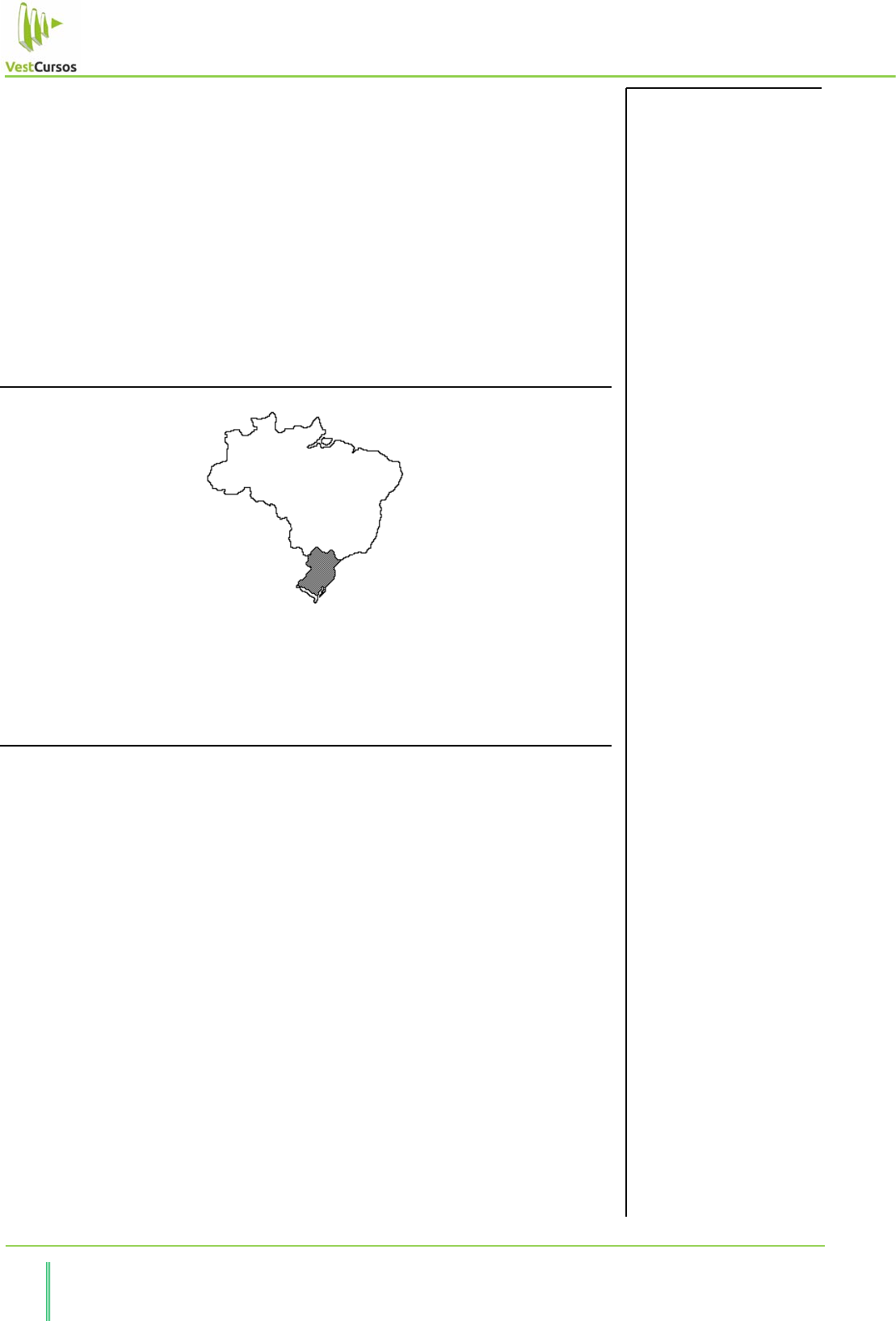Aula 21 – A Estrutura Fundiária Brasileira das Sesmarias a Leia de Terras (até 1930) 17 VestCursos – Especialista em Preparação para Vestibulares de Alta Concorrência a) A formação de uma "indústria da seca" no sertão nordestino, baseada na incorporação de tecnologias modernas pelos agricultores sertanejos, que viabilizam a produção agrícola em áreas de clima semi-árido. b) A expansão da mecanização da produção agrícola, paralela ao crescimento e pauperização da categoria dos trabalhadores rurais temporários, como os bóias-frias na cultura da cana-de-açúcar. c) A criação de reservas ecológicas nos Estados do Acre e Amazonas, destinadas à preservação de árvores nativas, com a conseqüente proibição das atividades tradicionais de extração por populações de seringueiros e castanheiros. d) O aumento da mão-de-obra na atividade agrícola, como conseqüência da expansão de modernas empresas rurais de caráter familiar, como no caso da produção integrada de porcos e aves no interior paulista. e) O baixo nível de tecnologia ainda presente nas culturas de exportação, como a soja, e o modelo de expansão das áreas de pecuária intensiva para o interior do país, baseado em pequenas unidades de criação familiar. Questão 07 A área assinalada no mapa pode ser definida como: a) pouquíssimo povoada, com reduzida ocupação produtiva do solo. b) pouco povoada, com economia mais ou menos estagnada. c) de agropecuária tradicional, mas com algumas grandes cidades. d) de acentuada industrialização e urbanização. e) de agropecuária moderna, com cidades de porte médio e agroindústrias. Questão 08 Só produzir alimentos não é o bastante para acabar com a fome. O importante - sobretudo nos países e nas regiões onde a população rural é grande e tem taxas de crescimento demográfico elevadas - é que se consiga uma integração orgânica entre o combate à fome e a produção de alimentos por parte dos pobres que vivem no campo. (Abramovay, R. "Folha de S. Paulo" 18/06/95.) O texto pode ser utilizado como argumento a favor: a) do desenvolvimento industrial. b) do controle da natalidade. c) da reforma agrária. d) da distribuição de cestas básicas. e) da exportação de produtos agrícolas. Anotações 18 VestCursos – Especialista em Preparação para Vestibulares de Alta Concorrência CURSO ANUAL DE GEOGRAFIA – (Prof. Fernandes Epitacio) EXERCÍCIOS DE FIXAÇÃO Questão 01 "(...) Grandes, médios, pequenos e microprodutores capitalizados, organizados em cooperativas das mais diversas categorias (...) compõem as classes produtoras incorporadas à agricultura moderna. Aí se enquadram como setores produtivos os hortifrutigranjeiros, a floricultura, os cultivos raros intensivos em capital e tecnologia de ponta que caracterizam os cinturões verdes das grandes cidades. Aí se enquadram igualmente diversas modalidades de agricultura biológica ou agricultura natural, em relação às quais multiplicam-se investigações científicas e experimentos de campo que estimulam sua expansão, como setor altamente inovador da agricultura moderna. (...)" Maria do Carmo Corrêa Galvão, "O Ensino de Geografia frente às transformações globais", 1996. O texto apresenta a face do campo brasileiro, das atividades modernas e qualificadas, que convive com arcaicas estruturas produtivas. Em relação à atual situação do campo brasileiro, é correto afirmar que: a) o modelo agrário-exportador de base colonial foi substituído por um modelo de alta tecnologia voltado para o mercado interno. b) a agricultura moderna reflete a mudança do padrão alimentar da população, aumentando a produção de grãos, como o feijão e o milho, e de raízes e tubérculos como a mandioca e a batata. c) o espaço agrícola sofreu transformações com a aplicação de novas técnicas e o aumento da produtividade que viabilizaram a formação do complexo agroindustrial. d) o complexo agroindustrial, o padrão mais moderno de agricultura no país, vem perdendo importância com o surgimento dos produtos alimentares transgênicos. e) os espaços agrícolas modernos concentram-se nas fronteiras agrícolas do Centro-Oeste, enquanto as formas tradicionais de produção agropecuária localizam-se no Centro-Sul. Questão 02 A foto revela alguns aspectos do Movimento dos Sem-Terra no Brasil. Esse Movimento consiste numa organização a) com base social camponesa, com dimensão nacional, que se utiliza das ocupações, sobretudo de latifúndios, como arma de luta para pressionar o poder público a realizar reformas na estrutura agrária do país. b) constituída de bóias-frias, cujo objetivo central são ocupações de terras produtivas localizadas na periferia das grandes cidades do Sudeste do país. c) formada por trabalhadores desempregados do campo e da cidade, que por serem militantes do Partido dos Trabalhadores defendem uma reforma agrária nos latifúndios improdutivos na Região Sul do país. d) revolucionária, uma vez que lutam pela socialização dos meios de produção e por um governo baseado na ditadura do proletariado. e) composta por trabalhadores rurais, que defendem uma reforma agrária em todo o país nos mesmos moldes da defendida pela União Democrática Ruralista. Questão 03 As opções a seguir descrevem corretamente características de elementos presentes na estrutura agrária brasileira, EXCETO: a) AGRICULTURA ITINERANTE ' feita em pequenas propriedades, descapitalizada, baixa fertilidade do solo, baixa produtividade, com uso de queimadas e ocupação de novas áreas. b) AGRICULTURA INTENSIVA ' modernas técnicas de preparo do solo, de cultivo e de colheita, elevados índices de produtividade e bom grau de capitalização. c) PLANTATIONS ' pequenas e médias propriedades policultoras, cuja produção alimentar é destinada ao abastecimento dos centros urbanos mais próximos. d) POSSEIROS ' invasores de terras improdutivas, que atualmente estão orga