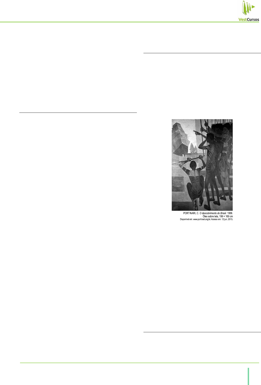 44 VestCursos – Especialista em Preparação para Vestibulares de Alta Concorrência Aula 5 - Quinhentismo dos modos de sentir e pensar das várias sociedades, mas também como equivalentes, por resultarem de impulsos humanos comuns. SCATAMACHIA, M. C. M. In: AGUILAR, N. (Org.). Mostra do redescobrimento: arqueologia. São Paulo: Fundação Bienal de São Paulo - Associação Brasil 500 anos artes visuais, 2000. De acordo com o texto, inexiste distinção entre as artes produzidas pelos colonizadores e pelos colonizados, pois ambas compartilham o(a) a) suporte artístico. b) nível tecnológico. c) base antropológica. d) concepção estética. e) referencial temático. Questão 04 (Upe 2014) “Ali ficamos um pedaço, bebendo e folgando, ao longo dela, entre esse arvoredo, que é tanto, tamanho, tão basto e de tantas prumagens, que homens as não podem contar. Há entre ele muitas palmas, de que colhemos muitos e bons palmitos.” “Parece-me gente de tal inocência que, se homem os entendesse e eles a nós, seriam logo cristãos, porque eles, segundo parece, não têm, nem entendem nenhuma crença. E, portanto, se os degredados, que aqui hão de ficar aprenderem bem a sua fala e os entenderem, não duvido que eles, segundo a santa intenção de Vossa Alteza, se hão de fazer cristãos e crer em nossa santa fé, à qual praza a Nosso Senhor que os traga, porque, certo, esta gente é boa e de boa simplicidade. E imprimir-se-á ligeiramente neles qualquer cunho, que lhes quiserem dar. E pois Nosso Senhor, que lhes deu bons corpos e bons rostos, como a bons homens, por aqui nos trouxe, creio que não foi sem causa.” “Eles não lavram, nem criam. Não há aqui boi, nem vaca, nem cabra, nem ovelha, nem galinha, nem qualquer outra alimária, que costumada seja ao viver dos homens. Nem comem senão desse inhame, que aqui há muito, e dessa semente e frutos, que a terra e as árvores de si lançam. E com isto andam tais e tão rijos e tão nédios, que o não somos nós tanto, com quanto trigo e legumes comemos.” Partindo da leitura das três citações da Carta de Pero Vaz de Caminha, analise os itens a seguir: I. Trata-se de um documento histórico que exalta a terra descoberta mediante o uso de expressões valorativas dos hábitos e costumes de seus habitantes, o que, de um lado, revela a surpresa dos portugueses recém-chegados, de outro, tem a intenção de instigar o rei a dar início à colonização. II. Ao afirmar que os habitantes da nova terra não têm nenhuma crença, Caminha faz uma avaliação que denota seu desconhecimento sobre a cultura daqueles que habitam a terra descoberta, pois todos os grupos sociais, primitivos ou não, têm suas crenças e mitos. III. Caminha usa a conversão dos gentios como argumento para atrair a atenção do Rei Dom Manuel sobre a terra descoberta, colocando, mais uma vez, a expansão da fé cristã como bandeira dos conquistadores portugueses. IV. Ao afirmar que os habitantes da terra descoberta não lavram nem criam, alimentam-se do que a natureza lhes oferece, Caminha tece uma crítica à inaptidão e inércia daqueles que vivem mal, utilizando, por desconhecimento, as riquezas naturais da região. V. As citações revelam que a Carta do Achamento do Brasil tem por objetivo descrever a nova terra de modo a atrair os que estão distantes pela riqueza e beleza de que é possuidora. Estão CORRETOS, apenas, a) I, II e IV. b) I, II, III e V. c) I, II e III. d) II e IV. e) I e II. Questão 05 (Enem 2013) TEXTO I Andaram na praia, quando saímos, oito ou dez deles; e daí a pouco começaram a vir mais. E parece-me que viriam, este dia, à praia, quatrocentos ou quatrocentos e cinquenta. Alguns deles traziam arcos e flechas, que todos trocaram por carapuças ou por qualquer coisa que lhes davam. […] Andavam todos tão bem- dispostos, tão bem feitos e galantes com suas tinturas que muito agradavam. CASTRO, S. “A carta de Pero Vaz de Caminha”. Porto Alegre: L&PM, 1996 (fragmento). Texto II Pertencentes ao patrimônio cultural brasileiro, a carta de Pero Vaz de Caminha e a obra de Portinari retratam a chegada dos portugueses ao Brasil. Da leitura dos textos, constata-se que a) a carta de Pero Vaz de Caminha representa uma das primeiras manifestações artísticas dos portugueses em terras brasileiras e preocupa-se apenas com a estética literária. b) a tela de Portinari retrata indígenas nus com corpos pintados, cuja grande significação é a afirmação da arte acadêmica brasileira e a contestação de uma linguagem moderna. c) a carta, como testemunho histórico-político, mostra o olhar do colonizador sobre a gente da terra, e a pintura destaca, em primeiro plano, a inquietação dos nativos. d) as duas produções, embora usem linguagens diferentes — verbal e não verbal —, cumprem a mesma função social e artística. e) a pintura e a carta de Caminha são manifestações de grupos étnicos diferentes, produzidas em um mesmo momentos históricos, retratando a colonização. Questão 06 (Enem 2013) De ponta a ponta, é tudo praia-palma, muito chã e muito formosa. Pelo sertão nos pareceu, vista do mar, muito grande, porque, a estender olhos, não podíamos ver senão terra com arvoredos, que nos parecia muito longa. Nela, até agora, não pudemos saber que haja ouro, nem prata, nem coisa alguma de metal ou ferro; nem lho CURSO ANUAL DE LITERATURA – (Prof. Steller de Paula) 45 VestCursos – Especialista em Preparação para Vestibulares de Alta Concorrência vimos. Porém a terra em si é de muito bons ares [...]. Porém o melhor fruto que dela se pode tirar me parece que será salvar esta gente. Carta de Pero Vaz de Caminha. In: MARQUES, A.; BERUTTI, F.; FARIA, R. História moderna através de textos. São Paulo: Contexto, 2001. A carta de Pero Vaz de Caminha permite entender o projeto colonizador para a nova terra. Nesse trecho, o relato enfatiza o seguinte objetivo: a) Valorizar a catequese a ser realizada sobre os povos 