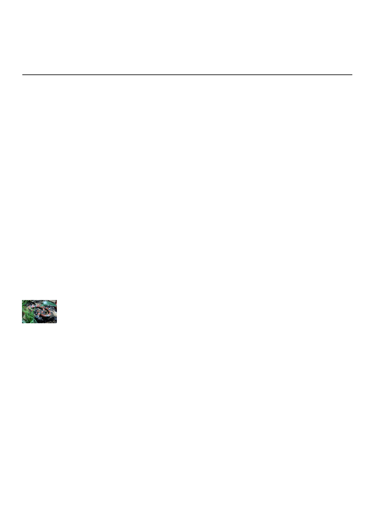 1/6 Cobra coral: habitat, alimentação e características Nesse artigo você vai aprender sobre a cobra coral, qual o seu habitat, seu tipo de alimentação e suas principais características. Veja também a diferença entre cobra coral verdadeira e a falsa. Veja a seguir! As cobras são animais vertebrados, répteis, carnívoros, que possuem escamas na pele e o corpo alongado. Muitas das vezes elas também são chamadas de serpentes. Esses animais podem possuir uma substância super perigosa, chamada de peçonha. A peçonha é um tipo de veneno que as cobras produzem para se defender de seus predadores e atacar suas presas. As cobras que possuem essas substâncias venenosas são chamadas de cobras peçonhentas. As cobras peçonhentas representam um grande risco para as pessoas, pois podem causar sérios acidentes através de sua picada e veneno. A pessoa picada por alguma cobra peçonhenta pode vir a morrer caso não receba o tratamento adequado. Nem todas as cobras são venenosas, porém, no nosso país, existem mais ou menos 60 espécies de cobras peçonhentas. As mais conhecidas são: jararaca, cascavel, jararacuçu, surucucu e cobra coral. Características da cobra coral A cobra coral pertence a mesma família da naja. Possui belas cores e seu corpo é formado por vários anéis. Possui a cabeça achatada em forma de triângulo, olhos pequenos, cauda curta e fina e o corpo coberto por escamas. A cobra coral é venenosa e tem hábitos noturnos (Foto: depositphotos) É uma das cobras mais venenosas que existem no Brasil, muito comum no Amazonas e na região sudeste. Também é encontrada no sul da África, sul da Ásia, Austrália, América Central, América do sul e nos Estados Unidos. Possui hábito de vida noturno e fica enrolada em torno do próprio corpo. Seu veneno quando atinge o sistema nervoso da vítima é muito tóxico e potente. Não são cobras agressivas, ou seja, não dão o bote, mas podem atacar quando se sentirem ameaçadas. Habitat e alimentação 2/6 A coral normalmente fica escondida em moradas subterrâneas (tocas) durante o dia e saem para caçar a noite. Se alimentam de outras cobras, alguns peixes, répteis, lagartos e pequenos anfíbios. Muitas cobras inofensivas têm anéis como os da cobra coral e isso induz os outros animais a acharem que elas são perigosas. A coloração dessas cobras recebe o nome de aposemática, ou seja, é uma cor de alerta, indica perigo, atenção. O padrão de cores é copiado pela falsa coral, porém, existem algumas pequenas diferenças. Veja também: Cobras e serpentes Diferença entre a coral verdadeira e a falsa A cobra coral verdadeira é uma serpente peçonhenta normalmente pequena e de cor bem chamativa. Seu corpo possui anéis vermelhos, pretos e brancos ou amarelos. Elas vivem embaixo da terra e são ovíparas, colocando em torno de 16 a 20 ovos. Seus filhotes já nascem venenosos. https://www.estudokids.com.br/cobras-e-serpentes-caracteristicas-veneno-e-como-tratar-a-picada/ 3/6 Existe basicamente três coisas que pode diferenciar a coral verdadeira da coral falsa: 1- A coral falsa não é venenosa, mas coral verdadeira é; 2- Na coral verdadeira, a cor vermelha dos anéis do seu corpo não se encontra com a cor preta, tendo sempre um anel branco ou amarelo (dependendo da espécie) entre as duas cores. Mas isso não pode ser a única comparação para diferenciá-las, pois não podemos arriscar; 3- A posição dos dentes da coral verdadeira é diferente da coral falsa. As verdadeiras possuem duas presas frontais, usadas para injetar veneno nas vítimas, sendo esta a maneira mais segura de diferenciar uma da outra. Pode ser difícil diferenciar de cara uma cobra coral verdadeira ou uma cobra coral falsa. Na dúvida é sempre melhor manter distância delas e evitar qualquer tipo de aproximação. Sintomas da picada dessa cobra A cobra coral tem um veneno muito perigoso e ele é considerado neurotóxico, pois atinge diretamente o sistema nervoso da vítima. Caso você se encontre frente a frente com uma cobra coral, é recomendável manter a calma e evitar se movimentar. Caso ela não se sinta ameaçada, certamente a coral irá embora. Jamais tente pegar uma cobra coral, pois seu veneno é fatal! O veneno da cobra coral verdadeira é neurotóxico, pois atinge o sistema 4/6 nervoso da vítima (Foto: depositphotos) Normalmente as vítimas da cobra coral são as crianças que andam descalças. Caso você seja picado por essa cobra, os principais sintomas são: muita dor no local da picada, visão embaçada, dificuldade em abrir os olhos, sensação de sufocamento e falta de ar. A morte causada pelo veneno pode ser provocada por uma parada cardíaca ou respiratória. O veneno das corais normalmente age de forma relativamente lenta e o único tratamento que existe para a picada desta cobra é o soro antielapídico. Lembre-se: nunca se deve mexer em folhas, troncos caídos no chão ou entulhos usando as mãos, principalmente se estiver em uma área de risco. A picada da cobra coral no adulto ou na criança pode ser fatal. Seu veneno é tão perigoso que pode matar um boi de 500 quilos. Curiosidade: cobra coral azul A cobra coral azul existe, mas não no Brasil, pois a temperatura do nosso país não é favorável para sua sobrevivência. Ela é encontrada na Indonésia, Camboja, Malásia, Singapura e Tailândia. É um tipo muito raro. Sua cabeça e cauda podem ser de cor laranja, vermelha, amarela ou branca e seu corpo é de um azul brilhante sem igual. Ela é pequena, alcançando em torno de um metro e meio a dois metros de comprimento, mas seu veneno é extremamente fatal. Veja também: Cobra-cega A toxina dessa cobra é conhecida como “100 passos”, pois essa é a quantidade de passos que uma pessoa consegue dar após a picada, vindo a morrer rapidamente. https://www.estudokids.com.br/cobra-cega/ 5/6 Ainda não existe soro específico para a picada desta cobra (Foto: Reprodução | Pinterest) A cobra coral azul é rara po