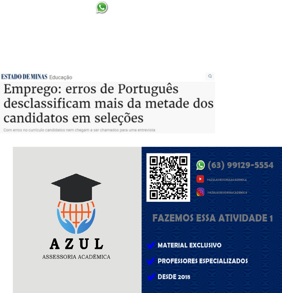 ATIVIDADE 1 – SECR - COMUNICAÇÃO E EXPRESSÃO - 51/2024 ATIVIDADE 1 – SECR - COMUNICAÇÃO E EXPRESSÃO - 51/2024 Olá, aluno(a)! Está com dificuldade ou sem tempo para elaborar essa atividade? Iremos te ajudar! (63) 99129-5554 Leia os textos a seguir: Texto I Disponível em: https://www.em.com.br/app/noticia/educacao/2022/06/22/internas_educacao,1375150/emprego-erros-de-portugues-desclassificam-mais-da-metade-dos-candidatos-em.shtml. Acesso em: 14 set 2024 Texto II Gramática é o conjunto de regras que indicam o uso mais correto de uma língua. No início, a gramática tinha como função apenas estabelecer regras quanto à escrita e à leitura. É por isso que a palavra gramática, de origem grega (grámma), significa “letra”. Disponível em: https://www.todamateria.com.br/gramatica/. Acesso em: 14 set 2024 Os textos abordam a língua na perspectiva estrutural. Pensando no exercício da sua futura profissão, em que haverá o contato constante com os mais diversos textos, qual a importância de se conhecer e de se ter um bom domínio das regras da gramática normativa? Justifique sua resposta.