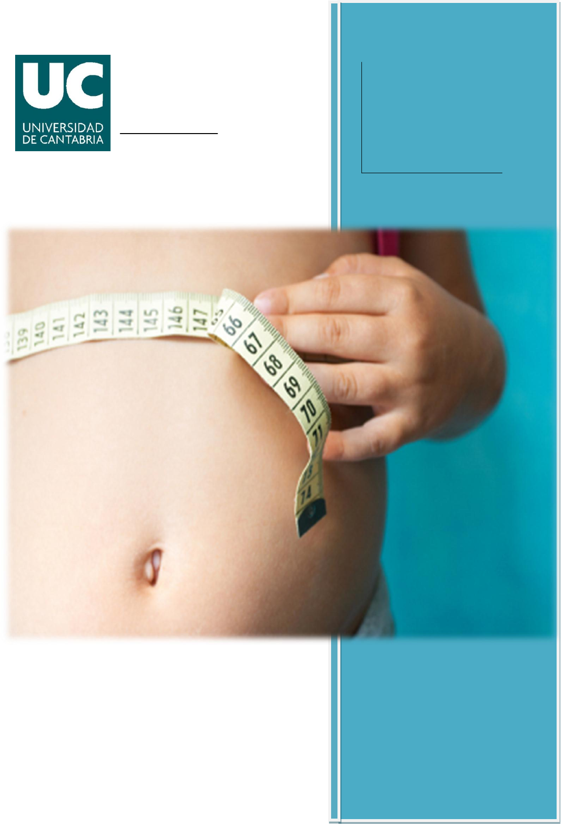 Escuela universitaria de Enfermería “Casa de salud Valdecilla”. Trabajo Fin de Grado Departamento de Enfermería Universidad de Cantabria. Octubre 2014 Directora María Paz Zulueta Autora Elisa Ballesteros Acebo Obesidad infantil: definición, epidemiología y factores de riesgo asociados. Childhood obesity: definition, epidemiology and risk factors associated. 2 ÍNDICE 1. Resumen.................................................................................................................. Pág.4 2. Introducción ............................................................................................................ Pág.5 2.1 Estado actual del tema ..................................................................................... Pág. 5 2.2 Justificación ...................................................................................................... Pág. 5 2.3 Objetivos .......................................................................................................... Pág. 6 2.4 Metodología ..................................................................................................... Pág. 6 2.5 Breve descripción de los capítulos ................................................................... Pág. 8 3. Capítulo 1 3.1 Definición de sobrepeso y obesidad infantil……………………………………………… ... Pág.9 3.2 Técnicas de medición y criterios diagnósticos ............................................... Pág. 10 4. Capítulo 2 4.1 Prevalencia de la obesidad infantil en Estados Unidos……….. ....................... Pág. 14 4.2 Prevalencia de la obesidad infantil en Europa……….. ..................................... Pág. 14 4.3 Prevalencia de la obesidad infantil en España……….. ..................................... Pág. 15 5. Capítulo 3 5.1 Comorbilidad asociada a la obesidad infantil.…………………………………………… Pág. 16 6. Capítulo 4 6.1 Factores genéticos, el 5% de los casos ........................................................... Pág. 19 6.2 Otros factores responsables, el 95% de los casos .......................................... Pág. 21 6.2.1. Inactividad física .................................................................................... Pág. 21 6.2.2. Factores de riesgo relacionados ........................................................... Pág. 22 6.3 Papel preventivo de la enfermera pediátrica ................................................ Pág. 24 3 7. Conclusiones ........................................................................................................ Pág. 27 8. Referencias bibliográficas .................................................................................. Pág. 28 4 RESUMEN La obesidad pediátrica es uno de los problemas de salud pública más graves del siglo XXI y que más gasto en materia de sanidad supone. Existen numerosos criterios y gráficas para la definición de sobrepeso y obesidad, sin embargo, no consta un método unificado y validado por todos los organismos, y en función del país, las gráficas utilizadas son distintas, provocando una gran variabilidad en los resultados en función del sistema empleado. Este documento pretende identificar los diferentes puntos de corte existentes, las limitaciones que suponen esta gran variabilidad de métodos y los distintos criterios diagnósticos empleados. Además, analizaremos su epidemiología a través de diversos estudios, la creciente prevalencia de la enfermedad en distintos países, su comorbilidad asociada y sus principales factores de riesgo. La enfermería pediátrica tiene una enorme responsabilidad, ya que su principal misión es la de prevenir la progresión esta epidemia, a través de intervenciones basadas en la educación en hábitos de vida saludables y en la modificación de conducta y comportamiento. El abordaje del problema no debe de estar dirigido exclusivamente a los niños, sino también a sus familias y las instituciones que les rodean. Palabras clave: Obesidad pediátrica, epidemiología, enfermería pediátrica. ABSTRACT Pediatric obesity is one of the most serious problems of public health in the twenty first century and the one that more spending on health represents. There are numerous criteria and charts to define overweight and obesity, however, it is not stated that there is a unified and validated method for all organisms, and depending on the country, the graphics used are different, causing a large variability in the results depending on the system used. This document aims to identify the different existing cut points, the limitations which imply this great variability of different methods and the diagnostic criteria used. We will also discuss its epidemiology through various studies, the increasing prevalence of the disease in different countries, its co morbidity and its major risk factors. Pediatric nursing is a huge responsibility, as its main mission is to prevent the progression of this epidemic through education based on healthy lifestyles and behavior modification and behavior interventions. The approach to the problem should not be aimed exclusively at children but also their families and the institutions around them. Keywords: pediatric obesity, epidemiology, pediatric nursing 5 2. INTRODUCCIÓN 2.1. Estado actual del tema La obesidad es considerada una enfermedad crónica, compleja y multifactorial, que se produce como consecuencia de un exceso en la acumulación de tejido adiposo causado por un desequilibrio existente entre la ingesta y el gasto energético total (1). Un estudio publicado en el año 2009 estima que a nivel mundial cerca del 10% del total de niños en edad escolar padecen un exceso de grasa corporal lo que conlleva a un aumento del riesgo en el desarrollo de enfermedades crónicas en un futuro próximo. De este 10% de niños con sobrepeso, una cuarta parte padecen obesidad, y otro gran porcentaj