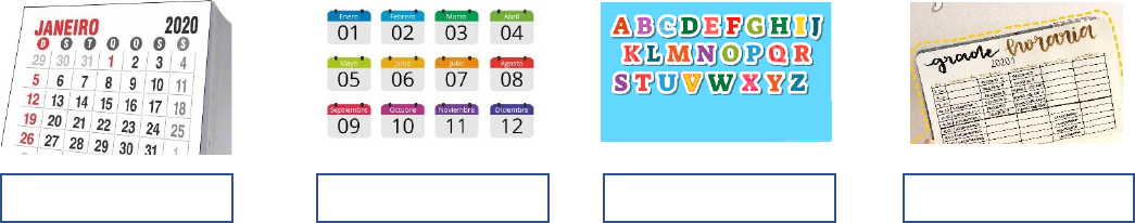 Dias da semana Meses do ano Letras do alfabeto Matérias escolares