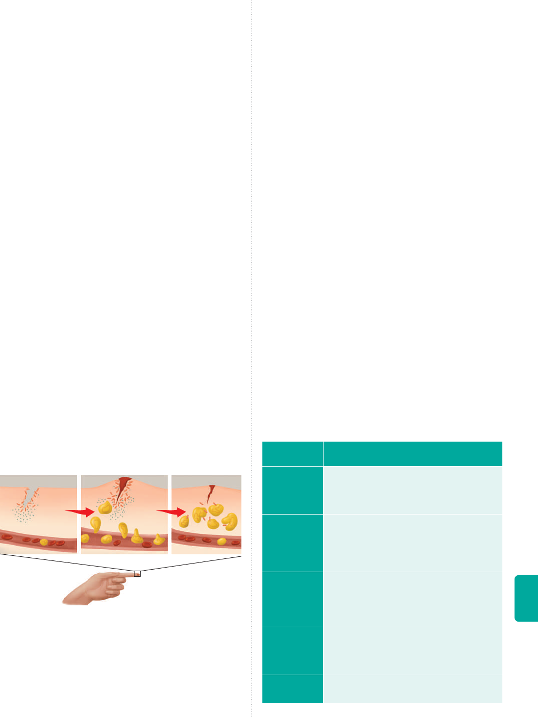 F R E N T E 3 169 Os vasos linfáticos são responsáveis pelo transporte da linfa, um líquido esbranquiçado/amarelado que possui água, proteínas e glóbulos brancos Os vasos são dispostos parale- lamente ao sistema circulatório e têm como função principal drenar o líquido (proveniente do sangue) que se acumula no espaço intersticial Através da rede de vasos, esse líquido é devolvido ao sangue. O baço é um órgão essencial no sistema imune, pois participa do processo de produção de anticorpos Já as tonsilas são aglomerados de tecido linfoide, mas que não entram em contato direto com os vasos linfáticos Resposta inflamatória Uma lesão na pele causada por um espinho, por exemplo, pode introduzir algumas bactérias capazes de proliferar no organismo e causar danos maiores. O organismo desenvolve, em situações como essa, uma resposta de defesa conhecida como reação inflamatória. O tecido atingido apresenta quatro sinais: calor, rubor (vermelhidão), tumor (aumento de volume) e dor. A área afetada passa a receber maior fluxo sanguíneo, tornando a região mais avermelhada e com temperatura mais alta que o normal. A permeabilidade dos capilares aumenta e isso propicia liberação de líquido para o fluido intersticial, au- mentando o volume do tecido (tumor) e causando o inchaço característico. Há também a liberação de substâncias (como as bradicininas) que provocam dor. O local é envolvido por uma rede de fibrina, coibindo e dificultando a dispersão das bactérias infectantes para ou- tras partes do organismo. Leucócitos dos tipos neutrófilos e monócitos atravessam a parede dos capilares (processo chamado diapedese) e fagocitam bactérias (Fig. 3). Trava-se uma verdadeira batalha contra os invasores, na qual ocorre a morte de vários tipos de células: bactérias, leucócitos e célu- las do tecido atingido; esse conjunto constitui o pus. A bolsa formada pelo acúmulo de pus constitui um abscesso e, com o tempo, o conteúdo é eliminado para a superfície da pele por meio de uma abertura. Apesar do desconforto, a reação inflamatória, dentro de certos limites, é benéfica ao organismo, pois corresponde ao combate aos agentes invasores. (toxinas). Os anticorpos são proteínas de defesa capazes de se ligar a antígenos específicos, evitando ou minimizando os potenciais danos que eles possam causar; os anticorpos são específicos para os antígenos aos quais se ligam. Antígenos introduzidos no organismo nem sempre são potencialmente perigosos, como ocorre no caso de transplantes e de transfusões sanguíneas. O sistema imu- nitário, contudo, não tem esse “discernimento” sobre as “intenções” do antígeno, pois a seleção natural, ao longo de milhões de anos, reconheceu os elementos não per- tencentes ao organismo como fonte de perigo potencial A resposta imune, propriamente dita, é o processo de combate aos antígenos invasores, promovendo a defesa do organismo, ou seja, sua imunização; apresenta duas modalidades: imunização humoral e imunização celular. Quando tratamos de resposta imune, é importante salientar os tipos de células de defesa presentes no organismo. Os leucócitos (ou glóbulos brancos do sangue) são as célu- las responsáveis pelo combate a antígenos e dividem-se em diversos grupos celulares: linfócitos e os macrófagos. Os linfócitos podem apresentar se como linfócitos T ou B, sendo ambos de vários tipos (Tab. 1). A imunização humoral envolve a produção de anticorpos e a imunização celular envolve a atuação das células de defesa. O processo de resposta imune é iniciado a partir do momento em que os antígenos invadem pela primeira vez o organismo; assim, o sistema imunitário é acionado. Os linfóci- tos B são responsáveis pelo reconhecimento dos invasores e, quando entram em contato com o antígeno, são estimu- lados a se dividirem e a se diferenciarem em plasmócitos. Os plasmócitos realizam a síntese de anticorpos e os linfócitos T4 (ou CD4) conhecidos como linfócitos auxi- liadores –, linfócitos T8 e linfócitos B podem se converter em linfócitos de memória (Tab. 1). O ataque aos antígenos é feito então pelos anticorpos. Fig. 3 Alguns aspectos da reação inflamatória, incluindo a diapedese de leucócitos e a fagocitose de microrganismos. Células envolvidas Atuação Macrófagos � Fagocitam microrganismos e expõem alguns de seus antígenos na superfície de sua própria membrana � Apresentam esses antígenos a linfócitos T4 Linfócitos T4 (auxiliadores) � Estimulados por interleucinas, multiplicam-se e diferenciam-se em células de memória imunitária. � Estimulam, também por meio de interleucinas, os linfócitos T8 e os linfócitos B. Linfócitos T8 (citotóxicos) � Destroem determinadas células (como as provenientes de transplantes, as cancerosas e as que possuem vírus) por meio de perforinas (substâncias que lesam a membrana plasmática das células) Linfócitos B � Estimulados por interleucinas, multiplicam-se e completam o reconhecimento do antígeno. � Alguns se convertem em células de memória imunitária e outros em plasmócitos. Plasmócitos � Resultam da diferenciação de linfócitos B � São responsáveis pela síntese de anticorpos Tab. 1 Principais células que atuam na resposta imune. Resposta imune O organismo pode reconhecer estruturas que não são próprias do corpo, mas provenientes do ambiente. Antígeno é o nome dado às estruturas que podem ser reconhecidas como corpos estranhos ao organismo, como os vírus, as bactérias, os protozoários e diversos tipos de substâncias BIOLOGIA Capítulo 13 Sistema imunitário170 A primeira exposição ao antígeno desencadeia a res- posta imunitária primária que demora alguns dias para iniciar a síntese de anticorpos, atingindo, no final do pro- cesso, concentração plasmática reduzida dessas proteínas A produção de anticorpos é estimulada pela presença do antígeno no or