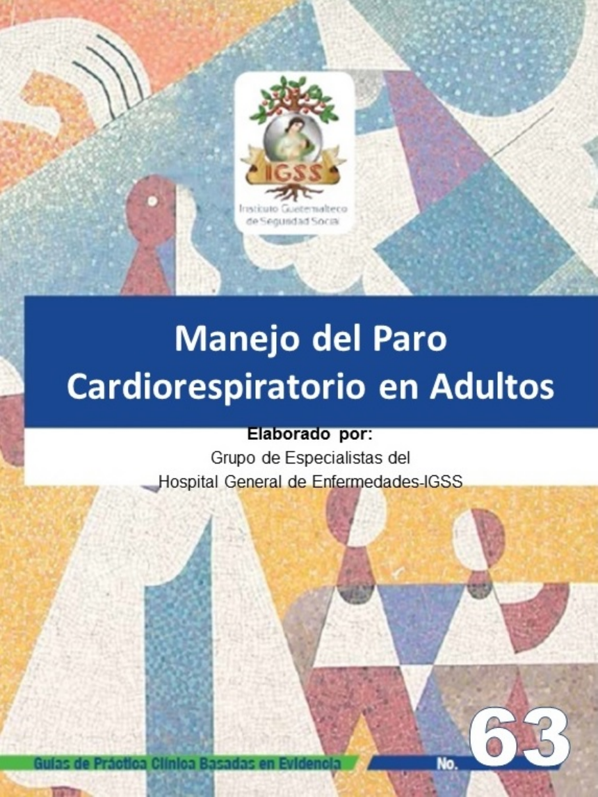 Lic. Oscar Armando García Muñoz Gerente Dr. Byron Humberto Arana González Subgerente de Prestaciones en Salud Este documento debe citarse como: Instituto Guatemalteco de Seguridad Social (IGSS) Subgerencia de Prestaciones en Salud Comisión de Elaboración de Guías de Práctica Clínica Basadas en Evidencia (GPC-BE) GPC-BE 63 “Manejo del Paro Cardiorrespiratorio en el Adulto” Edición 2014; págs. 56 IGSS, Guatemala. Elaboración revisada por: Subgerencia de Prestaciones en Salud-IGSS Oficio No. 12430 del 07 de noviembre de 2014 Revisión, diseño y diagramación: Comisión Central de Elaboración de Guías de Práctica Clínica Basadas en Evidencia; Subgerencia de Prestaciones en Salud. IGSS-Guatemala 2014 Derechos reservados-IGSS-2014 Se autoriza la reproducción parcial o total de este documento por cualquier medio, siempre que su propósito sea para fines docentes y sin finalidad de lucro, a todas las instituciones del sector salud, públicas o privadas. AGRADECIMIENTOS: Grupo de Desarrollo 2014: Dr. Leiser Mazariegos Especialista en Medicina Interna, Subgerencia de Prestaciones en Salud. Dr. Edgar Campos Especialista en Cirugía General, Medico Supervisor, Subgerencia de Prestaciones en Salud. Dr. Jorge Alvarado Especialista en Gineco Obstetricia, HGO, Subgerencia de Prestaciones en Salud. Dr. Oscar Walter Dónis Osorio Médico y Cirujano, Epidemiólogo Subgerencia de Prestaciones en Salud Revisores: Msc. Dr. Jorge Luis Ranero Meneses Médico Internista, Intensivista Hospital General de Enfermedades Dr. Luis Fernando Talé Rosales Médico Cirujano Jefe de Departamento de Cirugía Hospital Dr. Juan José Arévalo Bermejo Dra. Lilian Andrea Mazariegos López Médica Anestesióloga Hospital General de Enfermedades Dr. Gustavo Adolfo Oliva Vega Médico Internista Hospital General de Enfermedades COMISIÓN ELABORADORA DE GUÍAS DE PRÁCTICA CLÍNICA FUNDAMENTADAS EN MEDICINA BASADA EN LA EVIDENCIA: Msc. Dr. Edwin Leslie Cambranes Morales Jefe del Departamento de Medicina Preventiva Subgerencia de Medicina Preventiva Msc. Dr. Jorge David Alvarado Andrade Coordinador Comisión Central de Desarrollo de GPC-BE Subgerencia de Prestaciones en Salud Dr. Edgar Campos Reyes Médico Supervisor Comisión Central de Desarrollo de GPC-BE Subgerencia de Prestaciones en Salud Msc. Leiser Marco Tulio Mazariegos Contreras Comisión Central de Desarrollo de GPC-BE Subgerencia de Prestaciones en Salud DECLARACIÓN DE CONFLICTO DE INTERESES: Se declara que ninguno de los participantes en el desarrollo de esta Guía, tiene intereses particulares, es decir: económicos, políticos, filosóficos o religiosos que influyan en los conceptos vertidos en la misma. PRÓLOGO GUIAS DE PRACTICA CLINICA DEL IGSS ¿En qué consiste la Medicina Basada en Evidencia? Podría resumirse, como la integración de la experiencia clínica individual de los profesionales de la salud con la mejor evidencia proveniente de la investigación científica, una vez asegurada la revisión crítica y exhaustiva de esta. Sin la experiencia clínica individual, la práctica clínica rápidamente se convertiría en una tiranía, pero sin la investigación científica quedaría inmediatamente caduca. En esencia, pretende aportar más ciencia al arte de la medicina, y su objetivo consiste en contar con la mejor información científica disponible -la evidencia-, para aplicarla a la práctica clínica. El nivel de Evidencia clínica es un sistema jerarquizado que valora la fortaleza o solidez de la evidencia asociada con resultados obtenidos de una intervención en salud y se aplica a las pruebas o estudios de investigación. (Tabla No. 1) Tabla No. 1* Niveles de evidencia: * Centro de Medicina Basada en la Evidencia de Oxford. **All or none (Todos o ninguno): Se cumple cuando todos los pacientes mueren antes de que el medicamento esté disponible, pero algunos ahora sobreviven; o cuando algunos pacientes mueren antes de que el medicamento esté disponible, pero ahora ninguno muere con el medicamento. Los grados de recomendación son criterios que surgen de la experiencia de expertos en conjunto con el nivel de evidencia; y determinan la calidad de una intervención y el beneficio neto en las condiciones locales. (Tabla No. 2) Grado de Recomendación Nivel de Evidencia Fuente A 1a Revisión sistemática de ensayos clínicos aleatorios. 1b Ensayo clínico aleatorio individual. 1c Eficacia demostrada por los estudios de práctica clínica y no por la experimentación. (All or none**) B 2a Revisión sistemática de estudios de cohortes. 2b Estudio de cohorte individual y ensayos clínicos aleatorios de baja calidad. 2c Investigación de resultados en salud, estudios ecológicos. 3a Revisión sistémica de estudios caso-control, con homogeneidad. 3b Estudios de caso control individuales. C 4 Series de casos, estudios de cohortes y caso- control de baja Calidad. D 5 Opinión de expertos sin valoración crítica explícita. Tabla No.2 Significado de los grados de recomendación Grado de Recomendación Significado A Extremadamente recomendable. B Recomendable favorable. C Recomendación favorable, pero no concluyente. D Corresponde a consenso de expertos, sin evidencia adecuada de investigación. √ Indica un consejo de Buena Práctica clínica sobre el cual el Grupo de Desarrollo acuerda. Las GUÍAS DE PRÁCTICA CLÍNICA BASADAS EN LA EVIDENCIA, son los documentos en los cuales se plasman las evidencias para ponerlas al alcance de todos los usuarios (médicos, paramédicos, pacientes, etc.). En ellas, el lector encontrará al margen izquierdo de los contenidos, el Nivel de Evidencia1a (en números y letras minúsculas, sobre la base de la tabla del Centro de Medicina Basada en la Evidencia de Oxford) de los resultados de los estudios los cuales sustentan el grado de recomendación de buena práctica clínica, que se anota en el lado derecho del texto A (siempre en letras mayúsculas sobre la base de la misma tabla del Centro de Medicina Basad