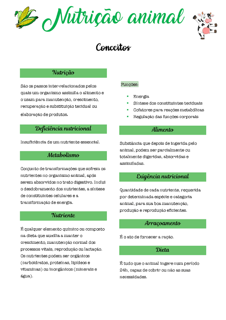 Resumo sobre o livro de Nutrição Animal (Lúcio F. A)- Capítulos 1,2 e 3