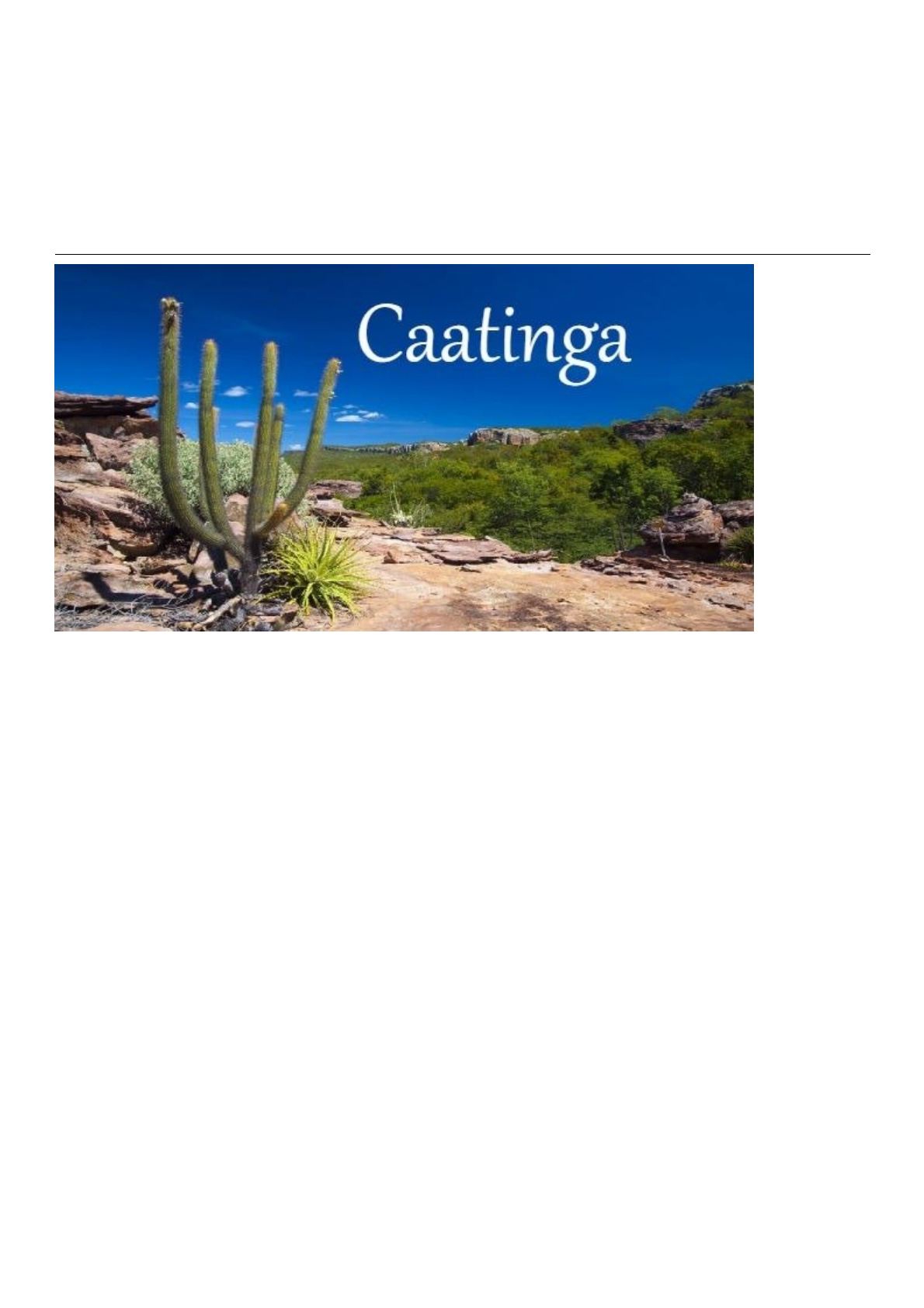 1/4 Caatinga ⋮ Caatinga é um bioma brasileiro que apresenta clima semiárido, vegetação com pouca folhas e adaptadas para os períodos de secas, além de grande biodiversidade. Esse bioma é encontrado em áreas do Nordeste do Brasil, nos estados do Maranhão, Piauí, Ceará, Rio Grande do Norte, Paraíba, Pernambuco, Alagoas, Sergipe, Bahia e parte de Minas Gerais. Toda essa área abrange cerca de 844 mil km2, ou seja, 11% do território brasileiro. O nome Caatinga significa, em tupi-guarani, "mata branca". Esse nome faz referência a cor predominante da vegetação durante a estação de seca, onde quase todas as plantas perdem as folhas para diminuir a transpiração e evitar a perda de água armazenada. No inverno, devido a ocorrência de chuva, as folhas verdes e as flores voltam a brotar. Apesar de sua importância ecológica, calcula-se que 40 mil km2 da Caatinga já foram transformados em quase deserto, o que é explicado pelo corte da vegetação para servir como lenha e pelo manejo inadequado do solo. Vegetação https://www.todamateria.com.br/caatinga/ 2/4 Vegetação típica da Caatinga A vegetação da caatinga constitui um tipo de vegetação adaptada à aridez do solo e a escassez de água da região. Dependendo das condições naturais das áreas em que se encontram, apresentam diferentes características. Quando as condições de umidade do solo são mais favoráveis, a caatinga se assemelha à mata, onde são encontradas árvores como o juazeiro, também conhecido por joá, ou laranjeira do vaqueiro, a aroeira e a baraúna. Nas áreas mais secas, de solo raso e pedregoso, a caatinga se reduz a arbustos e plantas tortuosas, mais baixas, deixando o solo parcialmente descoberto. Nas regiões mais secas aparecem também plantas cactáceas, como o facheiro, o mandacaru, o xique- xique, que servem de alimento para os animais, na época de seca, e as bromeliáceas (macambira). Algumas palmeiras e o juazeiro, que possuem raízes bem profundas para absorver água do solo, não perdem as folhas. Outras plantas possuem um mecanismo fisiológico, o xeromorfismo, produção de uma cera que reveste suas folhas que faz que percam menos água na transpiração, um exemplo é a carnaubeira denominada "árvore da vida" ou árvore da providência, pois tudo dela se aproveita. A maioria das espécies tem espinhos, o que leva o vaqueiro da região usar roupa de couro, para sua proteção. Leia também sobre Flora da Caatinga. Fauna https://undefined/flora-da-caatinga/ 3/4 A ararinha-azul é uma ave símbolo da Caatinga A Caatinga abriga um grande número de espécies da fauna brasileira, como, mamíferos, répteis, aves, anfíbios, entre eles, a cutia, o gambá, o preá, o veado-catingueiro, o tatu-peba, gatos selvagens, a asa branca, e uma variedade de insetos, que exercem grande importância para o bioma. Entre as espécies que habitam a caatinga e estão ameaçadas de extinção podem ser citadas a ararinha azul, o tamanduá-bandeira, o tatu-canastra, o cachorro do mato, a águia-cinzenta, o lobo-guará, entre outras. Saiba mais, leia também: Características da Caatinga Animais da Caatinga Clima da Caatinga Ameaças Como acontece em muitos outros biomas, a Caatinga também sofre com uma série de ameaças que comprometem a conservação da sua biodiversidade, sendo que um desses riscos acontece por causa do tráfico de animais. Dentre as principais ações responsáveis pela destruição da Caatinga estão: desmatamento, queimadas, exploração dos recursos naturais e mudanças no uso do solo. Os órgãos ambientais do setor federal estimam que mais de 46% da área da Caatinga já foi desmatada. Vale ressaltar que muitas espécies são endêmicas desse bioma, ou seja, ocorrem apenas lá. Por isso, https://undefined/ararinha-azul/ https://undefined/tamandua-bandeira/ https://undefined/lobo-guara/ https://undefined/caracteristicas-da-caatinga/ https://undefined/animais-da-caatinga/ https://undefined/clima-da-caatinga/ https://undefined/trafico-de-animais/ 4/4 uma das formas de evitar o desaparecimento das espécies é criar novas unidades de conservação na área.