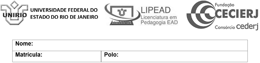 AD1 – 2024.1 DISCIPLINA: ARTES VISUAIS E EDUCAÇÃO (EAD08124) Coordenação: Prof. Renato Rodrigues da Silva Tutoras: Profas. Maritza Jurberg e Sandra Rocha Prezados alunos, O primeiro trabalho requer a leitura do material postado no website do curso. Primeiramente, leia os textos designados, procurando, depois, conectar o aprendizado com as obras de Giotto di Bondone e Tarsila do Amaral (temas 1 e 2, respectivamente). Um bom trabalho necessariamente empregará os conceitos principais dos textos na análise das obras. Portanto, o primeiro passo é a leitura atenta do material do curso. Note que as imagens podem ser facilmente encontradas na internet. Na redação dos seu trabalho, por favor evite copiar os textos da internet, ou outro material qualquer, escrevendo uma prova que seja de sua autoria – evite “plagiar” outros autores! BOA SORTE! Questões: 1- Baseado na leitura das aulas 21 a 24 (inclusive), faça a análise da obra A Natividade, o Nascimento de Jesus (C. 1306), que Giotto di Bondone pintou na Capela Scrovegni, Pádua, Itália. Na sua análise, utilize elementos dos textos lidos. (2 páginas, valor 5 pontos). 2- Baseado na leitura dos artigos "Criatividade" e "Funções da Arte", faça a análise da obra Morro da Favela (1924) da pintora Tarsila do Amaral. Utilize elementos dos textos lidos, analisando a criatividade da artista e classificando a função primordial da obra. (2 páginas, valor 5 pontos).