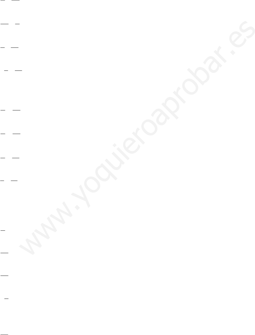 Fracciones equivalentes. Fracción irreducible. Comparación de fracciones 1. Comprobar num éricamente si son equivalentes las siguientes fracciones: a) 45 30 y 3 2 (Sol: SÍ) b) 4 5 y 16 25 (Sol: NO) c) 60 84 y 5 7 (Sol: SÍ) d) 2 26y 5 65 − (Sol: NO) 2. Comprobar gráficamente si son equivalentes las siguientes fracciones: a) 3 7y 5 10 (Sol: NO) b) 1 7y 2 14 (Sol: SÍ) c) 3 9y 4 12 (Sol: SÍ) d) 2 7y 3 12 (Sol: NO) 3. Hallar, por amplificación y simplificación –cuando se pueda–, sendas fracciones equivalentes a cada una de las siguientes: a) 2 3 b) 16 25 c) 36 24 d) 8 5− 4. Hallar las fracciones de denominador 100 que sean equivalentes a las fracciones siguientes: a) 13 25 ww w. yo qu ier oa pro ba r.e s b) 39 50 c) 11 20 5. Completar, razonadamente, los términos que faltan: 5 15 7 84 = = 6. Calcular la fracción irreducible de cada una de estas fracciones: a) 90 18 (Sol: 1/5) b) 108 252− (Sol: -7/3) c) 16 25 (Sol: Irreducible) d) 17 51 (Sol: 3) e) 240 810 − (Sol: - 8/27) f) 999 37 (Sol: 1/27) g) 1404 900 (Sol: 39/25) h) 969 361 (Sol: 51/19) i) 252 420 (Sol: 3/5) j) 28 45 − (Sol: irreducible) k) 220 693 (Sol: 20/63) 7. Estudiar si las siguientes fracciones son equivalentes (no vale pasar a decimal): 3 12 6 2, , y 15 60 20 10 ww w. yo qu ier oa pro ba r.e s 8. Simplificar las siguientes fracciones y expresar si son o no equivalentes: 14 30 12, y 21 45 8 (Sol: equivalentes) 9. ¿Qué fracción es menor, 3/4 o 4/5? Razonar la respuesta. No vale pasar a decimal. 10. Ordenar de menor a mayor los siguientes números, pasándolos previamente a común denominador: a) 6 5 4 3 2 1 b) 15 7 5 3 2 1 (Sol: 7/15<1/2<3/5) c) 1 3 2 9 6 5 5 4 7 8 5 6 − (Sol: -2/7<1/5<3/4<5/6<9/8<6/5) d) 2 5 y 3 4 , 5 3 (Sol: 3/5<4/3<5/2) ww w. yo qu ier oa pro ba r.e s e) 5 15 12 2 , , y 3 4 5 5 − (Sol: -2/5<5/3<12/5<15/4) f) 2 7 16 5 5 3 3 6 3 7 4 − (Sol: -5/7<2/3<7/6<5/4<3<16/3) g) 5 6 y 1 2 (Sol: 1/2<5/6) 11. a) Sin necesidad de operar, ordenar razonadamente de menor a mayor: 2 3 7, y 3 4 5 − b) Sin hacer ningún cálculo, razonar que las fracciones 18 30y 12 45 no pueden ser equivalentes. 12. Estudiar si 2 4y 45 75 son equivalentes. En caso contrario, ordenarlas de menor a mayor, y comprobar. 13. Juan ha bebido 2/3 de litro de agua y María 3/7. ¿Quién ha bebido más? ww w. yo qu ier oa pro ba r.e s Sumas y restas de fracciones 1. Calcular las siguientes sumas y restas sencillas, sim plificando en todo momento (Fíjate en los ejemplos): a) 3 1 4 5 5 5 + = b) 5 2 3 3 + = c) 5 1 6 6 − = d) 7 2 5 5 − = e) 2 3 4 9 13 3 2 6 6 ++ = = f) 2 3 5 2 + = (Sol: 19/10) g) 3 1 4 2 + = (Sol: 5/4) h) 7 2 35 6 29 3 5 15 15 −− = = i) 4 1 3 2 − = (Sol: 5/6) j) 4 1 3 2 + = (Sol: 11/6) k) 3 2 2 3 − = (Sol: 5/6) l) 2 3 3 2 − = (Sol: -5/6) m) 1 5 5 2 + = (Sol: 27/10) n) 1 2 4 7 − = (Sol: -1/28) o) 7 3 3 2 − = (Sol: 5/6) p) 2 1 5 2 + = (Sol: 9/10) q) 8 7 5 2 − = (Sol: -19/10) r) 4 1 3 8 + = (Sol: 35/24) s) 1 6 1 72 3 3 3 ++ = = t) 71 5 + = (Sol: 12/5) u) 23 3 − = (Sol: 7/3) v) 5 2 3 + = (Sol: 11/3) w) 1 3 3 − = (Sol: -8/3) x) 2 4 3 5 − − = (Sol: -22/15) y) 6 3 3 2 + = (Sol: 7/2) z) 9 1 4 2 − − = (Sol: -11/4) αααα) 3 1 5 3 − − = (Sol: -14/15) ββββ) 23 5 − = (Sol: 13/5) γγγγ) 10 49 9 45 + = (Sol: 11/5) ww w. yo qu ier oa pro ba r.e s δδδδ) 1 1 3 15 + = (Sol: 2/5) εεεε) 3 31 8 63 − = (Sol: -59/50 2. Calcular las siguientes sumas y restas encadenadas, simplificando en todo momento (Fíjate en el ejemplo): a) 3 2 1 18 20 15 53 5 3 2 30 30 + ++ + = = b) 3 1 2 2 4 3 + + = (Sol: 29/12) c) 3 1 3 5 3 2 − + = (Sol: 53/30) d) 1 2 5 6 3 2 + − = (Sol: -5/3) e) 1 51 3 2 + + = (Sol: 23/6) f) 7 1 2 3 3 5 + + = (Sol: 46/15) g) 8 2 2 5 3 + + = (Sol: 64/15) h) 7 11 2 3 + + = (Sol: 29/6) i) 5 3 1 6 4 3 + + = (Sol: 23/12) j) 3 1 2 2 4 3 − − = (Sol: 7/12) k) 3 1 2 2 4 3 − − + = (Sol: -13/12) l) 2 1 3 7 3 2 + + = (Sol: 89/42) m) 1 1 1 3 6 2 − + = (Sol: 2/3) n) 1 42 3 5 + − = (Sol: 23/15) o) 1 3 1 4 4 + + = (Sol: 2) p) 1 2 1 3 5 6 + − = (Sol: 17/30) q) 1 1 3 7 2 4 5 3 − + + = (Sol: 191/60) r) 1 1 1 5 29 145 + + = (Sol: 7/29) ww w. yo qu ier oa pro ba r.e s s) 1 1 1 1 2 3 15 50 + + + = (Sol: 23/25) t) 25 6 4 1 9 81 3 27 − + − = (Sol: 4) u) 25 6 1 4 16 8 − + = (Sol: 6) v) 8 28 10 3 4 − − + + = (Sol: -1/6) w) 3 3 1 21 84 28 + − = (Sol: 1/7) 3. Efectuar las siguientes sumas y restas combinadas efectuando previamente el interior de los paréntesis (Fíjate en el ejemplo): a) 1 3 2 2 5 3 − + = (Sol: -23/30) b) 7 4 1 7 8 3 7 5 42 20 22 11 4 3 2 4 6 4 6 24 24 12 − − − − = − = − = = = c) 2 1 4 5 2 3 − − = (Sol: 37/30) d) 5 1 1 2 8 6 2 3 + − − = (Sol: 23/24) e) 5 1 41 2 3 5 − + − = (Sol: 59/30) f) 2 4 1 32 3 5 3 4 + + − − = (Sol: 233/60) g) 2 1 31 9 3 4 − − + = (Sol: 67/36) h) 1 5 1 4 2 2 3 5 − − − = (Sol: -37/15) i) 2 1 31 7 3 2 − − + = (Sol: -19/42) j) 2 1 1 32 3 6 3 4 + + − − = (Sol: 13/4) ww w. yo qu ier oa pro ba r.e s Productos y cocientes de fracciones 1. Calcular los siguientes productos, simplificando en todo momento (no al final) (Fíjate en los ejemplos): a) 3 7 3·7 21 · 5 2 5·2 10 = = b) 5 2 5·2 5· 2 5 · 4 3 4·3 2· 2 ·3 6 = = = c) 5 3· 6 4 = (Sol: 5/8) d) 7 2· 5 5 = (Sol: 14/25) e) 2 3· 3 2 = (Sol: 1) f) 23 3· 5 23 = (Sol: 3/5) g) 3 1 · 4 2 = (Sol: 3/8) h) 7 2· 8 14 = (Sol: 1/8) i) 4 1· 3 5 − = (Sol: -4/15) j) 10 11· 3 2 − = (Sol: -55/3) k) 3 7· 2 12 − − = (Sol: 7/8) l) 1316· 8 = (Sol: 26) m) 15 21· 14 5 = (Sol: 9/2) n) 7 44· 11 = (Sol: 28) o) 7 6 1 7·6 7· 3 · 2 7 · · 3 5 4 3·5·4 3 ·5· 2 ·2 10 = = = p) 2 1 7· · 5 2 8 = (Sol: 7/40) q) 2 5 3· · 9 4 2 = (Sol: 5/12) r) 4 8 1· · 3 5 3 = (Sol: 32/45) s) 1 12 7· · 3 5 3 − = (Sol: -28/15) t) 1 7·4· 8 5 = (Sol: 7/10) u) 2 7 25· · 3 5 21 − − = (Sol: 10/9) v) 5 7 5· · 3 2 4 = (Sol: 175/24) w) 1 63· · 27 5 = (Sol: 2/15) x) 6 3 4· · 3 2 13 − − = (Sol: 12/13) y) 9 1 8· · 4 2 3 − = (Sol: -3) z