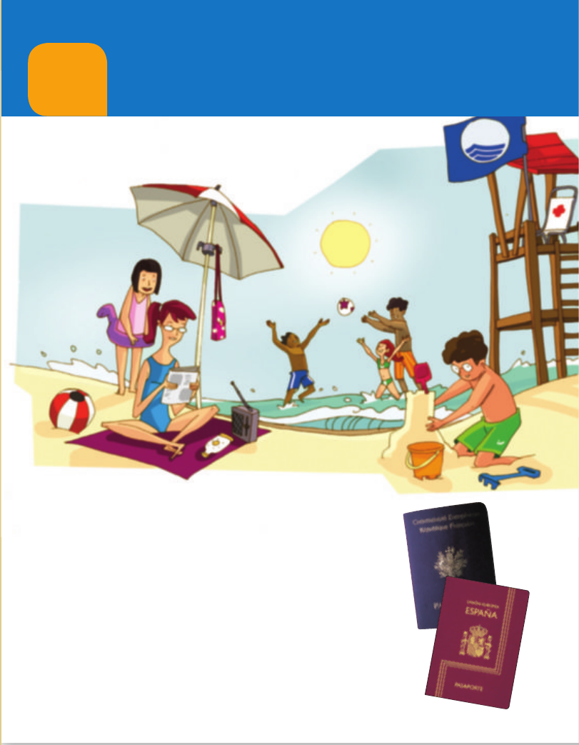 Propósitos • Reconocer situaciones reales donde se utilizan fracciones. • Recordar los conceptos básicos necesarios para la unidad. Previsión de dificultades • Los alumnos pueden tener dificultad para comprender los conceptos de fracciones equivalentes y fracción equivalente a un número natural, aunque realicen los cálculos numéricos correctamente. Realice muchas actividades con representaciones gráficas para que los alumnos interioricen el concepto. • Al expresar una fracción en forma de número mixto o viceversa, los alumnos pueden confundir el orden de los términos al operar o escribir el resultado. Anímelos a hacer un dibujo esquemático para comprobar sus cálculos. Trabajo colectivo sobre la lámina Lea el texto o pida a un alumno que lo haga, muestre un mapa de España y señale las fronteras de costas y terrestres a las que se refiere el texto. Después, pida a los alumnos que busquen en el texto una fracción, la lean, la escriban en la pizarra y digan qué significa en el texto. Hágales ver que indica la fracción de un número y recuerde en común cómo se calcula. Resuelva las actividades de forma colectiva, recordando los conceptos y procedimientos sobre las fracciones trabajados en la unidad anterior. 1 Costa: 3/4 Terrestre: 4/4 2 3/4 5 1/4 Tiene el numerador mayor la fracción de costa. 3/4 es mayor que 1/4. 2 3/4 de 8.000 5 6.000 En España hay 6.000 km de frontera de costa. Otras formas de empezar • Dibuje en la pizarra varios rectángulos iguales divididos en 8 partes iguales y explique que son empanadas en porciones para vender. Pida a varios alumnos que imaginen que compran menos (o más) de una empanada y digan la fracción, la escriban en la pizarra y marquen en el dibujo las porciones que se llevarían. Aproveche estas fracciones para repasar la lectura, escritura, comparación de fracciones con la unidad, y suma y resta con el mismo denominador, contenidos trabajados en la unidad 5. A continuación, dibuje otras empanadas del mismo tamaño que las anteriores pero divididas en 6 porciones iguales y comente algunos de los contenidos que van a aprender en esta unidad: cómo expresar la cantidad de empanada cuando es más de una entera, cómo comparar la compra de dos cantidades de empanadas iguales o de los dos tipos, etc. 6 Fracciones equivalentes. Comparación de fracciones ¿Cuántos kilómetros de playa hay en nuestras costas? El Estado español está delimitado por el mar y por fronteras terrestres con Andorra, Francia, Portugal y Marruecos. Sumando las fronteras terrestres y los límites marinos, contando también los archipiélagos, hay aproximadamente 8.000 kilómetros de fronteras, de los cuales tres cuartas partes son costas y el resto, fronteras terrestres. Ahora bien, no toda la parte de costa es playa, de hecho la mayor parte no lo es. Además, hay que considerar que no todas las playas son aptas para bañarse o para tomar el sol en ellas. En algunas playas ondea una bandera de color azul. Esto significa que la calidad del agua, los servicios y la seguridad son óptimos para que podamos disfrutar de ellas. Estas playas se revisan cada año y se vuelven a repartir las banderas azules que señalan las mejores. 88 ES0000000001187 462117_Unidad06_4192.indd 4 15/04/2014 15:15:36 8 UNIDAD 6 3 1/3 de 6.000 5 2.000 Hay 2.000 km de playas. 3/3 2 1/3 5 2/3 2/3 de 6.000 5 4.000 No es playa 2/3 de costa. Son 4.000 km. 4 1/5 de 2.000 5 400 Tienen banderas azules 400 km de playa. 5/5 2 1/5 5 4/5 4/5 de 2.000 5 1.600 No tienen bandera azul 4/5 de las playas. Son 1.600 km de playa. ¿Qué sabes ya? 1 2/3 de 78 5 52 5/6 de 624 5 520 4/9 de 1.350 5 600 2 2 7 3 12 3 3 5 1 2 5 5 3 1 2 5 5 5 5 5 11 1 1 11 5 5 1 1 11 5 6 11 7 13 1 4 13 5 7 1 4 13 5 11 13 4 18 1 3 18 1 6 18 5 5 4 1 3 1 6 18 5 13 18 5 16 1 6 16 1 2 16 5 5 5 1 6 1 2 16 5 13 16 5 6 2 2 6 5 5 2 2 6 5 3 6 9 16 2 6 16 5 9 2 6 16 5 3 16 15 20 2 7 20 5 15 2 7 20 5 8 20 Notas Competencias • Comunicación lingüística. A la hora de trabajar las preguntas de la lectura y, en especial, en la Expresión oral, señale la importancia de utilizar términos matemáticos específicos para explicar el significado de las fracciones y sus términos. • Aprender a aprender. Comente con los alumnos qué saben ya de las fracciones y señale la importancia de asentar bien dichos conocimientos para seguir avanzando en esta unidad en su aprendizaje. Lee, comprende y razona 1 EXPRESIÓN ORAL. Escribe y compara las fracciones de frontera de costa y de frontera terrestre que hay en España. ¿Cuál de las dos fracciones tiene un numerador mayor? ¿Qué fracción crees que es mayor? 2 ¿Cuántos kilómetros de frontera de costa hay en España? 3 Un tercio de los kilómetros de costa son playas. ¿Cuántos kilómetros de playas hay? ¿Qué fracción de costa no es playa? ¿Cuántos kilómetros son? 4 En España casi un quinto de los kilómetros de playa suelen tener banderas azules. ¿Cuántos kilómetros de playa tienen banderas azules? ¿Qué fracción de las playas no tiene bandera azul? ¿Cuántos kilómetros de las playas no tienen bandera azul? Fracción de un número 3 5 de 45 45 3 3 5 135 135 : 5 5 27 3 5 de 45 5 27 Fracción como división 5 : 6 5 5 6 1 Calcula. 2 3 de 78 5 6 de 624 4 9 de 1.350 2 ¿Qué fracción de litro hay en cada vaso? – Reparte 2 litros entre 7 vasos. – Reparte 3 litros entre 12 vasos. Suma y resta de fracciones de igual denominador Suma o resta los numeradores de las fracciones y deja el mismo denominador. Suma 4 7 1 2 7 5 4 1 2 7 5 6 7 Resta 8 9 2 5 9 5 8 2 5 9 5 3 9 3 Calcula. 3 5 1 2 5 5 11 1 1 11 7 13 1 4 13 4 18 1 3 18 1 6 18 5 16 1 6 16 1 2 16 5 6 2 2 6 9 16 2 6 16 15 20 2 7 20 TAREA FINAL Estudiar las mareas de unas playas Al final de la unidad estudiarás cómo las mareas cubren parte de distintas playas. Antes, aprenderás a reconocer y obtener fracciones equivalentes, trabajar con números mixtos, reducir fracciones a común denominador y comparar fracciones. SABER HACE