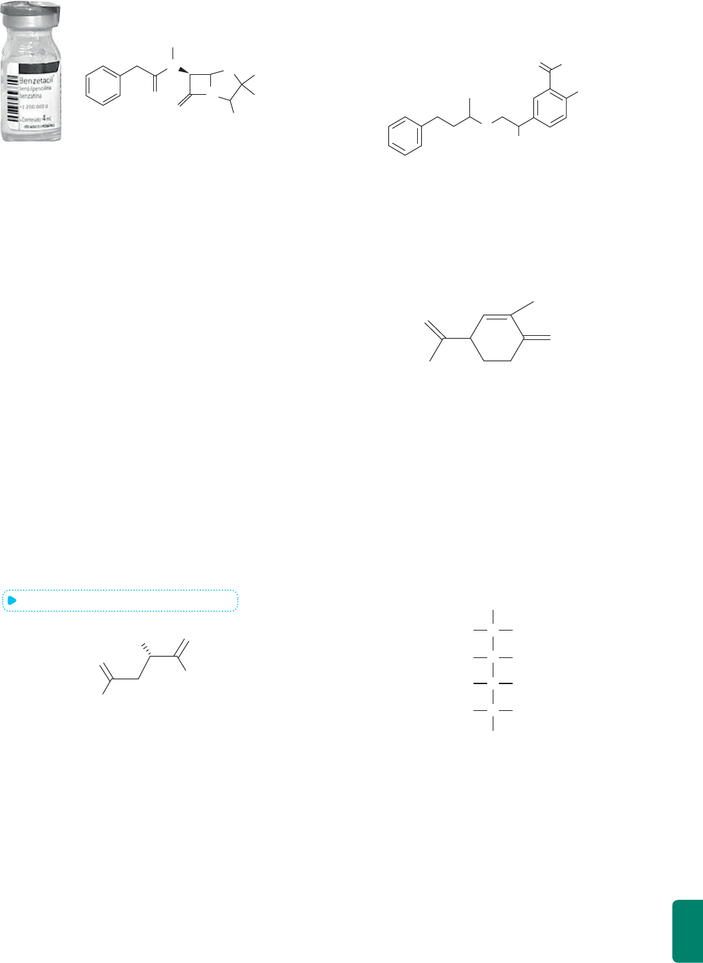 F R E N T E 1 157 42 UFPA 2016 O anti-hipertensivo labetalol, fórmula estrutural plana dada abaixo, é exemplo de um fármaco que apre- senta vantagens ao ser administrado como racemato. O NH 2 N H OH OH Como no processo de síntese todos os estereoisôme- ros são produzidos, o número de estereoisômeros na mistura será A 1. b 2. C 3. D 4. e 5. 43 UPF 2016 A carvona é uma substância que pode ser en- contrada no óleo essencial extraído da Mentha viridis (l ). O carvona Sobre a carvona, é correto armar: A Apresenta todas as duplas conjugadas entre si. b Apresenta duas duplas com isomeria geométrica (cis-trans). C Apresenta a fórmula molecular C10H13O. D Apresenta quatro carbonos com hibridização sp 2 . e Apresenta um carbono assimétrico em sua estrutura. 44 Uece 2016 A glicose é uma das principais fontes de energia para o ser humano, sendo também conhecida como “açúcar do sangue”. Atente à estrutura da glicose: CH 2 OH CHO CH OH HO H H OH H OH C C C No que diz respeito à isomeria óptica que ocorre com a estrutura da glicose, assinale a armação ver- dadeira. A Na estrutura existem dois átomos de carbono as- simétricos. b O total de isômeros ópticos ativos gerados por essa estrutura é 16. C Essa estrutura representa a glicose levogira. D Na estrutura existem três átomos de carbono simétricos. O O N N H Representação da estrutura da penicilina benzatina CH 3 CH 3 CO 2 H S Sobre a estrutura acima, julgue as armativas que seguem. A estrutura apresenta 6 carbonos sp 2 e 12 carbo- nos sp 3 . Apresenta isomeria óptica, possuindo apenas um carbono quiral. Possui as funções amida, ácido carboxílico e um anel aromático. O número total de átomos de hidrogênio presentes nessa estrutura é 18. Apresenta 6 ligações p. 41 PUC-PR 2016 Os alimentos ricos em asparagina são, princi- palmente, alimentos ricos em proteína. A asparagina é um aminoácido não essencial porque independe da ingestão de alimentos ricos em nutrientes, pois o organismo con- segue produzi-lo quando necessário. Uma das funções da asparagina é manter as células do sistema nervoso saudá- veis e contribuir para a formação e manutenção de ossos, pele, unhas e cabelos, por exemplo. A asparagina serve para formar dentro do organismo novas proteínas de acor- do com a necessidade do organismo em cada momento. Disponível em: <http://www.tuasaude>. Analisando o texto e a fórmula da asparagina apre- sentada a seguir. Dado: Número atômico: H = 1, C = 6, N = 7, O = 8 H 2 N H 2 N O O OH Assinale a alternativa correta. A Podemos encontrá-la em alimentos como carne e leite apenas. b Possui dois isômeros ópticos ativos, sendo possí- vel a obtenção de uma mistura racêmica, a qual é opticamente ativa, ou seja, desvia o plano de luz polarizado. C Possui um isômero dextrogiro e dois isômeros le- vogiros. D Possui as seguintes funções orgânicas: amina, ami- da e ácido carboxílico. e Possui a função amina, a qual caracteriza o seu ca- ráter ácido. QUÍMICA Capítulo 7 Isomeria158 Texto para a questão 45. Leia o texto para responder à questão a seguir. A bioluminescência é o fenômeno de emissão de luz visível por certos organismos vivos, resultante de uma rea- ção química entre uma substância sintetizada pelo próprio organismo (luciferina) e oxigênio molecular, na presença de uma enzima (luciferase). Como resultado dessa reação bioquímica é gerado um produto em um estado eletronica- mente excitado (oxiluciferina*). Este produto, por sua vez, desativa-se por meio da emissão de luz visível, formando o produto no estado normal ou fundamental (oxilucife- rina). Ao final, a concentração de luciferase permanece constante. Luciferina + O2 Oxiluciferina*→ luciferase → Oxiluciferina + hv(450 – 620 nm) O esquema ilustra o mecanismo geral da reação de bioluminescência de vagalumes, no qual são formados dois produtos diferentes em estados eletronicamente ex- citados, responsáveis pela emissão de luz na cor verde ou na cor vermelha. H N luciferina luciferase NO O2 S COOHS O * N oxiluciferina (ceto) “laranja-avermelhado” “esverdeado” NO ∗ S S O O O C O 2C O 2 N NO S S O N NO S S O N NO S S O N oxiluciferina (enolato) NO S S − − − − − − − − 45 Unesp 2016 De acordo com o texto e utilizando a classificação periódica dos elementos, assinale a al- ternativa que apresenta a massa molar, em g ∙ mol –1, e o tipo de isomeria presente na luciferina do vagalume. A 274,3 e óptica. 279,3 e óptica. C 279,3 e geométrica. D 274,3 e geométrica. E 279,3 e tautomeria. Texto para a questão 46. A molécula de epinefrina foi primeiramente isolada em sua forma pura em 1897 e sua estrutura foi deter- minada em 1901. Ela é produzida na glândula adrenal (daí vem o seu nome usual, adrenalina) como um úni- co enantiômero. NH Epinefrina OH HO HO 46 Udesc 2016 Analise as proposições em relação à mo- lécula de epinefrina. I. Possui seis carbonos com a configuração sp e três com configuração sp3. II. A fórmula molecular é C9H13NO3. III. Apresenta somente um carbono assimétrico. IV. Apresenta as funções amida, álcool e fenol. Assinale a alternativa correta. A Somente as afirmativas II e III são verdadeiras. Somente a afirmativa II é verdadeira. C Somente a afirmativa III é verdadeira. D Somente as afirmativas I e II são verdadeiras. E Somente as afirmativas I e III são verdadeiras. 47 UEM 2015 Isoleucina, Leucina e Valina são aminoá- cidos essenciais, ou seja, aminoácidos que não são produzidos pelo nosso organismo. Assim, nós pre- cisamos ingeri-los por meio de alimentação ou por suplemento alimentar. Com base na estrutura química dos aminoácidos, assinale o que for correto. H H O leucina isoleucina valina O O OH OH OH H 2 N H 2 N NH 2 01 A carbonila é um grupo funcional presente nas es- truturas dos aminoácidos. 02 A leucina possui um substituinte isobutil e a valina um substituinte isopropil. 04 Cada um dos a