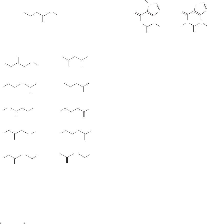 QUÍMICA Capítulo 7 Isomeria166 Com base no exposto, responda: a) Considerando-se o rompimento das ligações en- tre os carbonos 1 e 2 e entre os carbonos 2 e 3, escreva os fragmentos gerados e suas respecti- vas massas. b) Escreva as fórmulas estruturais planas de dois isô- meros da molécula do n-pentano. 5 Uerj 2015 Um processo petroquímico gerou a mis- tura, em partes iguais, dos alcinos com fórmula molecular C6H10. Por meio de um procedimento de análise, determinou-se que essa mistura continha 24 gramas de moléculas de alcinos que possuem átomo de hidrogênio ligado a átomo de carbono insaturado. A massa da mistura, em gramas, corresponde a: A 30 36 C 42 D 48 6 Mackenzie 2018 O butanoato de metila é um flavori- zante de frutas utilizado na indústria alimentícia. A sua fórmula estrutural está representada abaixo. O O CH₃ H₃C Analise a fórmula do butanoato de metila e assinale a alternativa que traz, respectivamente, um isômero de compensação e um de função desse avorizante. A O O CH₃ H₃C e OH O H₃C CH₃ O O H₃C CH₃ e OH O H₃C C O O CH₃ H₃C e O H₃C OH D O O H₃C CH₃ e O OH H₃C E O O CH₃ H₃C e O HO O CH₃ 7 PUC-Rio A graduação alcoólica que é indicada nos rótulos das bebidas alcoólicas (mostrada em % Vol ou em graus Gay Lussac – °GL) indica a percentagem de álcool em volume que a mistura contém. Conside- rando que a vodca comercial tem graduação igual a 37,5 °GL, responda às questões a seguir. a) Calcule a concentração em quantidade de matéria (mol ⋅ L-1) de álcool etílico em uma solução aquosa com 37,5% em volume do álcool, sabendo que a densidade do álcool etílico é igual a 0,80 g ⋅ mL-1. b) Escreva a fórmula estrutural do álcool etílico e o seu nome, segundo a nomenclatura oficial da Iupac. c) Escreva a fórmula estrutural do isômero funcional do álcool etílico. d) Escreva a equação da combustão completa do etanol, balanceada corretamente. 8 UFU 2018 “Dentre os estimulantes do chá, a teofilina e a teobromina pertencem a uma classe de compostos orgâni- cos, chamada xantina. Ambas têm vários efeitos fisiológicos no corpo. A teofilina relaxa a musculatura lisa das vias aéreas, tornando a respiração mais fácil. Já a teobromina pode estimular o coração e tem um leve efeito diurético, melhorando o fluxo sanguíneo ao redor do corpo.” Disponível em: <https://www.dicasnutricao.com.br/estimulantes-do-cha/.> Acesso em 25/03/2018. As substâncias citadas possuem as seguintes fórmu- las moleculares H 3 C CH 3 HN O N N NO Teobromina Teofilina H 3 C CH 3 O N NH N NO Disponível em: <http://4.bp.blogspot.com/Captura_de_tela-13.png.> Acesso em 25/03/2018. Essas substâncias são: A alótropos com fórmulas e com massas moleculares diferentes. alcalóides de massa molecular diferentes e fórmula estrutural distintas. C amidas de mesma fórmula molecular e massas mo- lares iguais. D isômeros, (C7H8N4O2) e possuem a mesma massa molecular. 9 Ufla I. CH3CH2CH2CH2CH3 II. CH3CH(CH3)CH2CH3 III. CH3CH2OCH2CH2CH3 IV. CH3CH2CH2CH2CH2OH V. CH3CH2CH2CH2CH2Cl VI. CH3CH2CH2CH(Cl)CH3 A partir da análise dos compostos acima, pode-se ar- mar que: A I é isômero funcional de V. I e II são isômeros de cadeia. C III e IV são isômeros de posição. D V e VI são isômeros funcionais. E III e IV são isômeros de cadeia. F R E N T E 1 167 10 Fuvest Palíndromo – Diz-se da frase ou palavra que, ou se leia da esquerda para a direita, ou da direita para a esquerda, tem o mesmo sentido. AURÉLIO. Novo Dicionário da Língua Portuguesa. 2. ed. 40. imp. Rio de Janeiro: Nova Fronteira, 1986. p.1251. “Roma me tem amor” e “a nonanona” são exemplos de palíndromo. A nonanona é um composto de cadeia linear. Existem quatro nonanonas isômeras. a) Escreva a fórmula estrutural de cada uma dessas nonanonas. b) Dentre as fórmulas do item a, assinale aquela que poderia ser considerada um palíndromo. c) De acordo com a nomenclatura química, pode-se dar dois nomes para o isômero do item b. Quais são esses nomes? 11 Uerj 2020 Em uma unidade industrial, emprega-se uma mistura líquida formada por solventes orgânicos que apresentam a fórmula molecular C2H6O. Entre os componentes da mistura, ocorre isomeria plana do seguinte tipo: A cadeia função C posição D compensação 12 EsPCEx 2020 Um aluno, durante uma aula de química orgânica, apresentou um relatório em que indicava e associava alguns compostos orgânicos com o tipo de isomeria plana correspondente que eles apresentam. Ele fez as seguintes afirmativas acerca desses com- postos e da isomeria correspondente. I. os compostos butan-1-ol e butan-2-ol apresentam entre si isomeria de posição. II. os compostos pent-2-eno e 2-metil-but-2-eno apresentam entre si isomeria de cadeia. III. os compostos propanal e propanona apresentam entre si isomeria de compensação (metameria). IV. os compostos etanoato de metila e metanoato de etila apresentam entre si isomeria de função. Das armativas feitas pelo aluno, as que apresentam a correta relação química dos compostos orgânicos ci- tados e o tipo de isomeria plana correspondente são apenas A I e II. I, II e III. C II e IV. D I, II e IV. e III e IV. 13 Enem 2018 As abelhas utilizam a sinalização química para distinguir a abelha-rainha de uma operária, sendo capazes de reconhecer diferenças entre moléculas. A ra- inha produz o sinalizar químico conhecido como ácido 9-hidroxidec-2-enoico, enquanto as abelhas-operárias produzem ácido 10-hidroxi-dec-2-enoico. Nós podemos distinguir as abelhas-operárias e rainhas por sua aparên- cia, mas, entre si, elas usam essa sinalização química para perceber a diferença. Pode-se dizer que veem por meio da química. LE COUTEUR, P; BURRESON, J. Os botões de napoleão: as 17 moléculas que mudaram a história. Rio de Janeiro: Jorge Zahar, 2006 (adaptado). As moléculas dos sinalizadores químicos produzidas pelas abelhas rainha e operária possuem dife