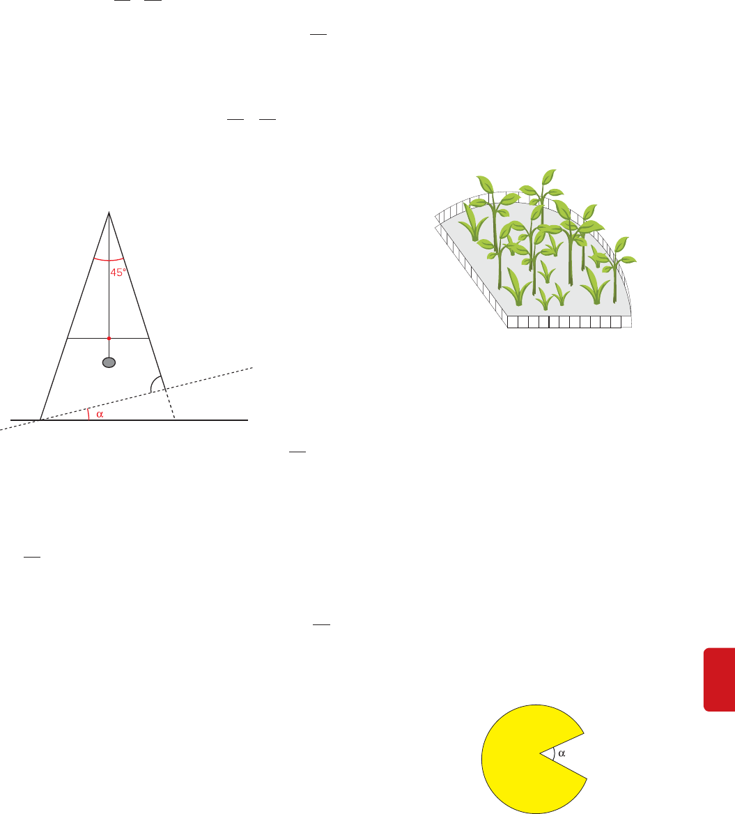 F R E N T E 3 283 13 Sendo P um ponto do interior do triângulo ABC tal que os ângulos P ˆBA e P ˆCA medem 30° e 50° respectivamente, determine a diferença entre as medidas dos ângulos B ˆPC e B ˆAC 14 Uerj 2015 Uma ferramenta utilizada na construção de uma rampa é composta pela seguinte estrutura: • duas varas de madeira, correspondentes aos segmentos AE e AD, que possuem comprimentos diferentes e formam o ângulo D ˆAE igual a 45°. • uma travessa, correspondente ao segmento BC, que une as duas varas e possui uma marca em seu ponto médio M. • um fio fixado no vértice A e amarrado a uma pe- dra P na outra extremidade. • nesse conjunto, os segmentos AB e AC são con- gruentes. Observe o esquema que representa essa estrutura. C P M E Nível horizontal FD B A Quando o o passa pelo ponto M, a travessa BC ca na posição horizontal. Com isso, obtém-se, na reta que liga os pontos D e E, a inclinação α desejada. Calcule α, supondo que o ângulo A ˆED mede 85°. 15 A respeito de um triângulo isósceles ABC cuja base BC é menor que os lados congruentes, sabemos que: • o ângulo oposto à base mede 36°. • a bissetriz do ângulo interno de vértice B inter- cepta o lado oposto no ponto D. • pelo ponto D, passa uma reta paralela à base BC do triângulo que intercepta o lado AB no ponto E. Qual dos pares de triângulos a seguir são con gruentes um ao outro? A ABC e ADE. b ABD e BCE. C ADE e BCD. D BCE e CDE E BCD e CDE. 16 Qual o número inteiro que mais se aproxima da medi- da em metros: a) do raio de uma circunferência cujo comprimento total é de 62,8 m? ) de um arco com 90° de uma circunferência cujo raio é 7 m? c) do raio de uma circunferência na qual um arco de 300° tem 2 km de comprimento? 17 IFMG 2012 Uma partícula descreve um arco de 1 080° sobre uma circunferência de 15 cm de raio. A distância percorrida por essa partícula, em cm, é igual a: A 90π b 120π C 140π D 160π 18 A figura a seguir representa um canteiro de plantas que foi cercado colocando-se uma estaca por metro ao longo de todo o seu contorno A B Sabendo que o canteiro tem a forma de um setor cir- cular de raio 14 m e ângulo central de 135°, determine: a) o comprimento aproximado do arco AB. ) quantas estacas foram usadas. 19 IFSC 2016 Considere a seguinte situação: duran te a Oktoberfest, em Blumenau SC, um conjunto de bicicletas com rodas de diâmetro 26 polegadas per- correu 855,6 m em linha reta, durante o desfile na Rua XV de Novembro. Sabendo-se que 1 polegada equivale a 2,5 cm e que π = 3,1, é correto afirmar que, durante o desfile, a roda realizou: A 600 voltas. b 800 voltas. C menos de 400 voltas. D mais de 1 200 voltas. E entre 400 e 500 voltas. 20 Um famoso personagem dos jogos eletrônicos da dé cada de 1970 tinha o formato de um setor circular com apenas 0,5 cm de raio e 3,5 cm de perímetro Determine a medida aproximada do ângulo α. MATEMÁTICA Capítulo 2 Princípios de Geometria Plana284 21 Um circuito de corridas ABCDEF é formado por três arcos e três cordas de uma mesma circunferência que circunscreve um hexágono regular, como mostra a fi- gura a seguir. F A B C DE Se o raio dessa circunferência mede 100 m, determine o comprimento aproximado do circuito. 22 No dia do seu aniversário de casamento, João resol- veu fazer uma surpresa para sua esposa cobrindo o jardim de sua casa com flores cercadas por um enfeite constituído de uma série de pequenas lâmpadas liga- das por um fio. João fez com que esse fio formasse o contorno de um coração, de acordo com a figura a se- guir, que apresenta dois quadrados com 1,5 m de lado e três triângulos equiláteros congruentes entre si. A B Sabendo que o o dá apenas uma volta no coração, que é formado por quatro arcos de circunferência, tais que duas delas têm seus centros nos centros de cada um dos quadrados e as outras duas têm centros nos pontos A e B, o número inteiro mais próximo do comprimento, em metros, da parte do o que contor na todo o coração é: A 7 b 10 C 13 D 26 E 29 23 A espiral regular de cinco centros é construída, com régua e compasso, a partir dos vértices de um pentá- gono regular, ABCDE, como mostra a figura a seguir A E P QC B D S R T Primeiro, usamos a régua para prolongar os lados do pentágono. Depois, usamos o compasso para traçar os seguintes arcos: • EP de centro no ponto A. • PQ de centro no ponto B • QR de centro no ponto C. • RS de centro no ponto D. • ST de centro no ponto E. Se o lado do pentágono regular ABCDE mede 1 cm, o comprimento total da espiral desenhada é de: A 2π cm. b 3π cm C 4π cm. D 5π cm. E 6π cm. 24 IFSP 2013 Uma pista de atletismo é formada por duas raias cujo percurso é formado por duas partes retas intercaladas com duas semicircunferências, conforme a figura Dois atletas estavam correndo, um na raia I e outro na raia II, quando pararam para descansar. O atleta da raia II disse que dera 10 voltas na pista e correra mais, pois sua raia é maior; já o outro atleta discordou, pois ele acreditava ter dado mais voltas. Se a semicircunferência tracejada da raia I tem raio igual a 10 metros, a da raia II tem raio de 12 metros e as partes retas têm 100 metros de comprimento, então o número mínimo de voltas que o atleta da raia I deve completar para correr mais que o outro é: A 11 b 12 C 13 D 14 E 15 F R E N T E 3 285 25 Unesp 2015 A figura representa duas raias de uma pis- ta de atletismo plana. Fábio (F) e André (A) vão apostar uma corrida nessa pista, cada um correndo em uma das raias. Fábio largará à distância FB da linha de par- tida para que seu percurso total, de F até a chegada em C', tenha o mesmo comprimento do que o percur- so total de André, que irá de A até D' A B F C D fora de escala B' C' linha de chegada raia de André raia de Fábio linha de partida D' E A'a Considere os dados: • ABCD e A'B'C'D' são retângulos • B', A' e E estão alinhados. • C, D e E estão alinhados • A'D eB'C