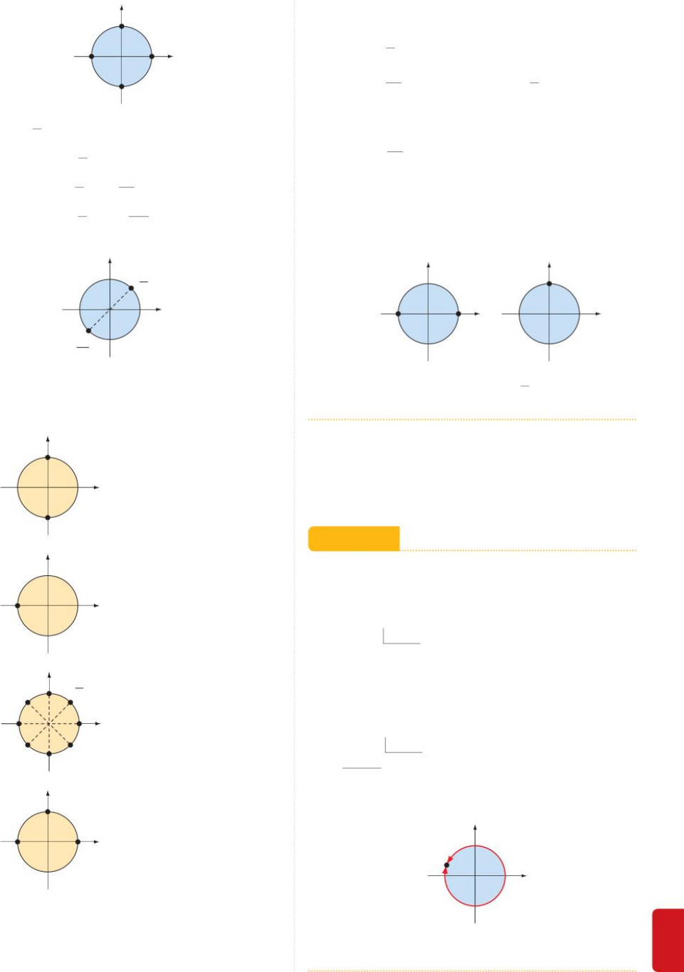 F R E N T E 1 49 y x c) AB 6 K K 0 AB 6 K 1 AB 6 7 6 K 2 AB 6 2 13 6 (repetição) = π + π = ⇒ = π = ⇒ = π + π = π = ⇒ = π + π = π Assim: y x 6 7π 6 π 7 Determine a equação da família dos arcos dada a sua representação no ciclo trigonométrico. a) y x b) y x + c) y x + 4 π d) y x + Resolução: a) Os dois pontos dividem a circunferência em arcos iguais, isso indica que eles fazem parte da mesma família. Para montar a equação da família, escolha qual quer arco côngruo e some Kp. Observe: AB 2 + K ; K , = π π ∈Z mas também poderia ser: AB 3 2 + K ; K ou AB 2 + K ; = π π ∈ = π πZ K ∈ Z, dentre outras innitas representações. b) Z = π π ∈AB + 2K ; K c) AB K 4 ; K = π ∈Z (As extremidades dos arcos são vértices de um octógono regular). d) Neste exemplo, os três pontos não dividem a circunferência em três partes iguais, logo não per tencem à mesma família. Vamos dividir o problema. y x + y x + AB K ; K ou AB 2 + 2K ; K = π ∈ = π π ∈Z Z Primeira determinação positiva Também pode ser chamado de menor determinação positiva o arco côngruo de uma família que possui a menor medida positiva ou nula. Exercício resolvido 8 Calcule a primeira determinação positiva: • 1 000° Resolução: 1 000° 360° 2280° – ⇒ ° ° ⋅ °1 000 = 280 + (2) 360 280° é a primeira determinação positiva. • –2 350° Resolução: 2 350° 360° 62 160° 190° – ⇒− ° − ° − ⋅ °2 350 = ( 190 ) + ( 6) 360 É claro que –190° não pode ser a primeira determina- ção positiva. Observe: y x A–190° 170° 170° é côngruo de – 190°, logo 170° é a primeira deter- minação positiva. MATEMÁTICA Capítulo 7 Trigonometria – conceitos básicos50 Revisando 1 Transforme as medidas de graus para radianos na tabela abaixo. 0° 210° 30° 225° 45° 240° 60° 270° 90° 300° 120° 315° 135° 330° 150° 360° 180° 540° 2 Calcule o menor ângulo formado pelos ponteiros de um relógio às 16 h e 40 min. 3 Calcule a primeira determinação positiva dos arcos: a) 1 730° b) 1 000° c) 23 4 p rad F R E N T E 1 51 Exercícios propostos 1 Converter em graus as seguintes medidas em radianos: a) 5 3 p b) 8 p c) 4 3 p d) 20 p e) 4p 2 Converter em radianos as seguintes medidas dadas em graus: a) 450° b) 225° c) 210° d) 330° e) 252° 3 EEAR 2019 Gabriel verificou que a medida de um ângu- lo é 3 10 p rad. Essa medida é igual a A 48° 54° C 66° 72° 4 Sobre uma circunferência de raio 1,6 cm marca-se um arco de comprimento 6,4 cm. Calcular a medida do arco, em radianos. 5 Sobre uma circunferência de raio 10 cm marca-se um arco AB tal que a corda AB mede 10 cm. Calcular a medida do arco em radianos. 6 Fuvest Um arco de circunferência mede 300°, o seu comprimento é 2 km. Qual o número inteiro mais pró- ximo da medida do raio, em metros? A 157 284 C 382 628 E 764 7 Uerj 2019 Observe no esquema um círculo de raio igual a 3,14cm. Seu maior arco, AB, correspondente ao ângulo centralα, tem comprimento de 15,7cm. Calcule, em graus, a medida do ângulo α. 8 Fuvest Considere um arco AB de 110° numa circunfe- rência de raio 10 cm. Considere, a seguir, um arco A’B’ de 60° numa circunferência de raio 5 cm. Dividindo-se o comprimento do arco AB pelo do arco A’B’ (ambos medidos em cm), obtém-se: A 11 6 2 C 11 3 22 3 E 11 9 Fuvest O perímetro de um setor circular de raio R e ân- gulo central medindo α radianos é igual ao perímetro de um quadrado de lado R. Então α é igual a: A 3 p 2 C 1 2 3 p E 2 p 10 Em um círculo, um ângulo central intercepta um arco de 0,1 m, e o raio mede 20 cm Quantos radianos mede tal ângulo? 11 Fuvest (Adapt.) Considere um arco AB de 120° em uma circunferência de raio 10 cm. Considere, a seguir, um arco A’B’ de 60° em uma circunferência de raio 10 cm. Dividindo-se o comprimento do arco AB pelo do arco A’B’ (ambos medidos em cm), obtém-se: A 11 6 2 C 11 3 22 3 E 11 12 Fuvest (Adapt.) O perímetro de um setor circular de raio R e ângulo central medindo α radianos é igual ao perímetro de um triângulo equilátero de lado R. Então, α é igual a: A 3 p 2 C 1 2 3 p E 2 p 13 Enem PPL 2019 Uma pista circular delimitada por duas circunferências concêntricas foi construída. Na cir cunferência interna dessa pista, de raio 0,3 km, serão colocados aparelhos de ginástica localizados nos pontos P, Q e R, conforme a gura. O segmentoRP é um diâmetro dessa circunferência in terna, e o ângulo PRQ tem medida igual a 5 p radianos Para uma pessoa ir do ponto P ao ponto Q andando pela circunferência interna no sentido anti horário, ela percorrerá uma distância, em quilômetro, igual a A 0,009p 0,03p C 0,06p 0,12p E 0,18p