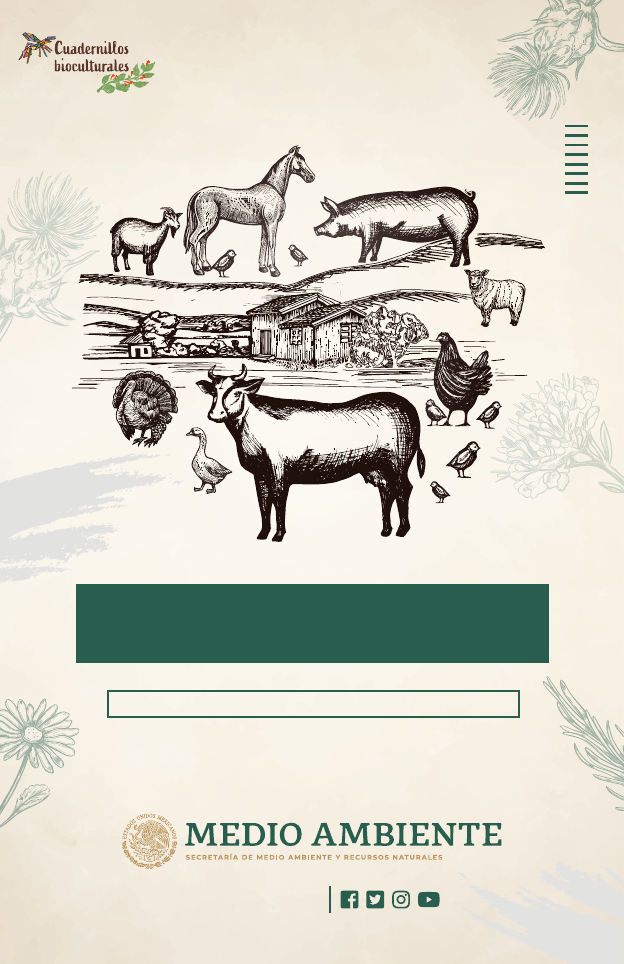 gob.mx/semarnat ÁREA DE PATRIMONIO BIOCULTURAL ENFERMEDADES Y USO DE PLANTAS MEDICINALES EN ANIMALES Enfermedades y uso de plantas medicinales en animales DR © Secretaría de Medio Ambiente y Recursos Naturales Subsecretaría de Planeación y Política Ambiental Área de Patrimonio Biocultural Edificio Sede Av. Ejército Nacional No. 223, Col. Anáhuac, C.P. 11320 Alcaldía Miguel Hidalgo, Ciudad De México www.gobmx/semarnat Autor: Orquidia Guadalupe Rodríguez Moreno Revisión de texto: Gimena Pérez Ortega Kalina Mirianda Perkins Carmen Montserrat Ruiz Huerta José Roberto Aguilar Jiménez Diseño gráfico y editorial: Carlos Rodrigo Moreno Constantino Mirian del Moral Prieto Todos los derechos reservados. Los conocimientos y la información ori- ginal de este cuadernillo son de origen y creación colectiva. Sus poseedo- res y recreadores son los pueblos originarios de México, por lo que debe respetarse su origen para mantenerlos colectivos. En consecuencia, dichos conocimientos no podrán ser apropiados ni utilizados con fines de lucro di- recto o indirecto. Los usuarios pueden leer, copiar y difundir la información aquí contenida, siempre y cuando no se descontextualice o deforme, y se reconozca o se cite el origen de la misma. Impreso y hecho en México ÍNDICE PRÓLOGO 7 PRESENTACIÓN 9 ENFERMEDADES EN ANIMALES Y TRATAMIENTO CON PLANTAS 11 Importancia de recuperar el uso de plantas medicinales para el tratamiento de enfermedades en animales 12 Tipos de preparaciones a base de plantas medicinales para uso interno 13 Tipos de preparados con plantas medicinales para uso externo 13 PARÁSITOS INTERNOS 15 Tratamientos para eliminar parásitos 16 Tintura para desparasitar 16 Baño nasal (Oestrus ovis) 18 PARÁSITOS EXTERNOS 19 Champú para eliminar piojos, pulgas y escabiosis 20 ENFERMEDADES RESPIRATORIAS 22 Jarabe expectorante 23 PROBLEMAS DE LA PIEL 25 Abscesos y heridas con pus 25 Tratamiento para abscesos y heridas con pus 25 Cataplasma de hojas de repollo 25 “MATADOS” 27 Pomada para el tratamiento de “matados” 27 PROBLEMAS DIGESTIVOS 29 Hinchazón o timpanismo 29 Polvo para el tratamiento de la hinchazón o timpanismo 30 Cocimiento de altamisa, pericón y ajenjo 31 FRACTURAS O QUEBRADURAS 33 Tratamiento para fracturas o quebraduras 33 PROBLEMAS REPRODUCTIVOS 35 Metritis 35 RETENCIÓN DE PLACENTA 36 Salida de matriz o prolapso del útero 36 Cocimiento o cocción para metritis, desprendimiento de placenta y apurar el parto 37 MASTITIS 39 “Apagado” para mastitis 39 ¿Qué hacer cuando una vaca en producción no tiene mucha leche? 40 PLANTAS MEDICINALES PARA LOS TRATAMIENTOS ANTES MENCIONADOS 41 LITERATURA CONSULTADA 54 7 La serie cuadernillos bio-culturales de la Secreta-ría de Medio Ambiente y Recursos Naturales surgió de la necesidad de reconocer, visibilizar, conservar y salva- guardar el legado biocultural de México. Tiene los propósitos de fo- mentar el cuidado de los ecosistemas y acompañar el proceso de restauración am- biental y social en el país. Los autores y actores de los cuadernillos son los expertos locales de los pueblos y comu- nidades, también estudiantes, técnicos, académicos y quie- nes han estado interesados en compartir materiales para construir una sociedad del co- nocimiento más justa y plural. Los distintos ejemplares que conforman esta serie abordan diversos tópicos relacionados a alimentación, salud, artesa- nía, gastronomía, bienes fo- restales no maderables, arte, entre otros. Se mencionan los conoci- mientos, prácticas e inno- vaciones tradicionales que las distintas culturas han confor- mado a partir de la relación con la naturaleza, por cientos o miles de años y transmitido de generación en generación. Lector y lectora bienveni- dos a tu segundo cuader- nillo biocultural. PRÓLOGO 9 PRESENTACIÓN El estudio del uso de plantas medicinales dis- ponibles localmente, pa- ra el tratamiento de diversas enfermedades en animales, es un campo en el que hay poca investigación en el país. Sin embargo, el aprovecha- miento de las plantas medici- nales es muy antiguo y ha ido evolucionado durante siglos. Este tema abarca varios as- pectos sobre las prácticas tra- dicionales relacionadas con el cuidado y la salud animal. Durante generaciones, los ganaderos y pastores de di- ferentes regiones del mundo, han observado muy de cerca a sus animales. Conocen a sus rebaños, por ejemplo, identifi- can el sexo, la cantidad de le- che y carne que puede llegar a producir cada animal, sa- ben cuándo están enfermos y como curarlos, así como las edades en la que les ocurren los padecimientos e inclu- so han asignado nombres a cada tipo de enfermedad. Por lo que han desarrollado un amplio espectro de métodos de prevención y tratamiento para mantener a sus animales sanos y productivos. La com- pilación académica relativa al tratamiento de enfermedades en animales con plantas me- dicinales, se ha hecho desde áreas como la etnobotánica y la veterinaria en que existen registros para enfermedades ocasionadas por bacterias, protozoos, hongos, entre otros. También se ha realizado in- vestigación fitoquímica y far- macológica de las especies vegetales empleadas tradi- cionalmente. Estos estudios se han enfocado a identificar los compuestos que tienen las plantas y a evaluar la actividad reportada tradicionalmente, por ejemplo, se determinan las dosis efectivas y tóxicas e identifican los mecanismos de acción. Cabe señalar que el interés en su estudio ha surgi- do en la mayoría de los casos porque son plantas que usa el ser humano. En el apartado 10 de la literatura consultada se mencionan algunos de estos estudios. Las recetas que se describen en este cuadernillo son una selección de prácticas locales que realizan las comunidades de la Zona Istmo-Costa del estado de Chiapas, México. La zona incluye los municipios de Arriaga, Tonalá y Pijijiapan, en la región predomina el clima cálido subhúmedo con lluvias de verano y presenta