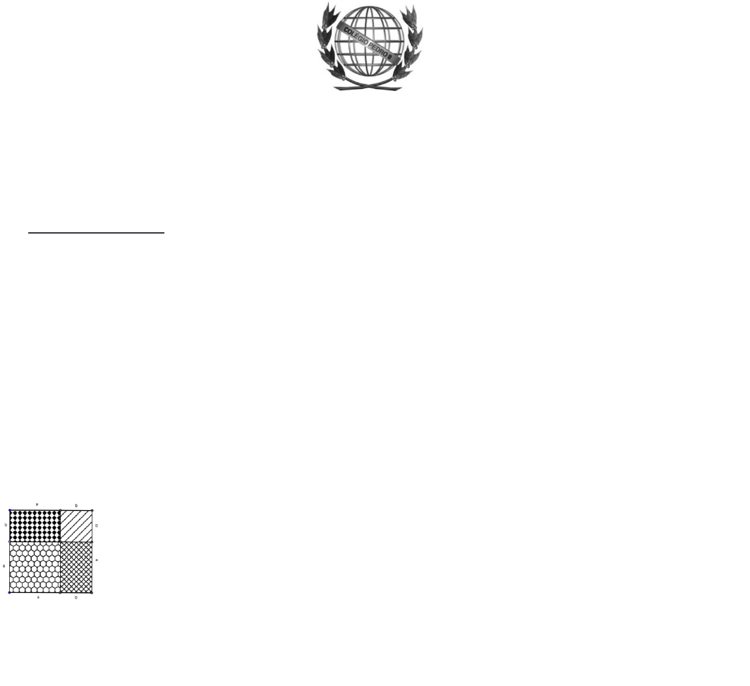 C O L É G I O P E D R O I I – C a m p u s H u m a i t á I I D e p a r t a m e n t o d e M a t e m á t i c a REVISÃO PARA ALUNOS DE 9º ANO 1ª PARTE: Álgebra: 1) Observe a expressão (a + b)2. Ela representa a área de um quadrado cuja medida do lado é ___________ . Agora observe a figura abaixo: O quadrado maior tem lado ________ e área __________ Ele pode ser decomposto em quatro partes: Dois retângulos de lados ____ e ____ e área ________; Um quadrado médio de lado _____ e área ______; Um quadrado menor de lado _____ e área ______; Assim, podemos afirmar que a área do quadrado maior de lado _________ é igual a soma das áreas das figuras que o compõem. Então: Área do quadrado maior = Área do quadrado médio + Área dos dois retângulos + Área do quadrado menor (a + b)2 = a2 + 2 a b + b2 2) Resolva cada um dos exemplos geometricamente: 1. Observe a expressão (y + 6)2. Ela representa a área de um quadrado cuja medida do lado é ___________ . O quadrado maior tem lado ________ e área __________ Ele pode ser decomposto em quatro partes: Dois retângulos de lados ____ e ____ e área ________; Um quadrado médio de lado _____ e área ______; Um quadrado menor de lado _____ e área ______; Assim, podemos afirmar que a área do quadrado maior de lado _________ é igual a soma das áreas das figuras que o compõem. Então: Área do quadrado maior = Área do quadrado médio + Área dos dois retângulos + Área do quadrado menor ______________ = _______ + _____________ + _______ 2 2. Observe a expressão (3x + 5)2. Ela representa a área de um quadrado cuja medida do lado é ___________ . O quadrado maior tem lado ________ e área __________ Ele pode ser decomposto em quatro partes: Dois retângulos de lados ____ e ____ e área ________; Um quadrado médio de lado _____ e área ______; Um quadrado menor de lado _____ e área ______; Assim, podemos afirmar que a área do quadrado maior de lado _________ é igual a soma das áreas das figuras que o compõem. Então: Área do quadrado maior = Área do quadrado médio + Área dos dois retângulos + Área do quadrado menor ______________ = _______ + _____________ + _______ Nas questões a seguir, marque a alternativa correta: 3) Desenvolvendo o produto notável (3a + 2b)2, obtém-se A) 9a² + 4b². B) 9a² + 12ab + 4b². C) 9a² - 4b². D) 9a² - 12ab + 4b². 4) Desenvolvendo o produto notável (3m + n)2, obtém-se A) 9m² + n². B) 9m² - n². C) 9m² - 6mn + n². D) 9m² + 6mn + n². 5) A expressão algébrica que representa a situação “o quadrado da soma de dois números, mais 5 unidades” é a) x + y + 52. b) (x + y + 5)2. c) (x + y)2 + 5. d) x2 + y + 52. 6) Considere as expressões: Então: a) São todas falsas. b) São todas verdadeiras. c) Somente II e III são verdadeiras. d) Somente I e III são verdadeiras. 3 7) Se x + y = 8 e xy = 15, qual é o valor de x2 + 6xy + y2? a) 109 b) 120 c) 124 d) 154 8) Descobrindo parceiros. Indique as expressões equivalentes relacionando um número romano a cada letra I. ( ) II. ( ) III. ( ) IV. ( ) 9) Desenvolvendo o produto notável (8x + 6y)(8x - 6y), obtém-se A a) 64x² + 36y². B b) 64x² - 96xy + 36y². C c) 64x² + 96xy + 36y². D d) 64x² - 36y². 10) Seja N o resultado da operação 375² - 374². A soma dos algarismos de N é: a) 18 b) 19 c) 20 d) 21 e) 22 4 11) Associe cada quadrado sombreado ao trinômio quadrado perfeito que representa sua área, escrevendo a letra e o símbolo romano correspondentes. a) ( ) b) ( ) c) ( ) d) ( ) 12) Se (x – y)2 – (x + y)2 = –20, então x · y é igual a a) 0. b) –1. c) 5. d) 10. 5 13) O valor da fração quando a = 51 e b = 49, é a) 0,02. b) 0,20. c) 2,00. d) 20,0. 14) A forma fatorada da expressão (x² - x) é: a) x(x² - x). b) x(x - x). c) x(x - 1). d) x²(x - 1). 15) A forma fatorada da expressão algébrica az³ - bz² + cz é a) z(az² - bz + c) b) z(az² - bz + cz) c) z(az² - bz - c) d) z(az² + bz + c) 16) A forma fatorada da expressão algébrica 6x4y3 – 9x3y4 – 3x2y3 é a) 3x²y³(2x² - 3xy - 1) b) 3xy(2x³y² - 3x²y² - xy²) c) xy(6x³y² - 9x²y² - 3xy²) d) x²y³(6x² - 9xy - 3) 17) Fatorando por agrupamento o polinômio mx + my + nx + ny, obtém-se a) xy + mn b) (x + m)(y + n) c) (x + n)(m + y) d) (x + y)(m + n) 6 18) Fatorando por agrupamento o polinômio 3a² + ac + 6ab + 2bc, obtém-se a) (a + 3c)(2a + b). b) (3a + c)(a + 2b). c) (3a + b)(a + 2c). d) (3a + 2b)(a + c). 19) Fatorando a expressão 25x2 − 36 com base na fatoração da diferença de dois quadrados, tem-se: a) (5x + 6)(5x − 6) b) (5x + 6)(- 5x + 6) c) ((5x + 6)(5x + 6))2 d) (5x - 6)(5x − 6) e) (x + 6)(x − 6) 20) O valor numérico da expressão para x = 7 é igual a a) − 7 . b) − 5 . c) 0. d) 5. e) 7. 2ª PARTE: Geometria: 1) Calcule o valor de x em cada triângulo a seguir. Em seguida, complete a tabela com as medidas dos ângulos internos calculados por você, a classificação dos triângulos quanto aos ângulos internos e a classificação dos triângulos quanto aos lados. 7 Triângulo Medida do ângulo Interno x Classificação do Triângulo quanto aos Ângulos Classificação do Triângulo quanto aos Lados ΔABC ΔEFG ΔMNO ΔPQR ΔHIJ ΔSTU 2) Classifique os triângulos abaixo: QUANTO AOS LADOS QUANTO AOS ÂNGULOS ( ) Equilátero ( ) Acutângulo ( ) Isósceles ( ) Obtusângulo ( ) Escaleno ( ) Retângulo QUANTO AOS LADOS QUANTO AOS ÂNGULOS ( ) Equilátero ( ) Acutângulo ( ) Isósceles ( ) Obtusângulo ( ) Escaleno ( ) Retângulo 3) Determine o valor dos termos desconhecidos nos triângulos abaixo: a) b) 4x – 40º x + 20º x 52º 85º x 8 c) d) 4) O segmento da perpendicular traçada de um vértice de um triângulo à reta suporte do lado oposto é denominado: (A) Mediana (B) Mediatriz (C) Altura (D) Bissetriz (E) Base. 5) Dentre os quatro centros principais do triângulo qualquer, há dois deles que podem se situar no seu exterior, conforme o tipo de triângulo. Assinale a alternativa em que os mesmos são citados