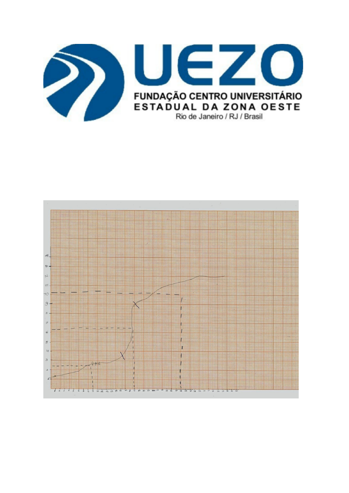 Nome: Hosana Paonessa Chagas Matrícula: 1922222062 Experimento: Titulação de aminoácido Objetivo: Identificar qual é o aminoácido usado no experimento baseado nos valores estabelecidos no gráfico. Gráfico de Titulação Eixo x: Valor em microlitros de NaOH adicionados a solução do aminoácido desconhecido Eixo y: Valor do pH Resultado pk1= 2,5 pk2= 10,3 pi= pk1+ pk2/2 pi= 6,4 Conclusão Com base nos valores aproximados os possíveis aminoácidos são alanina, isoleucina, leucina e treonina.