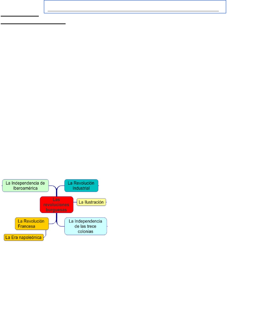 INDICADOR ES DE DESEMPEÑO 1. Reconoce elementos conceptuales que permiten comprender los procesos históricos agrupados bajo el nombre de Revoluciones burguesas, teniendo en cuenta sus características, antecedentes e implicaciones a mediano y a largo plazo. 2. Explica algunos antecedentes, características e implicaciones de la Revolución Francesa en la configuración de los sistemas democráticos en Occidente. 3. Comprende algunos antecedentes, características y etapas en las cuales se desarrolló la llamada primera Revolución Industrial, así como sus implicaciones a mediano y largo plazo en la configuración de nuevas relaciones de producción capitalista. LAS REVOLUCIONES BURGUESAS De modo general una revolución podría definirse como un cambio rápido, profundo y posiblemente violento que afecta a las instituciones políticas, económicas o sociales de uno o varios estados. Desde finales del siglo XVIII hasta los comienzos del siglo XIX finalizó el llamado Antiguo Régimen y ocurre el paso de la denominada Edad Moderna a la Edad Contemporánea. Las revoluciones políticas que tuvieron lugar en ese período se llaman Revoluciones Burguesas, y se definen como movimientos revolucionarios (es decir que generaron cambios profundos a nivel social, económico y político) protagonizados por el sector social de la burguesía, que tuvieron lugar en distintos escenarios desde finales del siglo XVIII y hasta el período de la Primera guerra mundial (1914-1918) (…) Se inspiraron en las ideas de la Ilustración, y a través de ellas, la clase burguesa buscaba elevar su posición social y alcanzar el poder político. El siguiente esquema nos muestra las principales revoluciones burguesas. En esta guía, vamos a abordar dos de ellas debido al impacto que tuvieron a nivel político (Revolución Francesa) y a nivel económico (1ª. Revolución Industrial). Miremos a continuación cuáles eran las características del Antiguo Régimen, y cómo estas entraron en crisis: Características sociales Legalmente la sociedad francesa estaba dividida en estamentos, basados en el privilegio para algunos y la desigualdad para otros. Los que se beneficiaban de este orden social se llamaban primer estado y segundo estado. En el primer estado estaba el clero, formado por personas dedicadas a los oficios religiosos, eran alrededor de 120.000 personas). En el segundo estado se encontraba la nobleza, es decir dueños de grandes extensiones de tierras, (compuesta por unos 400.000 individuos) y ambos tenían privilegios y no pagaban impuestos. El llamado tercer estado estaba formado por burgueses, artesanos, campesinos y sectores marginales, no tenían privilegios y agrupaban al 90% de la población (unos 25.000.000 de personas). Sobre ese grupo recaían los impuestos y cargas económicas con los cuales el Estado pagaba los gastos de su funcionamiento. Los cambios económicos que estaban teniendo lugar en esta época, le daban a la burguesía un fuerte poder económico, pero sin protagonismo político. Este desajuste originaba gran CIENCIAS SOCIALES 8º. OCTAVO-GUÍA 9 I. REVOLUCIÓN FRANCESA El proceso que conocemos como Revolución Francesa dio lugar a la caída del Antiguo Régimen en uno de los países más poderosos del mundo. Las consecuencias de esa revolución no afectaron únicamente a Francia, sino que, en mayor o menor medida, sirvieron de ejemplo a aquellos que en Europa luchaban contra las monarquías absolutas y luchaban por acabar las desigualdades del régimen feudal. CRISIS DEL ANTIGUO RÉGIMEN EN FRANCIA El Antiguo Régimen es el conjunto de rasgos políticos, jurídicos, sociales y económicos que caracterizaron a Europa y sus colonias durante los siglos XVII y XVIII y que entraron en crisis hacia finales del siglo XVIII. Como resultado de la Revolución Francesa el Antiguo Régimen se derrumbó. frustración en la burguesía pues era una clase rica y educada que reclamaba una nueva forma de organización social y política donde ellos pudieran tener un alto nivel de participación. Características políticas Francia estaba gobernada por una monarquía absoluta cuya autoridad era un rey que consideraba que el poder lo había recibido por la voluntad divina, por lo tanto, nadie podía controlarlo ni ponerle limitación alguna, excepto Dios. Pero en el año 1789 esta organización resultaba anticuada y el aparato administrativo y judicial no funcionaban correctamente. Para muchos se hacía necesaria una profunda reforma, pero los privilegiados no estaban dispuestos a ello. La crisis del Estado se reflejaba en un déficit fiscal, es decir, que el estado gastaba más de lo que ganaba. Las medidas que se tomaron para afrontar el problema no hicieron sino complicar la situación pues se centraron en que Francia se endeudara cada día más, y aumentara los impuestos a los no privilegiados. El papel de la Ilustración La Ilustración era un movimiento intelectual surgido desde el siglo XVIII, basado en la exaltación de la razón, como medio para lograr el progreso y solucionar los problemas sociales, en lugar de acudir a las ideas religiosas. Este movimiento denunció y criticó la situación en la cual se encontraba Francia contribuyendo a aumentar la inconformidad y la crisis. Se destacan los aportes de los filósofos Montesquieu y Rousseau, que desarrollaron las ideas según las cuales el poder político no podía concentrarse solo en el rey, sino que este poder debía estar dividido en diferentes ramas, para evitar los abusos de los reyes. También defendieron la idea de igualdad de todos los ciudadanos ante la ley. Difícil situación económica En 1788 los precios del trigo subieron como consecuencia de una serie de malas cosechas. Esta situación creó un ambiente de tensión social y política ya que mientras el pueblo aguantaba escasez, carestía y hambre, los sectores privilegiados vivían en un ambiente de lujo y despilfarro. Significado de la Revolución Francesa: Una vez llevado a cab