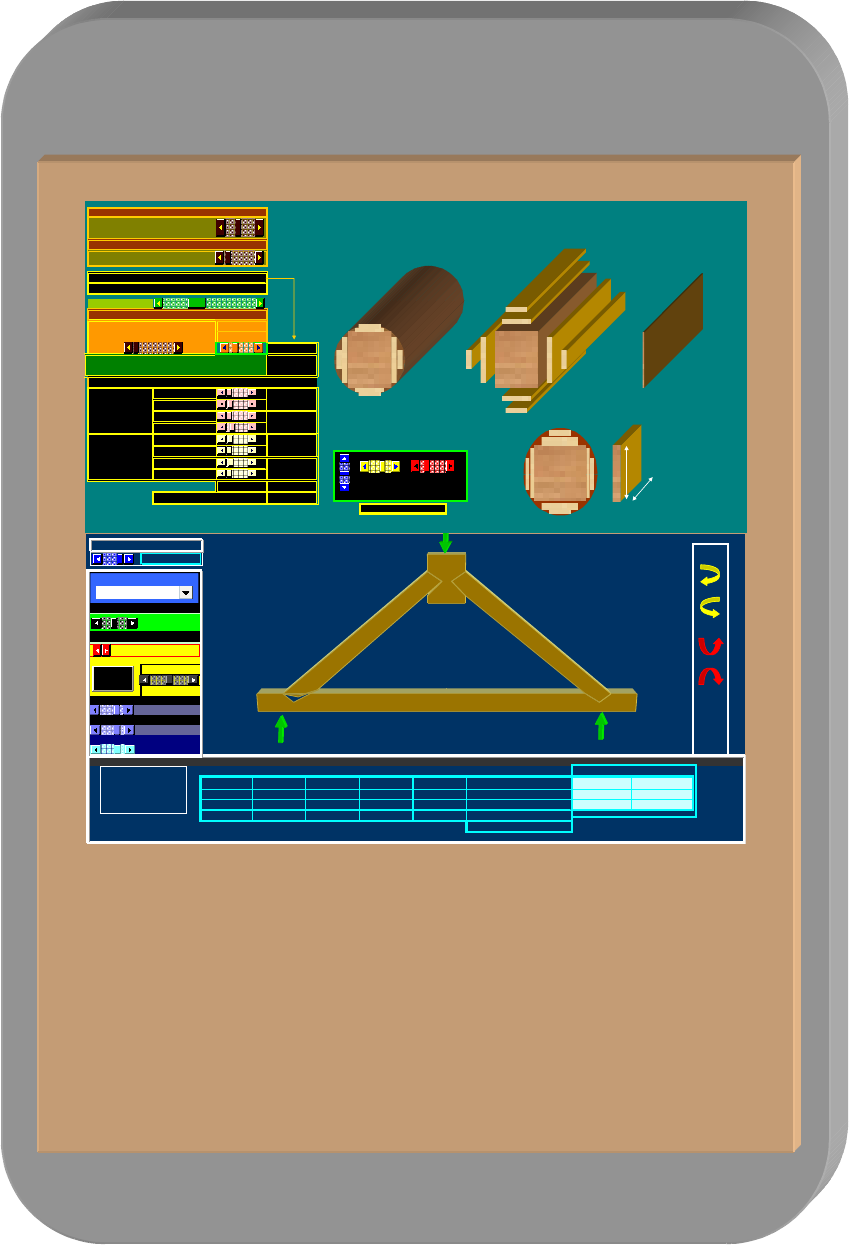 Tecnología Hoy 1 L= 240.0 cm 7.87 pie 1208.50 pie2 Kerf= 4.0 mm # Piezas n = 11 Vol. Piezas 24 pulg 31 pulg Volumen Laterales (pulgadas) 490.55 pie2 39.37 pie2 b = 2.0 pulg. Volumen Tronca Vt = 1.88 m3 Longitud D = 100.0 cm 48.43 pulg Diámetro Basa Central B = 60.7 cm H = 79.5 cm 5.08 cm Lateral Lateral b1= 3.0 h1= 10.0 b2= 3.0 h2= 25.0 Superior 39.37 pie2 98.43 pie2 31.50 pie2 Lateral Superior b3= 12.0 h3= 2.0 Superior 31.50 pie2 41.99 pie2 e Inferior b4= 16 h4= 2.0 Volumen Util: 701.83 pie2 58.07 % 16/04/2007 21:50 41.99 pie2 Rendimiento: e Inferior BASA APROXIMACIÓN 1 2 3 1 2 3 4 4 Basa Central BASA CENTRAL b h L LESSING HOYOS 45 i = 100 % 38 3.141592654 L = 9.0 m H = 4.50 m Barra P i ( kp) f i A i L i (cm) Inferior Superior A - C -14849 -0.7071 500 636 ti = 13.36 cm ts = 13.36 cm A - B 10500 -0.500 500 900 ai = 48.6 cm as = 48.6 cm C - B -14849 -0.7071 500 636 L / 200 ∆ =∆ =∆ =∆ = 0.1661 cm 4.5 Va = 10500.0 kp Ok b = 20.0cm Vb = 10500.0 kp Reacciones Esfuerzos y Deformaciones ∆ i = f i* ( P i*L i /E i*A i) 0.1285 -0.0909 0.1285 P = 21.0 T hi = 25.0cm Base Entalles factor de Escala = 10 Cuerda Superior hs = 25.0cm Cuerda Inferior A n a l i s i s E s t r u c t u r a l Pendiente Solicitación Ver Entalle Madera Verdolago(Verde) Datos del Elemento P Va Vb A C B ESTRUCTURAS DE MADERA Lessing Hoyos I Septiembre del 2013 Tecnología Hoy 2 Construcciones de Madera Contenido TEMAS Contenido8888888.888888888888888888888888888 2 Sistema de unidades 88888888888888888888888888888 3 1. La madera como material estructural8888888888888888888888. 4 2. Elementos sometidos a flexión888888888888888888888888... 20 3. Elementos sometidos compresión, flexo compresión, flexo tracción y torsión8888... 35 4. Elementos de unión: Clavos, tornillos, pernos, tirafondos, entalles y conectores888.. 41 5. Estructuras de cubierta8888888888888888888888888888 61 6. Encofrados888888888888888888888888888888888. 75 7. Encofrado para escaleras888888888888888888888888888 87 8. Encofrados deslizantes8888888888888888..8888888888. ..100 9. Especificaciones técnicas para el encofrado888888888888888888. 108 10. Ataguías888888888888888888888888888888888... 119 11. Aplicaciones88888888888888888888888888888888. 124 12. Puentes de madera8888888888888888888888888888.... 129 13. Bibliografía88888888888888888888888888888888... 137 Santa Cruz, 06/01/2013 Tecnología Hoy 3 Sistemas de unidades Tradicionalmente los calculos de estabilidad de las estructuras son efectuadas en el sistema MKS (metro, kilogramo fuerza o kilopondio, segundo). Por acuerdos internacionales el sistema MKS deberá ser sustituido por el “Sistema Internacional de Unidades – SI”, que difiere del primero en las unidades de fuerza y de masa. En el Sistema MKS, las unidad de fuerza, denominada kilogramo fuerza (kgf) o kilopondio (kp), es el peso de la masa de un kg, vale decir es la fuerza que produce en una masa de un kilogramo, la aceleración de la gravedad g=9.8m/s2. En el sistema SI, la unidad de fuerza, denominada Newtón (N), produce en la masa de un kg. una aceleración de un 1m/s2. Resultan las relaciones: 1kgf = 1kp = 9.8N =10N 1N = 0.102kgf = 0.102kp = 0.10kgf 1kN = 103N = 100kgf = 0.10tf 1MN = 106N = 100x103kgf = 100tf La unidad de presión en el SI se denomina Pascal (Pa), el múltiplo Mpa: 1MPa = 1MN/m2 =1Nmm2= 0.1KN/m2 = 10kgf/cm 2 = 100tf/m2 Notaciones e - Excentricidad fc” - Resistencia de compresión paralela a las fibras "fc Tensión admisible fc ⊥ - Resistencia de compresión perpendicular a las fibras fb - Módulo de ruptura a tracción, medida en el ensayo de flexión ft - Resistencia a tracción simple ft ⊥ - Resistencia a tracción normal a las fibras LE - Limite elástico Fv - Resistencia a corte paralelo Fy - Límite de fluencia. g - Carga permanente – aceleración de la gravedad h - Altura de una viga L - Longitud o vano teórico de una viga Lef - Longitud efectiva de una columna p - Carga variable repartida r - Radio de giro x,y,z - Coordenadas cartesianas xg,yg - Coordenadas del centro de gravedad. A - Area de la sección An - Area neta D - Diámetro E - Módulo elástico Et - Módulo tangencial F - Fuerza aplicada a una estructura Fcr - Carga crítica de pandeo Ix - Momento de inercia para el eje x H - Fuerza tangencial horizontal N - Fuerza normal δ - Deformación ρ =Coeficiente de seguridad ε - Deformación unitaria υ - Módulo de Poisson Tecnología Hoy 4 Tema 1 PROPIEDADES DE LA MADERA RESUMEN. En este capitulo se describen los ensayos para la determinación de las características físicas y mecánicas de la madera, el aserrío, secado, preservación y comercialización de la madera. 1.1 Madera. Es el conjunto de tejidos del xilema, tejido leñoso, que compone el tronco raíces y ramas, excluida la corteza. La madera es un material orgánico que generalmente se lo utiliza en su estado natural. La madera es el único material con el que se puede construir íntegramente una vivienda, es uno de los materiales de construcción de uso más extenso en virtud de su abundancia en la naturaleza, trabajabilidad, bajo costo, baja densidad y gran resistencia con relación al peso. Posee ciertas desventajas como ser: Combustibilidad, falta de homogeneidad y la facilidad con que es atacada por agentes orgánicos. RELACIONES DE AREAS CUBIERTAS DE BOSQUES POR DEPARTAMENTO Departamento Extensión Km2 Area boscosa Km2 % Pando 63.827 61.259 95,96 Santa Cruz 370.621 222.000 59,90 Cochabamba 55.631 37.783 64,32 Beni 213.564 73.223 34,28 Tarija 37.623 29.360 78,03 Chuquisaca 51.524 23.183 44,99 La Paz 133.985 51.752 38,62 Potosí 118.218 500 0,42 Oruro 53.588 - - Total Bolivia 1098.581 496.551 45,00 Tabla 1:1 Fuente: CDF 1.2 Clasificación. De acuerdo a sus características botánicas: Gimnospermas, coníferas resinosas. Angiospermas, frondosas o latifoliadas. En base al criterio de dureza y el aspecto estructural, se dividen en: Duras, Intermedias y Blandas. Maderas Duras. Son aquellas que provienen de árboles frond