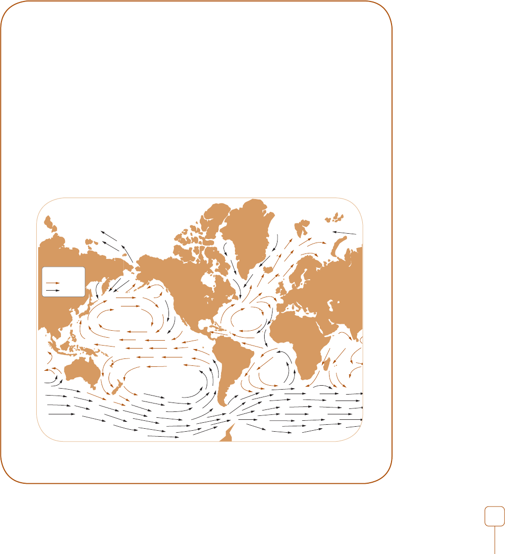 Correntes Quente Fria Aula 4 Geografi a Física II 93 Balanço energético da atmosfera Há séculos a temperatura média da superfície terrestre permanece em torno de 15°C, aproximadamente. Portanto, isso implica que a Terra se encontra em equilíbrio radiativo, já que emite a mesma quantidade de energia recebida. A radiação solar proporciona a energia necessária às correntes da atmosfera e dos oceanos. Porém, essa radiação não se perde, simplesmente se transforma em calor ou em energia cinética de partículas em movimento. Na realidade, a energia solar pode se transformar várias vezes durante os diferentes processos de troca de calor entre a Terra e sua atmosfera, conforme se discutiu nos parágrafos anteriores. As correntes oceânicas constituem outro fator determinante das variações de temperatura, pois atuam como transportadoras de calor. Assim, por exemplo, a corrente do Golfo (Gulf Stream), que vai do golfo do México ao mar da Noruega, é responsável por diferenças positivas de temperatura de até 15°C apresentadas por algumas localidades litorâneas norueguesas em relação a outras de mesma latitude (Figura 10). No processo de evaporação da água, que ocorre principalmente nas zonas oceânicas quentes, há absorção de calor. Antes de se condensar com desprendimento de energia térmica, o vapor d’água formado por evaporação interage com a circulação geral da atmosfera, podendo se deslocar e percorrer milhares de quilômetros. Desse modo, produz-se transferência de calor das zonas onde há maior evaporação (oceanos) que precipitações para outras onde ocorre o contrário (continentes). Figura 10 – Principais correntes oceânicas. Correntes que se movem para os polos são quentes e correntes que se movem para o Equador são frias. 1 unidade a b c 1 unidade 1 u nid ad e 1 un idad e 1,6 un ida de 2 u nid ade s 90˚ 45˚ 30˚ Aula 4 Geografi a Física II94 Em certos casos, a energia solar absorvida pelo sistema Terra-atmosfera é novamente irradiada ao espaço. Porém, emitindo uma quantidade de energia igual a que se recebe, esse sistema permanece em um equilíbrio radiativo. Todavia, esse equilíbrio não ocorre em todas as latitudes. Na região compreendida entre os paralelos 35°N e 35°S, a energia absorvida é maior do que a irradiada ao espaço, conforme a Figura 11(a). Essa região se caracteriza, pois, por um excesso de energia. Ao contrário, nas regiões compreendidas entre 35° e os polos, existe um défi cit de energia, como você pode ver nas Figuras 11(b) e 11(c). Figura 11 – Diferenças quantitativas na radiação solar que atinge a superfície da Terra: (a)trópicos; (b) extratropical; (c) polos. Os meteorologistas calcularam as temperaturas que ocorreriam se em cada latitude ocorresse o equilíbrio radiativo, sem troca de calor entre as diferentes latitudes. Nesse caso, a variação espacial no campo de temperatura (gradiente térmico) seria muito alta. Na realidade, esse gradiente médio observado é muito menor, pois se reduz principalmente devido à transferência de calor que ocorre entre as baixas e as altas latitudes, tanto na atmosfera como nos oceanos. A propagação meridional da energia é facilitada pela ação dos vórtices de grande escala (altas e baixas) que se desenvolvem nas regiões de forte gradiente horizontal de temperatura. As correntes oceânicas também transportam energia dos trópicos para os polos, o que será discutido com maiores detalhes na próxima aula. Como já vimos na Aula 3 (Variáveis meteorológicas), o balanço de radiação ou suas componentes podem ser medidas através de instrumental específi co. No Brasil, a medição da radiação solar é feita extensivamente por três tipos de instrumentos: o actinógrafo bimetálico, Atividade 5 1 2 Aula 4 Geografi a Física II 95 o piranômetro e o heliógrafo. O actinógrafo e o piranômetro medem a radiação solar global, enquanto o heliógrafo mede a insolação diária ou o número diário de horas de brilho de Sol (medindo indiretamente a radiação solar direta). Que processos atmosféricos são relacionados à radiação emitida pelo Sol? Explique o porquê do equilíbrio radioativo que existe na Terra.