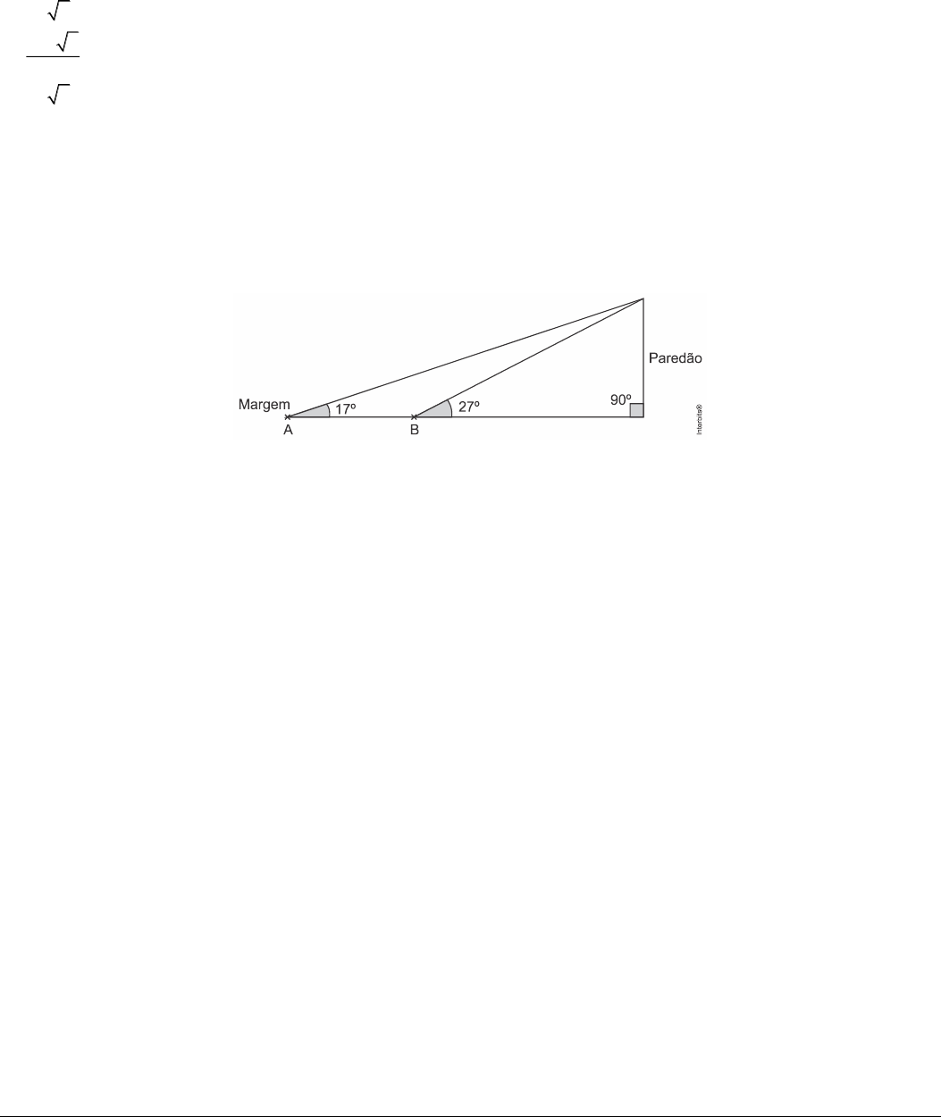 Lista de Exercícios (Complementar) – Trigonometria - Módulo 1 (Trigonometria no Triângulo Retângulo) Página 1 de 31 waldematica.com.br 1. (IFAL - 2018) Um atleta de 1,70 metro de altura, percebe que, ao fazer flexões no momento em que estica os braços, seu corpo, em linha reta, forma um ângulo de 30 com o piso. Nessas condições, a que altura do piso se encontra a extremidade da sua cabeça? (Considere que os braços formam com o piso um ângulo reto). a) 85 cm. b) 85 3 cm. c) 170 3 cm. 3 d) 85 2 cm. e) 340 cm. 2. (IFPE - 2018) Os alunos pré-egressos do campus Jaboatão dos Guararapes resolveram ir até a Lagoa Azul para celebrar a conclusão dos cursos. Raissa, uma das participantes do evento, ficou curiosa pra descobrir a altura do paredão rochoso que envolve a lagoa. Então pegou em sua mochila um transferidor e estimou o ângulo no ponto A, na margem onde estava, e, após nadar, aproximadamente, 70 metros em linha reta em direção ao paredão, estimou o ângulo no ponto B, conforme mostra a figura a seguir: De acordo com os dados coletados por Raissa, qual a altura do paredão rochoso da Lagoa Azul? Dados: sen (17 ) 0,29, tan (17 ) 0,30, cos (27 ) 0,89 e tan (27 ) 0,51. a) 50 metros. b) 51 metros. c) 89 metros. d) 70 metros. e) 29 metros 3. (USF - 2017) As rampas são uma boa forma de assegurar a acessibilidade para cadeirantes e indivíduos com mobilidade reduzida. A acessibilidade a edificações, mobiliário, espaços e equipamentos urbanos é assegurada em lei. A Associação Brasileira de Normas Técnicas (ABNT), de acordo com a Lei Brasileira de Inclusão da Pessoa com Deficiência (13.146/2015), regula a construção e define a inclinação das rampas, bem como os cálculos para a sua construção. As diretrizes de cálculo da ABNT, indicam um limite máximo de inclinação de 8,33% (proporção de 1:12). Isso significa que uma rampa, para vencer um desnível de 1m, deve ter, no mínimo, 12 m de comprimento e isso define que o ângulo de inclinação da rampa, em relação ao plano horizontal, não pode ser maior que 7 . De acordo com as informações anteriores, para que uma rampa, com comprimento igual a 14 m e inclinação de 7 em relação ao plano, esteja dentro das normas da ABNT, ela deve servir para vencer um desnível com altura máxima de Use: sen7 0,12; cos7 0,99 e tg7 0,12. a) 1,2 m. b) 1,32 m. c) 1,4 m. d) 1,56 m. e) 1,68 m. Lista de Exercícios (Complementar) – Trigonometria - Módulo 1 (Trigonometria no Triângulo Retângulo) Página 2 de 31 waldematica.com.br 4. (IFSUL - 2017) A figura a seguir representa a área de um jardim com o formato de um triângulo retângulo isóscele. Nele deverá ser colocada uma tela para cercar totalmente o terreno. Considerando os dados apresentados, quantos metros de tela, no mínimo, serão necessários? a) 4 2 2 b) 2 2 2 c) 4 2 d) 2 2 5. (Enem (Libras) 2017) A famosa Torre de Pisa, localizada na Itália, assim como muitos outros prédios, por motivos adversos, sofrem inclinações durante ou após suas construções. Um prédio, quando construído, dispunha-se verticalmente e tinha 60 metros de altura. Ele sofreu uma inclinação de um ângulo ,α e a projeção ortogonal de sua fachada lateral sobre o solo tem largura medindo 1,80 metro, conforme mostra a figura. O valor do ângulo de inclinação pode ser determinado fazendo-se o uso de uma tabela como a apresentada. Ângulo α (Grau) Seno 0,0 0,0 1,0 0,017 1,5 0,026 1,8 0,031 2,0 0,034 3,0 0,052 Lista de Exercícios (Complementar) – Trigonometria - Módulo 1 (Trigonometria no Triângulo Retângulo) Página 3 de 31 waldematica.com.br Uma estimativa para o ângulo de inclinação ,α quando dado em grau, é tal que a) 0 1,0α b) 1,0 1,5α c) 1,5 1,8α d) 1,8 2,0α e) 2,0 3,0α 6. (Puccamp - 2017) Burj Khalifa, localizado em Dubai, é considerado o edifício mais alto do mundo, com cerca de 830 m. A figura ao lado da fotografia representa a extensão vertical desse edifício altíssimo, dividida em 8 níveis igualmente espaçados. Dado: adote 3 1,73 em suas contas finais. Utilizando os dados fornecidos, um feixe de laser emitido a partir do ponto indicado na figura por P atingiria a coluna central do Burj Khalifa, aproximadamente, na marca a) 5N . b) 6N . c) 7N . d) 4N . e) 3N . 7. (FGV - 2017) A torre de controle de tráfego marítimo de Algés, em Portugal, tem o formato de um prisma oblíquo, com base retangular de área 2247 m . A inclinação da torre é de aproximadamente 76,7 , com deslocamento horizontal de 9 m da base superior em relação à base inferior do prisma. Lista de Exercícios (Complementar) – Trigonometria - Módulo 1 (Trigonometria no Triângulo Retângulo) Página 4 de 31 waldematica.com.br Dados: α sen α cos α tg α 13,3 0,23 0,97 0,24 Nas condições descritas, o volume do prisma que representa essa torre, aproximado na casa da centena, é igual a a) 39.300 m . b) 38.900 m . c) 38.300 m . d) 34.600 m . e) 34.200 m . 8. (PUC-RJ 2017) Considere o quadrado ABCD como na Figura. Sabendo que E é o ponto médio do lado AB, assinale o valor de Ccos ( DE). a) 1 2 b) 5 5 c) 2 2 d) 1 5 2 e) 3 2 Lista de Exercícios (Complementar) – Trigonometria - Módulo 1 (Trigonometria no Triângulo Retângulo) Página 5 de 31 waldematica.com.br 9. (IFAL - 2017) Um estudante do Curso de Edificações do IFAL utiliza um teodolito para determinar a altura de um prédio construído em um terreno plano. A uma determinada distância desse prédio, ele vê o topo do prédio sob um ângulo de 30 . Aproximando-se do prédio mais 60 m, passa a ver o topo do prédio sob um ângulo de 60 . Considerando que a base do prédio está no mesmo nível da luneta do teodolito, qual a altura deste prédio? a) 10 3 m. b) 28 m. c) 30 m. d) 20 3 m. e) 30 3 m. 10. (UFRGS - 2017) Considere dois círculos concêntricos em um ponto O e de raios distintos; dois segmentos de reta AB e CD perpendiculares em O, como na figura abaixo. Sabendo que o ângulo ˆADB mede 30 e que o segme