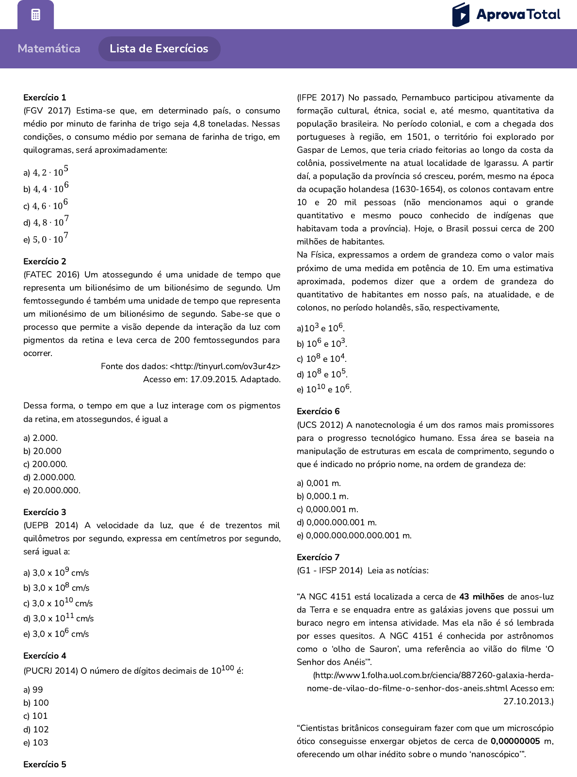 Na Física, expressamos a ordem de grandeza como o valor mais
