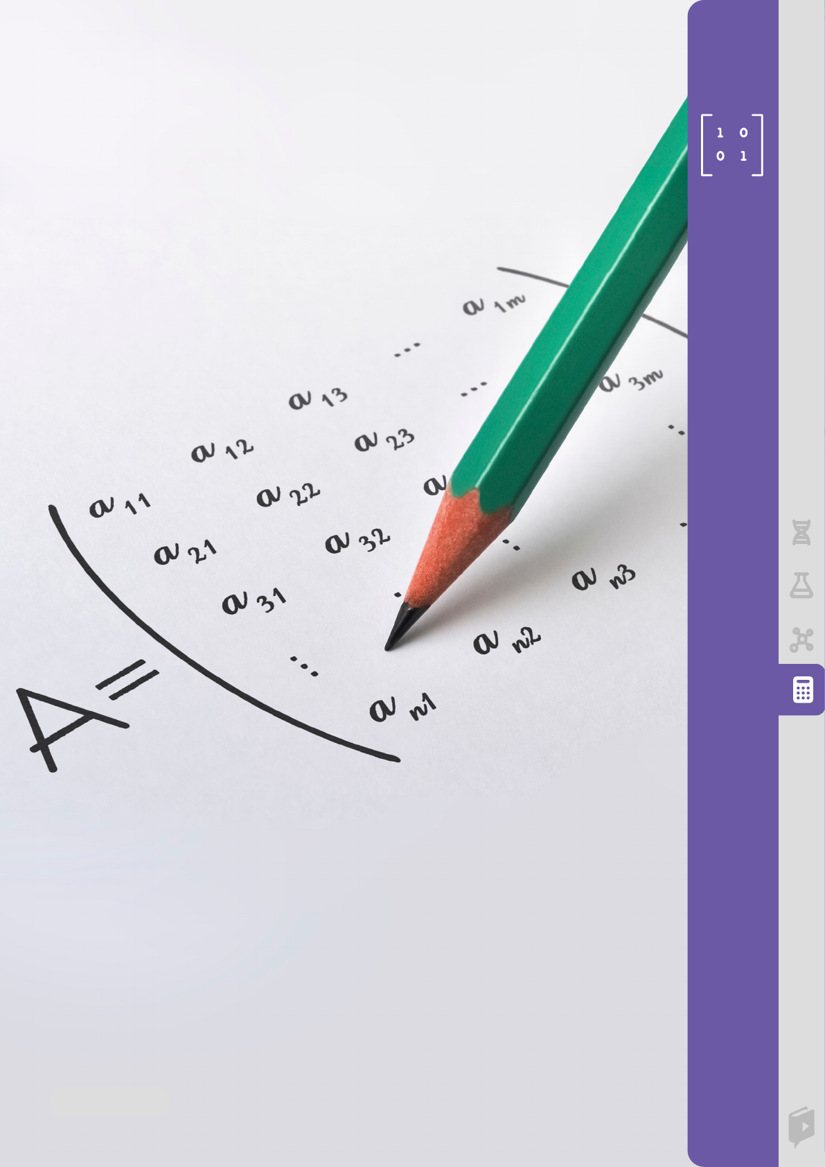 M AT R IZ ES 2020 - 2022 MATRIZES 1. Matrizes 2. Operações com Matrizes 3. Determinantes Aqui você aprenderá os conceitos iniciais de matrizes, aprenderá a operar matrizes e a calcular seus determinantes. Esta subárea é composta pelos módulos: 4. Cálculo da Matriz Inversa 5. Propriedades dos Determinantes 3www.biologiatotal.com.br MATRIZES No nosso dia a dia, frequentemente lidamos com elementos dispostos em linhas (filas horizontais) e colunas (filas verticais), que forma um quadro retangular ou uma tabela. Em linguagem matemática, essa tabela ou quadro é denominada de matriz. As matrizes podem ser apresentadas a partir de situações-problema do cotidiano, principalmente relacionadas ao mundo do trabalho, como uma forma simplificada de escrever informações e, por isso, tornam-se instrumentos de interpretação de dados da realidade. Por exemplo, podemos colocar em uma tabela as notas de um aluno em diferentes disciplinas durante os três trimestres: Disciplina Trimestre 1º Trimestre 2º Trimestre 3º Trimestre Matemática 5 8 7 Português 6 7 7 História 8 9 9 Geografia 7 6 8 Observando a tabela acima, podemos escrevê-la em forma de matriz da seguinte forma: 5 6 8 8 7 9 7 7 9 7 6 8 A partir de agora, vamos estudar a matemática das matrizes. DEFINIÇÃO, ORDEM E REPRESENTAÇÃO DE UMA MATRIZ Matriz é toda tabela numérica numa disposição de linhas e colunas. Notação: letras maiúsculas do alfabeto. Chamando a matriz do exemplo acima de 𝐵 temos a seguinte representação: 𝐵 = 5 6 8 8 7 9 7 7 9 7 6 8 4 M at riz es Essa matriz possui 4 linhas e 3 colunas. Dizemos que seu tamanho é 4×3. O tamanho da matriz é chamado de ordem da matriz. Dada uma matriz genérica com 𝑚 linhas e 𝑛 colunas, dizemos que essa matriz tem ordem 𝑚×𝑛 e a representamos da seguinte forma: 𝐴 = 𝑎11 𝑎12 ⋯ 𝑎1𝑛 𝑎21 𝑎22 ⋯ 𝑎2𝑛 ⋮ ⋮ ⋱ ⋮ 𝑎𝑚1 𝑎𝑚2 ⋯ 𝑎𝑚𝑛 Perceba que primeiro representamos a matriz 𝐵 por colchetes e depois a matriz 𝐴 por parênteses. Isso não é um problema, pois existem três formas de representar uma matriz: parênteses, colchetes ou dupla barra vertical. Veja abaixo alguns exemplos de matrizes: 1. 𝐴 = 14 3 5 −6 8 2×3 Lemos: matriz 𝐴 de ordem dois por três, ou seja, duas linhas e três colunas. 2. 𝐵 = 8 −6 4 1 0 9 3×2 Lemos: matriz 𝐵 de ordem três por dois, ou seja, três linhas e duas colunas. 3. Lemos: matriz 𝐶 de ordem três por três, ou seja, três linhas e três colunas. Agora que já vimos alguns exemplos, voltemos à matriz genérica: 𝐴 = 𝑎11 𝑎12 ⋯ 𝑎1𝑛 𝑎21 𝑎22 ⋯ 𝑎2𝑛 ⋮ ⋮ ⋱ ⋮ 𝑎𝑚1 𝑎𝑚2 ⋯ 𝑎𝑚𝑛 𝑎11 representa o elemento que está na posição: 1ª linha da matriz e 1ª coluna da matriz. Também, 𝑎12 representa o elemento que está na posição: 1ª linha e 2ª coluna da matriz. Da mesma forma, 𝑎22 representa o elemento que está na posição: 2ª linha e 2ª coluna da matriz. Continuamos esse padrão até chegarmos em 𝑎𝑚𝑛, que representa o elemento que está na linha 𝑚 da matriz e na coluna 𝑛. 5www.biologiatotal.com.br M at riz esPercebemos então que o número de linhas cresce de cima para baixo, enquanto o número de colunas cresce da esquerda para a direita. Veja a representação abaixo: Colunas Linhas Mas e quanto ao número de elementos de uma matriz? Uma matriz de ordem 3×2 possui 3⋅2=6 elementos, uma matriz de ordem 3×3 possui 3⋅3=9 elementos, então, uma matriz de ordem 𝑚×𝑛 possui 𝑚⋅𝑛 elementos. A partir deste questionamento surge outra pergunta: se a matriz possui tantos elementos assim, como referenciamos um elemento qualquer? A representação para um elemento qualquer da matriz é 𝑎𝑖𝑗. Tal representação significa que o elemento ocupa a 𝑖-ésima linha e a 𝑗-ésima coluna da matriz. LEI DE FORMAÇÃO DE UMA MATRIZ Vimos anteriormente a representação genérica de uma matriz de ordem 𝑚×𝑛 e alguns exemplos de matrizes. Vimos também qual é a representação de um elemento qualquer dessa matriz. É possível, ainda, encontrar uma matriz através de uma lei de formação: tal lei é uma condição imposta aos valores de 𝑖 e 𝑗 e, a partir dessa condição, somos capazes de encontrar o valor de cada elemento da matriz. Antes de continuarmos, vale ressaltar que a representação 𝐴 = 𝑎11 𝑎12 ⋯ 𝑎1𝑛 𝑎21 𝑎22 ⋯ 𝑎2𝑛 ⋮ ⋮ ⋱ ⋮ 𝑎𝑚1 𝑎𝑚2 ⋯ 𝑎𝑚𝑛 É equivalente à representação: 𝐴 = (𝑎𝑖𝑗)𝑚×𝑛 𝑒𝑚 𝑞𝑢𝑒 1 ≤ 𝑖 ≤ 𝑚, 1 ≤ 𝑗 ≤ 𝑛. Vejamos agora alguns exemplos: 1. Encontre a matriz 𝐴=(𝑎𝑖𝑗)2×2, em que 𝑎𝑖𝑗=𝑖+𝑗. Solução: Começaremos representando a matriz de forma genérica. Como é uma matriz de ordem 2×2, significa que ela terá duas linhas e duas colunas: 𝐴 = 𝑎11 𝑎12 𝑎21 𝑎22 http://www.biologiatotal.com.br 6 M at riz es Feito isso, utilizaremos a lei de formação 𝑎𝑖𝑗=𝑖+𝑗 para encontrar o valor de cada elemento: 𝑎11 ⇒ 𝑖 = 1 𝑒 𝑗 = 1 ⇒𝑎11 = 1 + 1 = 2 𝑎12 ⇒ 𝑖 = 1 𝑒 𝑗 = 2 ⇒𝑎12 = 1 + 2 = 3 𝑎21 ⇒ 𝑖 = 2 𝑒 𝑗 = 1 ⇒𝑎21 = 2 + 1 = 3 𝑎22 ⇒ 𝑖 = 2 𝑒 𝑗 = 2 ⇒𝑎22 = 2 + 2 = 4 Substituindo esses valores na matriz 𝐴, temos: 𝐴 = 2 33 4 2. Encontre a matriz 𝐵=(𝑏𝑖𝑗)2×3, em que 𝑏𝑖𝑗=2𝑖−𝑗. Solução: Começaremos representando a matriz de forma genérica. Como é uma matriz de ordem 2×3, significa que ela terá duas linhas e três colunas: 𝐵 = 𝑏11 𝑏12 𝑏13𝑏21 𝑏22 𝑏23 Utilizando a lei de formação 𝑏𝑖𝑗=2𝑖−𝑗, temos: 𝑏11 ⇒ 𝑖 = 1 𝑒 𝑗 = 1 ⇒ 𝑏11 = 2 ⋅ 1 − 1 = 1 𝑏12 ⇒ 𝑖 = 1 𝑒 𝑗 = 2 ⇒ 𝑏12 = 2 ⋅ 1 − 2 = 0 𝑏13 ⇒ 𝑖 = 1 𝑒 𝑗 = 3 ⇒ 𝑏13 = 2 ⋅ 1 − 3 = −1 𝑏21 ⇒ 𝑖 = 2 𝑒 𝑗 = 1 ⇒ 𝑏21 = 2 ⋅ 2 − 1 