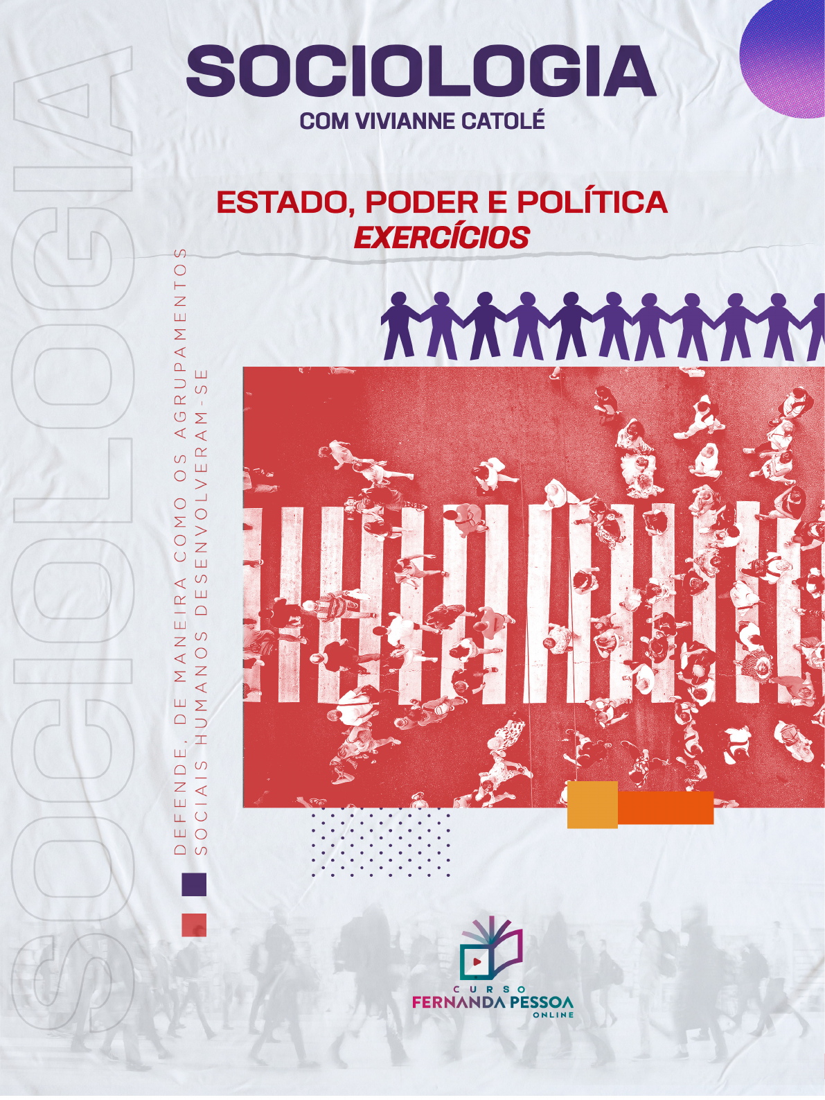 SOCIOLOGIA COM VIVIANE CATOLÉ 1 2 SOCIOLOGIA COM VIVIANE CATOLÉ 1. (Enem 2020) Declaração de Direitos do Homem e do Cidadão – 1789 Os representantes do povo francês, tendo em vista que a ignorância, o esquecimento ou o desprezo dos direitos do homem são as únicas causas dos males públicos e da corrupção dos governos, resolveram declarar solenemente os direitos naturais, inalienáveis e sagrados do homem, a fim de que esta declaração, sempre presente em todos os membros do corpo social, lhes lembre permanentemente seus direitos e seus deveres; a fim de que as reivindicações dos cidadãos, fundadas em princípios simples e incontestáveis, se dirijam sempre à conservação da Constituição e à felicidade geral. Disponível em: www.direitoshunanosusp.br. Acesso em: 7 jun. 2018 (adaptado). Esse documento, elaborado no contexto da Revolução Francesa, reflete uma profunda mudança social ao estabelecer a a) manutenção das terras comunais. b) supressão do poder constituinte. c) falência da sociedade burguesa. d) paridade do tratamento jurídico. e) abolição dos partidos políticos. 2. (Enem 2019) A maior parte das agressões e manifestações discriminatórias contra as religiões de matrizes africanas ocorrem em locais públicosÉ na rua, na via pública, que tiveram lugar mais dedas agressões, geralmente em locais próximos às casas de culto dessas religiões. O transporte público também é apontado como um local em que os adeptos das religiões de matrizes africanas são discriminados, geralmente quando se encontram paramentados por conta dos preceitos religiosos. REGO, L. F.; FONSECA, D. P. R.; GIACOMINI, S. M. Cartografia social de terreiros no Rio de Janeiro. Rio de Janeiro: PUC-Rio, 2014. As práticas descritas no texto são incompatíveis com a dinâmica de uma sociedade laica e democrática porque a) asseguram as expressões multiculturais. b) promovem a diversidade de etnias. c) falseiam os dogmas teológicos. d) estimulam os rituais sincréticos. e) restringem a liberdade de credo. 3. (Uel 2019) As reflexões liberais tenderam a acentuar, até o século XIX, a compreensão de que o Estado era a expressão da Razão. Nessa forma de compreensão liberal, é correto afirmar que o Estado a) deveria intervir na economia, uma vez que a liberdade de negociar reconduziria a sociedade ao princípio do “homem como lobo do homem”, destacado por Rousseau. b) atingiria seu maior grau de eficiência se comandado pelas classes industriais, em detrimento das demais frações que compõem a burguesia, isto é, proprietários de terra e comerciantes. c) seria a instância a partir da qual as desigualdades formais entre os indivíduos se transformariam em igualdade real entre os homens. d) tenderia a desaparecer, na medida em que o sistema produtivo dividisse as riquezas produzidas pelas classes sociais, como expressão da Razão. e) representaria os interesses do conjunto da sociedade, pairando, portanto, acima das classes sociais e de suas demandas específicas. 4. (Ufu 1998) "No Estado moderno, o Governo se compõe normalmente do chefe de Estado (monarca ou presidente da república) e do conselho de ministros, dirigido pelo chefe de Governo. Nas repúblicas presidencialistas, o chefe de Estado é a figura preeminente." (BOBBIO, Norberto. Dicionário de Política . Brasília: UNB, 1996, p. 554) Tomando como referência o texto acima, quais afirmativas se referem a "Governo"? I. O Governo é definido como órgão que manifesta o poder estatal. É um aspecto típico do Estado moderno a existência do Governo que detém o monopólio da força. II. Nos Estados modernos, os centros de poder que normalmente subordinam o Governo são o partido ou a coligação de partidos de Governo. III. Os papéis do Governo constituem apenas uma parte da classe política. O Governo coincide com o poder executivo, realizando a administração pública. IV. Os órgãos legislativo e judiciário fazem parte diretamente do Governo, impondo as regras e ordenando as relações sociais. SOCIOLOGIA COM VIVIANE CATOLÉ 3 a) Todas as afirmativas estão corretas. b) I e IV estão corretas. c) III e IV estão corretas. d) II e IV estão corretas. e) I, II e III estão corretas. 5. (Ufu 1999) "Dificilmente o governante autocrata de um regime ditatorial chama a si mesmo de ditador ou permite que o chamem assim." RIBEIRO, João Ubaldo. Política: quem manda, por que manda, como manda. Rio de Janeiro: Nova Fronteira, 1986, p.115. Assinale os possíveis significados da palavra "ditadura". I. Forma de Governo que apresenta as seguintes características: a) uma pessoa ou um pequeno grupo de pessoas controla, de maneira democrática, todas as instituições sociais; b) refreada por lei constitucional; c) total liberdade de opinião e pensamento. II. O termo refere-se a uma única pessoa ou a um pequeno grupo de pessoas, que apresenta concentração e caráter ilimitado do poder. III. Governo ditatorial que não é refreado pela lei, pois coloca-se acima dela, modificando-a de acordo com sua vontade. IV. Ditadura é toda classe dos regimes não democráticos, especificamente, os modernos. Selecione a alternativa correta. a) I, III e IV estão corretas. b) I e IV estão corretas. c) I e III estão corretas. d) II,III e IV estão corretas. 6. (Ufu 1999) "É claro que sempre houve facções divergentes em todas as sociedades e é evidente que essas facções tendiam a organizar-se, de uma forma ou de outra, em grupos destinados a promover os interesses de seus membros. Mas os partidos políticos organizados, como conhecemos hoje, são fenômeno comparativamente recente." (RIBEIRO, João Ubaldo. Política; quem manda, por quê manda, como manda. 2 ed., Rio de Janeiro: Nova Fronteira, 1986. p. 177) Assinale, de acordo com o código, a alternativa que con- tém as afirmativas corretas sobre os partidos políticos. I. Fenômeno decorrente do surgimento dos parlamentos e de grupos de interesse estruturados formal