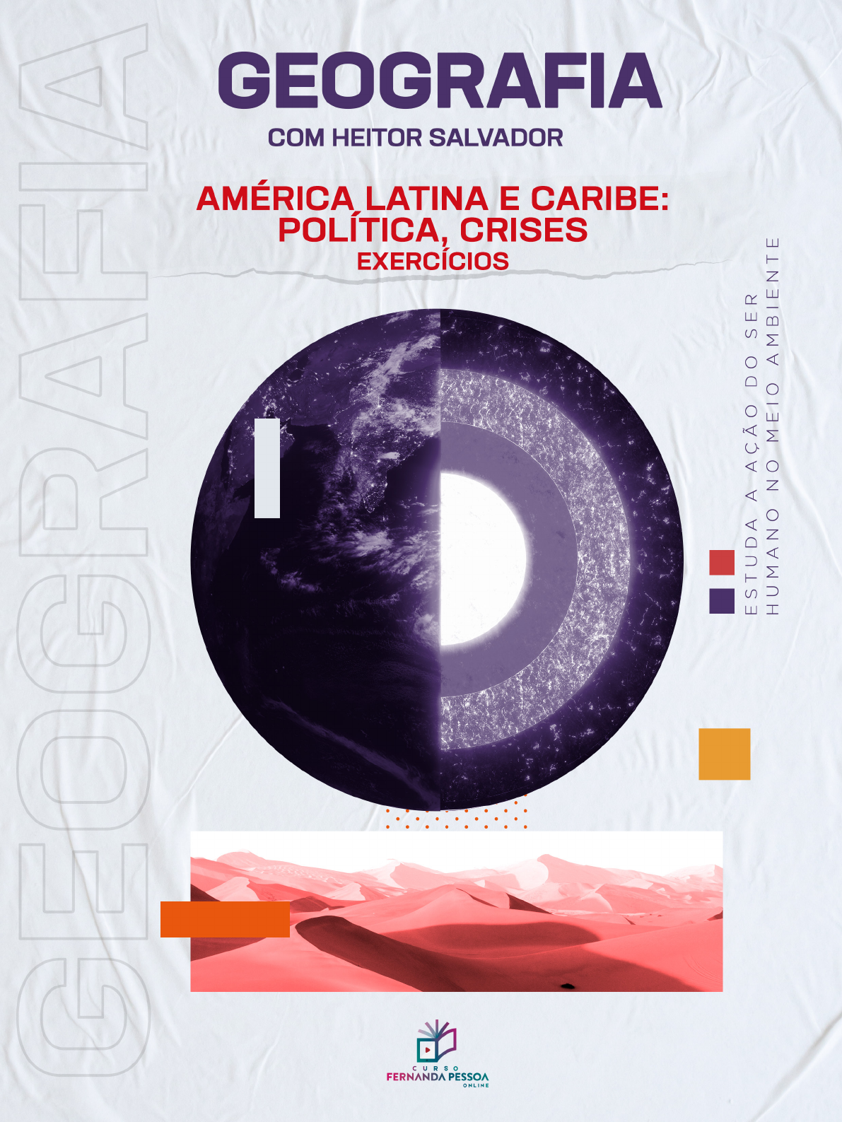 GEOGRAFIA COM HEITOR SALVADOR 1 2 GEOGRAFIA COM HEITOR SALVADOR EXERCÍCIOS 1. (Fuvest-Ete) Na América Latina, algumas novidades importantes têm sido consagradas nos âmbitos das organizações de seus países, incluindo a ampliação do caráter nacional desses Estados e a incorporação, em suas constituições, de direitos diversos, como os dos povos originários (tradicionais e indígenas), e os da natureza e de seus componentes, rios, montanhas etc., que passam a ser vistos e respeitados, em alguns casos, como "seres vivos". Dentre as alternativas a seguir, qual delas expressa mais corretamente a consagração dessas novidades entre os países da região? a) Nas constituições mais recentemente promulgadas em países como o Brasil (1988), Bolívia (2008) e Equador (2009), por exemplo, há capítulos e artigos que são internacionalmente reconhecidos como sendo dos mais avançados na incorporação dessas preocupações e novidades. b) Nicarágua (América Central), Venezuela (América do Sul) e Cuba (Caribe), por serem países cujos ordenamentos socioeconômicos organizam-se segundo o modo de produção socialista, em sociedades igualitárias, não distinguem direitos entre povos originários e não originários em suas constituições. c) Com exceção do Brasil, nos demais países da América Latina, não há alterações recentes no âmbito desses temas, relacionados aos direitos da natureza ou de povos originários, uma vez que nestes há outras prioridades relacionadas às condições de pobreza e de subdesenvolvimento que caracterizam suas sociedades. d) A recente definição dos Estados equatoriano e boliviano como Estados Plurinacionais, promulgada nas suas constituições de 2009 e 2008, respectivamente, embora tenha muita importância para a geopolítica internacional, guarda pouca relação com o tema. e) As novidades consideradas na questão são melhor exemplificadas quando se destacam, dentre os países da América Latina, aqueles países que, juntamente com o Brasil, podem ser considerados os mais desenvolvidos da América do Sul: Chile, Uruguai e Argentina. 2. (Unicamp) Na economia do Chile, entre outros aspectos, destacam-se as indústrias vitivinícola, agrícola, pesqueira e mineira. Houve um ciclo muito forte de exportação de matérias-primas que produziu um grande crescimento econômico, no chamado “milagre chileno”, a partir dos anos 1980. Segundo o Banco Mundial, o paradoxo foi o aumento brutal da desigualdade. As consequências surgiram em 2019, com protestos sociais que culminaram com uma Assembleia Constituinte para rever a Constituição vigente, ainda um resquício do período da ditadura. (Adaptado de https://brasil.elpais.com/internacional/2021-07-04/ chile-iniciaum-novo-ciclo-e-comeca-a-redigir-a-constituicao-que- substituira-a-de-pinochet.html. Acessado em 03/07/2021.) Sobre a formação socioespacial chilena, é correto afirmar que a) pratica a vitivinicultura na Patagônia, extrai bauxita no Atacama, conta com uma economia bastante centrada no Estado e as privatizações foram generalizadas. b) extrai cobre da Patagônia, pratica a salmonicultura no Atacama, conta com uma economia bastante centrada no mercado e as privatizações só atingiram o setor do petróleo. c) pratica a carcinicultura na Patagônia, extrai ouro do Atacama, conta com uma economia centrada nas empresas estatais e as privatizações foram inexistentes. d) extrai cobre do Atacama, pratica a salmonicultura na Patagônia, conta com uma economia bastante centrada no mercado e as privatizações foram generalizadas. 3. (Unesp) Examine o mapa. GEOGRAFIA COM HEITOR SALVADOR 3 Considerando a iniciativa de doze países sul- americanos de promoção do desenvolvimento de infraestruturas de transporte, energia e comunicação, o destaque indicado com X na legenda do mapa corresponde a a) corredores bioceânicos de interligações estratégicas. b) eixos transfronteiriços de preservação ecológica. c) linhas de transmissão de eletricidade interconectadas. d) fluxos de expansão do mercado de divisas. e) redes de influência de grandes centros urbanos. 4. (UERJ) Piñera pede “perdão” e anuncia medidas para conter protestos no Chile O presidente chileno, Sebastián Piñera, prometeu aumentar a aposentadoria, melhorar o atendimento de saúde e aplicar impostos aos que ganham mais, uma tentativa de acalmar uma onda de distúrbios e protestos contra a desigualdade que vem sacudindo um dos países mais estáveis da América Latina. Entre as medidas anunciadas, está o aumento imediato das pensões e elevações adicionais dentro de dois anos, assim como melhorias nas aposentadorias da classe média, das mulheres e de idosos deficientes. O presidente propôs ainda a criação de seguros para conter os gastos de saúde das famílias, um aumento de 16% no salário mínimo e um mecanismo para frear a alta recente das tarifas elétricas. NATALIA MIRANDA E FABIÁN CAMBERO Adaptado de noticias.uol.com.br, 23/10/2019. As medidas anunciadas pelo presidente chileno para conter os intensos e duradouros protestos de 2019 apontam para um programa de reconfiguração do país baseado na ampliação da: a) proteção social estatal b) política econômica liberal c) atividade empresarial do governo d) dimensão clientelista do caudilhismo 5. (Unicamp) O chamado Triângulo Norte da América Central (TNAC) é uma das regiões mais violentas do planeta, equiparando-se às zonas de guerra. Grupos organizados praticam diariamente extorsão, perseguição, sequestros, assassinatos, abuso sexual, entre outros crimes. Em 2018, sob condições extremas de pobreza e violência, sem escolha, milhares de pessoas do TNAC abandonaram suas casas, deslocando- se por perigosas rotas em direção ao México e aos EUA. Considerando essa situação geográfica, indique os países que compõem a região do TNAC e a atual estratégia adotada pela população emigrante. a) Venezuela, Costa Rica, Nicarágua; pequeno