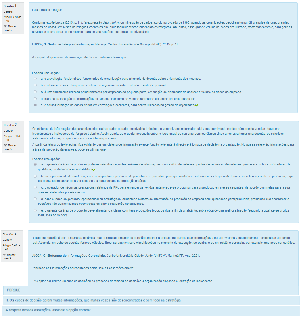 AVALIAÇÃO DE SISTEMAS DE INFORMAÇÕES GERENCIAIS