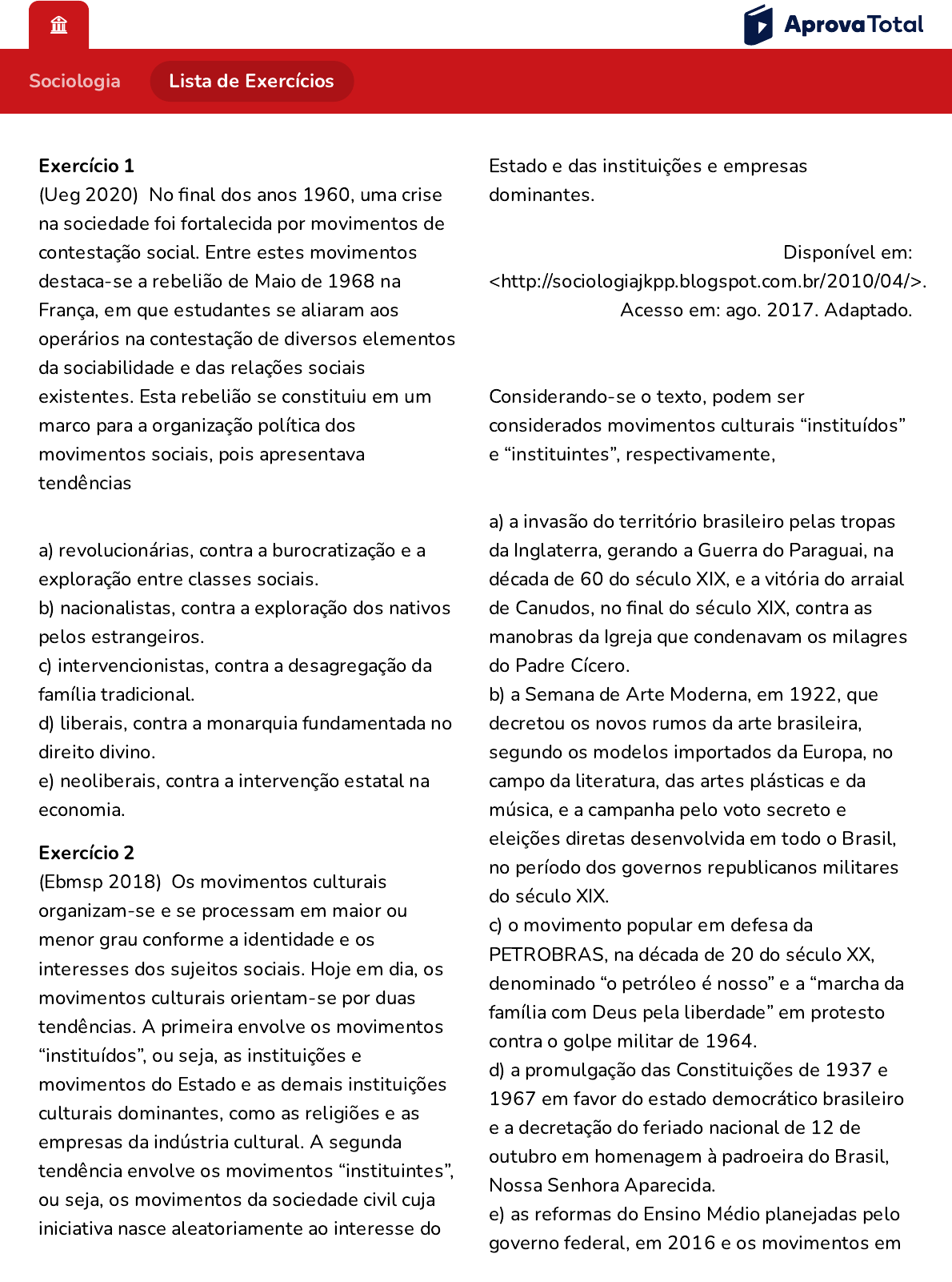 https://aprovatotal.com.br/medio/sociologia/exercicios/movimentos-sociais/ex.1-movimentos-sociais?dificuldade=random&tentativa=ultima&respostas=todas 2/37