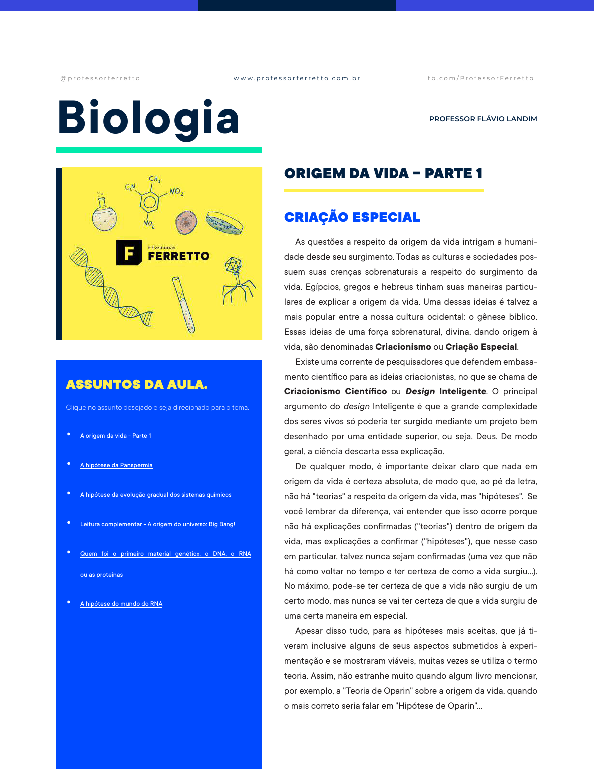 É importante que se perceba que as ideias mais aceitas atualmente sobre a origem da vida, como a hipótese de Oparin,