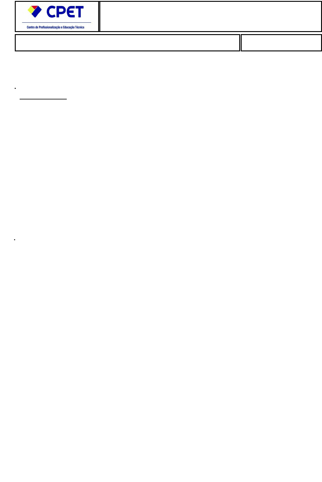 Introdução ao AutoCAD2D-rd Aluno(a Augusto Rodrigues Horta Data: 04/02/24 Atividade Prática Final INSTRUÇÕES: · Esta Atividade contém questões totalizando 10 (dez) pontos; · Você deve preencher dos dados no Cabeçalho para sua identificação: · Nome / Data de entrega. · Aqui estão as informações sobre o formato de envio de respostas para a atividade: · Parte digitada: Word ou PDF – (Vl.2,0 pontos) · Projeto: DWG (4,0 pontos dividido entre 2 questões) · Vídeo: MP4 (Vl.4,0 pontos) · Aqui estão os itens incluídos no vídeo: os itens do vídeo devem ser narrados com a voz do aluno (a) · Seu nome · A data da atividade · Seu curso · Três comandos usados para criar seu projeto · Certifique-se de fazer o upload dos arquivos nos formatos especificados. Se o aluno(a) fizer upload de arquivos em outros formatos, eles não serão avaliados. · O programa indicado para compactar as respostas é o WinRAR · Envio o arquivo pelo sistema no local indicado; · Em caso de dúvidas consulte o seu Tutor. Atividade Prática Final – Autocad Nome do aluno: ): Augusto Rodrigues Horta CPF 08699999666 1. Cite onde podemos utilizar o autocad? Engenharia civil, desenhar plantas de edifícios, estruturas, sistemas hidráulicos e elétricos, entre outros projetos. Arquitetura, criar plantas de casas, prédios, projetos de paisagismo, entre outros. Engenharia mecânica, projetar peças e máquinas, sistemas de produção e fabricação. Design de interiores, criar projetos de ambientes internos, móveis, objetos decorativos. Design gráfico, para criar layouts, logotipos, ilustrações e outros elementos visuais. Topografia, desenhar mapas, traçar curvas de nível, elaborar projetos de estradas e ferrovias. Enfim, são apenas algumas das áreas em que o AutoCAD pode ser utilizado. 2. Uma linha feita no autocad tem 85 unidades de comprimento e forma um ângulo de 30° com a horizontal sabendo que a componente horizontal é o cateto adjacente ao ângulo que a reta forma com a horizontal e a componente vertical é o cateto oposto a esse ângulo, quais são as medidas das componentes dessa linha. 3. Vamos retirar os dados do problema e fazer algumas considerações: Como podemos ver, a linha desenhada é a hipotenusa de um triângulo retângulo, e queremos encontrar os outros dois catetos. Envie o arquivo do projeto salvo em .DWG para avaliação: (vl. 2,0 pontos). Vamos usar metros como unidades de comprimento. a = 85 m θ = 30º Primeiramente, vamos encontrar o cateto adjacente c: cos θ = c / a cos 30º = c / 85 0,866 . 85 = c 73,61 m = c Agora, iremos encontrar o cateto oposto b: sen θ = b / a cos 30º = b / 85 0,5 . 85 = b 42,5 m = b 4. Qual é a função do comando starmode0? Especificar um ponto inicial. 5. Como se alterna entre as visualizações no autocad? Guia "Visualizar" na barra de ferramentas superior e escolha a visualização desejada a partir das opções disponíveis. Alternar entre visualização "Modelo" e visualização "Layout", pressione as teclas "Ctrl" + "Tab". Digite "VPORTS" na linha de comando (Enter)". Abrirá o Gerenciador de portas de exibição, onde você pode escolher a visualização. Ícone "M" visualiza "Modelo" e o ícone "P" visualização "Layout". Clique no ícone correspondente para alternar entre eles. Menu suspenso "Visualizar" na barra de status inferior. Seta para baixo ao lado da opção "Visualizar" para escolher a visualização desejada. 6. Em qual guia está o comando ocultar no autocad? Na paleta Propriedades, clique em Plotagem sombreada. Na lista suspensa aplicar cor à plotagem, selecione Oculto. Clique em OK para plotar o desenho. 7. Com uso do seu conhecimento do Capítulo 03 do curso de autocad, desenvolva um vídeo do seu desenvolvimento da figura abaixo Envie o arquivo do projeto salvo em .DWG para avaliação: (vl. 4,0 pontos). 8. Como foi visto no capítulo 02 do curso e utilizando dos seus conhecimentos, desenvolva no autocad um CUBO como à figura abaixo. Sem cores, somente a sua forma geométrica. Envie o arquivo do projeto salvo em .DWG para avaliação: (vl. 2,0 pontos). ENTREGA DO TRABALHO – LEIA COM ATENÇÃO 1 . Aqui estão as informações sobre o formato de envio de respostas para a atividade: · Parte digitada: Word ou PDF – (Vl.2,0 pontos) · Projeto: DWG (4,0 pontos dividido entre 2 questões) · Vídeo: MP4 (Vl.4,0 pontos) 2 . Aqui estão os itens incluídos no vídeo: os itens do vídeo devem ser narrados com a voz do aluno (a) · Seu nome · A data da atividade · Seu curso · Três comandos usados para criar seu projeto 3. Certifique-se de fazer o upload dos arquivos nos formatos especificados. Se o aluno(a) fizer upload de arquivos em outros formatos, eles não serão avaliados. 4. O programa indicado para compactar as respostas é o WinRAR Atividade Prática Atividade Prática