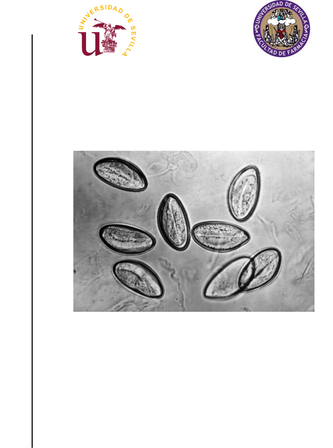 ENTEROBIASIS Trabajo Fin de Grado. Cristina Ana Ayllón Llamas. Grado en Farmacia. Departamento de Microbiología y Parasitología. Facultad de Farmacia. Universidad de Sevilla. 1 Título del Trabajo: “ENTEROBIASIS” Autor/a: Cristina Ana Ayllón Llamas. Lugar y fecha de presentación: Facultad de Farmacia (Aula multimedia). 8 de Julio 2016. Departamento: Microbiología y Parasitología. Facultad de Farmacia. Tutor/a: Rocío Callejón Fernández. Tipología del proyecto: TFG de carácter bibliográfico. UNIVERSIDAD DE SEVILLA Facultad de Farmacia Grado en Farmacia TRABAJO FIN DE GRADO Trabajo Fin de Grado Enterobiasis Cristina Ana Ayllón Llamas 2 RESUMEN Introducción: La enterobiasis es un parasitismo producido por un nematodo denominado Enterobius vermicularis. La distribución del parásito es cosmopolita y es un parasitismo típico de la edad infantil. La hembra realiza una migración nocturna desde el ciego hasta el ano, donde realiza la puesta de huevos. La vía de transmisión más usual suele ser ano-mano-boca. Objetivos: Conocer el estado actual del parasitismo y las medidas preventivas que permitan reducir la población afectada. Metodología: Se ha recurrido a bases de datos, libros, recursos electrónicos y profesionales sanitarios con el fin de obtener información de calidad, útil y fiable. Resultados y discusión: Existen pocos estudios sobre enterobiasis a consecuencia de que los síntomas que produce son considerados banales (prurito anal). Los estudios se centran en zonas de América, Asia, Europa o África y el método de diagnóstico consiste en la identificación de huevos (Método de Graham). En América se estima que 42 millones de personas están parasitadas y que la incidencia de enterobiasis es de un 11,4%. En Asia las infecciones parasitarias han disminuido en los últimos años, mientras que los casos de enterobiasis han aumentado cerca de un 10%. En África existen otros parásitos más prevalentes, en cambio en España es el helminto aislado con mayor frecuencia. Se han descrito casos de manifestaciones extraintestinales (vagina, ojo, etc.), aunque no suele ser lo frecuente. Los fármacos utilizados como tratamiento (Mebendazol, Albendazol, etc.) son dispensados sin necesidad de prescripción médica permitiendo poder tratar el parasitismo a nivel intradomiciliario, pudiendo favorecer un aumento de las resistencias. Conclusiones: La enterobiasis es un parasitismo muy frecuente a nivel mundial y durante la niñez, se estima que más de 200 millones de personas están infectadas. El método más efectivo para evitar su transmisión consiste en aportar una educación sanitaria de calidad que mejore los hábitos higiénico-sanitarios. Palabras clave: Enterobiasis, Enterobius vermicularis, Mebendazol, Graham Trabajo Fin de Grado Enterobiasis Cristina Ana Ayllón Llamas 3 ÍNDICE 1. INTRODUCCIÓN Pág. 4 1.1. Generalidades Pág. 4 1.2. Enterobius vermicularis Pág. 5 1.2.1. Historia y descubrimiento 1.2.2. Morfología 1.2.3. Ciclo Biológico 1.3. Epidemiología Pág. 9 1.4. Patología y sintomatología Pág. 10 1.5. Diagnóstico Pág. 10 1.5.1. Análisis coprológico parasitario 1.5.2. Método de Graham 1.6. Tratamiento Pág. 11 1.6.1. Eliminación del oxiuro 1.6.2. Control de los huevos 1.7. Profilaxis Pág. 13 2. OBJETIVOS Pág. 14 3. METODOLOGÍA Pág. 15 4. RESULTADOS Y DISCUSIÓN Pág. 16 4.1. Situación actual de la Enterobiasis Pág. 16 4.1.1. AMÉRICA 4.1.2. ÁFRICA 4.1.3. ASIA 4.1.4. EUROPA 4.2. Situación de la Enterobiasis en España Pág. 28 4.3. Estudio de la Enterobiasis en Sevilla (Aljarafe) Pág. 31 5. CONCLUSIONES Pág. 35 6. BIBLIOGRAFÍA Pág. 36 7. AGRADECIMIENTOS Pág. 39 Trabajo Fin de Grado Enterobiasis Cristina Ana Ayllón Llamas 4 1. INTRODUCCIÓN Las enfermedades parasitarias ocupan actualmente una posición importante debido al alto índice de personas que las padecen. Representan un problema serio de salud según la OMS (Organización mundial de la salud), en especial en países en vías de desarrollo y en los situados en las zonas tropicales o subtropicales tanto de áreas rurales como urbanas, debido principalmente a la ausencia de medidas sanitarias básicas. Afectan principalmente a la población infantil, y son producidas por parásitos cuyo hábitat es el aparato digestivo y cuyos agentes pueden entrar al organismo por vía oral o por la piel expuesta a suelos contaminados. Estas parasitosis suelen ser causa de enfermedades debilitantes, agudas y crónicas e incluso en ocasiones mortales cuando existen deficiencias inmunitarias del huésped en cuanto a su estado nutricional (Cervantes y cols., 2012). Esta revisión se centra en estudiar un parasitismo intestinal muy frecuente en la actualidad: La Enterobiasis. 1.1. Generalidades Las parasitosis intestinales suelen ser ocasionadas por dos grandes grupos de parásitos: protozoos y helmintos. La enterobiasis (también conocida como Oxiuriasis) es una de las enfermedades más comunes producidas por helmintos, sobre todo durante la niñez y es producida por el parásito Enterobius vermicularis (Rodríguez y Contreras, 2015). E. vermicularis pertenece al Phylum Nematoda, el cual se caracteriza por su tamaño pudiendo variar desde aproximadamente unos cuantos milímetros hasta más de 8 metros. Sus miembros parasitan desde vertebrados, invertebrados, plantas, etc. y además existen numerosas especies de vida libre. Los nematodos que parasitan vertebrados se encuentran prácticamente en cualquier órgano, aunque la mayoría se encuentran asociados al tubo digestivo y glándulas anexas. La superficie corporal está cubierta por una cutícula proteica, que brinda protección y contribuye al movimiento del nematodo. Igualmente la carencia de musculatura circular confiere el movimiento ondulatorio propio del grupo (García y cols., 2014). Dentro de este Phylum Nematoda se incluyen dos órdenes (Orden Ascaridida y Orden Oxyurida). E. vermicularis pertenece al Orden Oxyurida (Familia Oxyur