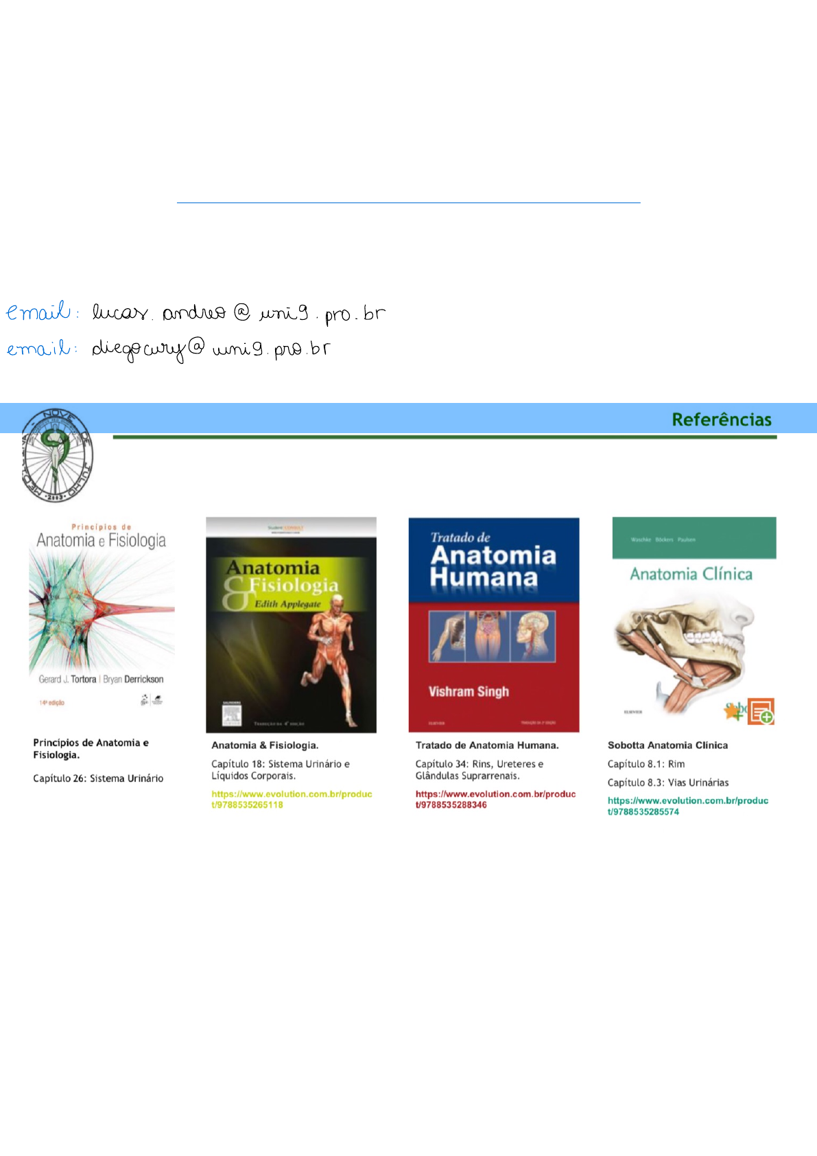 10/02/2021 Prof. Lucas Anatomia Geral do Sistema Urinário email : lucas . andreo@uni9.pro.br email : diegocury@wni9.pro.br → Pois sai para fora do corpo . → doping para ter + ghob . vermelhos (2) (2) (1) (1) → Rim - é retroperitonial , ou seja , não está revestido inteiramente por peritônio , só uma parte . → Rim do bebê - diferente do adulto , menor desenvolvido . onde chegam vários canais → cápsulas - deixam o rim no lugar dele . Corte coronal / pontual ↳ Nervo vago - parassimpático . saiu vaiMÃO ✓ geomérueo mais baixo do rosto por pegado O rim sobe no desenvolvimento e por isso pode ter variação anatômica 14 cm) ( 18 cm) → Reflexo involuntário - Estereotipada (todo mundo faz igual) / Função da uretra _ liberar urina e nos homens liberar somem