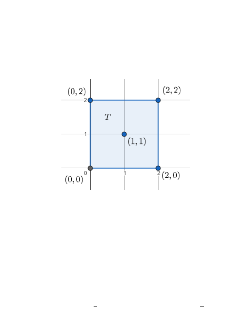 na região T = {(x, y) ∈ R : |x− 1| ≤ 1 e |y − 1| ≤ 1}.