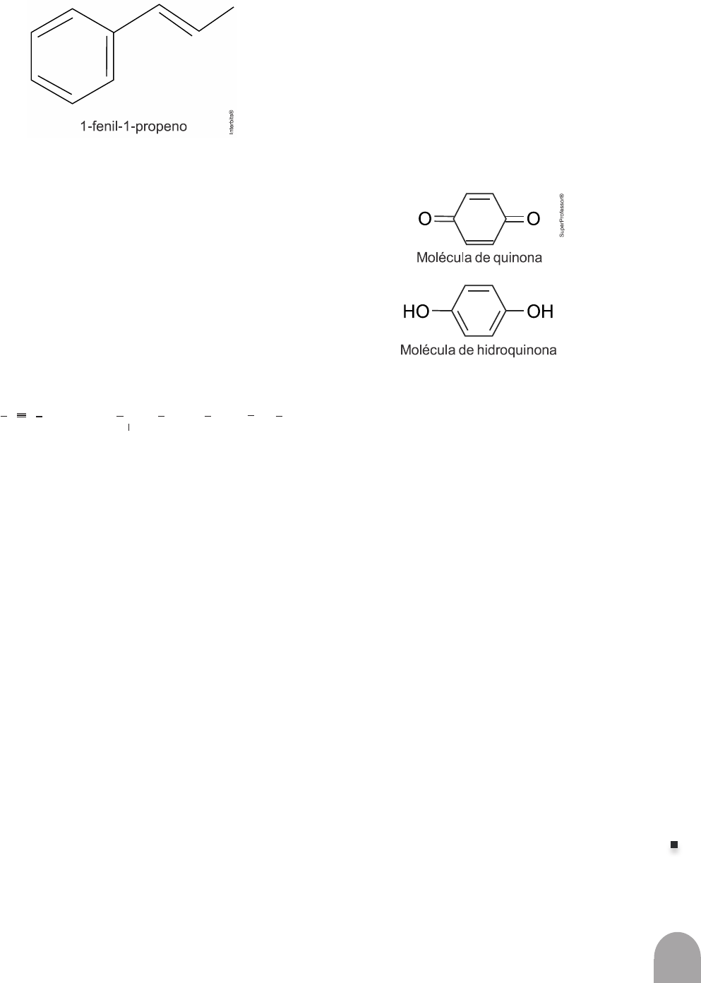 565 VO LU M E 4 C IÊ N CI A S DA N AT U RE ZA e s ua s te cn ol og ia s ilustrado na figura, o (KMnO4 ) é utilizado para a produção de ácidos carboxílicos. Os produtos obtidos na oxidação do alceno repre- sentado, em solução aquosa de KMnO4 , são: a) Ácido benzoico e ácido etanoico. b) Ácido benzoico e ácido propanoico. c) Ácido etanoico e ácido 2-feniletanoico. d) Ácido 2-feniletanoico e ácido metanoico. e) Ácido 2-feniletanoico e ácido propanoico. 13. (Unesp) Um dos métodos de obtenção de cetonas em labo- ratório consiste na hidratação catalítica de alcinos, representada genericamente por: R C C R’ + HOH ⟶ R C OH = CH R’ ⟶ R (C = O) CH2 R’ Para que a cetona formada nessa reação seja a ace- tona, R e R’ devem ser, respectivamente, a) H e H b) C2H5 e C3H7 c) CH3 e C2H5 d) CH3 e H e) CH3 e CH3 14. (Pucgo Medicina) Leia o fragmento de texto a seguir sobre o besouro- -bombardeiro e as reações de oxidação: Todo mundo tem aquele amigo com o “peido mata- dor”. Na natureza, o equivalente a ele é o besouro bombardeiro (Brachynus crepitans). Só que o que ele expele é realmente fatal. Quando perseguido por um predador, ele solta um jato líquido tóxico e escal- dante… pelo traseiro. O “pum” do besouro só é produzido quando ele precisa, em situações de perigo. No abdômen do bichinho, duas glândulas estocam dois ingredien- tes: hidroquinona e peróxido de hidrogênio. Até aí apenas substâncias químicas inofensivas. Para evitar acidentes, essas glândulas são naturalmente revesti- das com amianto, um isolante químico. (Disponível em: https://super.abril.com.br/ciencia/ besouro-usa-pum-mortal-para-se-defender-de-predadores/ Acesso em: 18 ago. 2022. Adaptado.) O “pum” do besouro, resultado da reação de oxida- ção entre hidroquinona e peróxido de hidrogênio, é a liberação da quinona. A substância é produzida rapidamente nesta situação, com a ajuda de alguns catalisadores enzimáticos. Para a resolução desta questão, considere os dados a seguir: Dados: Analise as alternativas a seguir e marque a única em que, tal como a produção da quinona a partir de hidroquinona e peroxido de hidrogênio, há apenas reações de oxidação: a) Reação do ácido fórmico para metanal; reação do eteno com permanganato de potássio diluído para etano-1,2-diol, e reação do etanol para etanal em presença de dicromato de potássio e ácido sulfúrico. b) Reação do ácido fórmico para metanal; reação do etano-1,2-diol com permanganato de potássio dilu- ído para eteno, e reação do etanol para etanal em presença de dicromato de potássio e ácido sulfúrico. c) Reação do metanal para ácido fórmico; reação do etano-1,2-diol com permanganato de potássio dilu- ído para eteno, e reação do etanal para etanol em presença de dicromato de potássio e ácido sulfúrico. d) Reação do metanal para ácido fórmico; reação do eteno com permanganato de potássio diluído para etano-1,2-diol, e reação do etanol para etanal em presença de dicromato de potássio e ácido sulfúrico. 15. (Uerj) Dois alcoóis isômeros de fórmula molecular C5H12O e com cadeia carbônica normal, quando desidratados em condições adequadas, formam em maior propor- ção um mesmo composto X. O composto X, quando oxidado com uma solução de permanganato de potássio aquecida e acidulada, forma os compostos Y e Z. 566 VO LU M E 4 C IÊ N CI A S DA N AT U RE ZA e s ua s te cn ol og ia s Identifique o tipo de isomeria plana existente nos dois alcoóis e cite o nome oficial do composto de maior caráter ácido produzido na oxidação de X. 16. (Ufal) Escreva de maneira sequencial, a fórmula dos com- postos que podem ser obtidos pela oxidação grada- tiva dos compostos representados por: a) CH3CH2CH(OH)CH3 b) CH3CH=CH2 17. (Uerj) Os alcenos, ao sofrerem reação de oxidação enérgica com solução de permanganato de potássio, aque- cida e acidulada, produzem diferentes compostos de carbono, como gás carbônico, cetonas e ácidos carboxílicos. Analisando os produtos dessa reação, pode-se identificar o alceno reagente e determinar a posição de sua insaturação. Considere que a oxidação de 3,50 g de um alceno tenha produzido uma cetona e 1,12 L de gás carbô- nico, medidos nas CNTP. Em relação ao alceno reagente, a) classifique seus átomos de carbono insaturados como primário, secundário ou terciário; b) apresente sua fórmula estrutural plana e indique o nome oficial do aldeído de cadeia normal isômero da cetona produzida. 18. (Fuvest) O pineno é um composto insaturado volátil que existe sob a forma de dois isômeros, o alfa-pineno e o beta-pineno. Em um laboratório, havia uma amostra de pineno, mas sem que se soubesse se o composto era o alfa- -pineno ou o beta-pineno. Para resolver esse pro- blema, um químico decidiu tratar a amostra com ozônio, pois a posição de duplas ligações em alcenos pode ser determinada pela análise dos produtos de reação desses alcenos com ozônio, como exempli- ficado nas reações para os isômeros de posição do 3-metil-octeno. O químico observou então que a ozonólise da amos- tra de pineno resultou em apenas um composto como produto. a) Esclareça se a amostra que havia no laboratório era do alfa-pineno ou do beta-pineno. Explique seu raciocínio. b) Mostre a fórmula estrutural do composto formado. 19. (Fuvest) Dois tipos de reação, bastante utilizados na síntese e transformação de moléculas orgânicas, são: - Ozonólise: reação química em que cada carbono da ligação dupla de um composto orgânico forma uma ligação dupla com oxigênio, como exemplificado: - Condensação aldólica: reação química em que dois compostos carbonílicos se unem e perdem água, formando um novo composto carbonílico com uma ligação dupla adjacente ao grupo carbonila, como exemplificado: Em 1978, esses dois tipos de reação foram utilizados na síntese do hormônio progestero