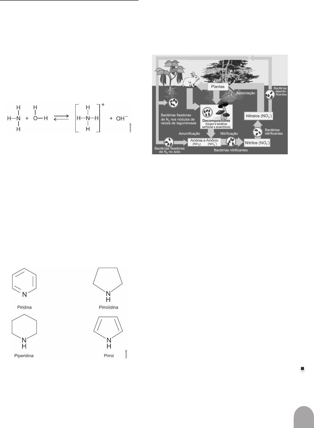 619 VO LU M E 4 C IÊ N CI A S DA N AT U RE ZA e s ua s te cn ol og ia s estudo indiVidualizado (e.i.) 1. (Fmp) A teoria ácido-base de Arrhenius diz que o ácido libera somente o hidrogênio como cátion na água, e a base libera a hidroxila como ânion. Porém, sem contrariar a teoria de Arrhenius, novas teorias sur- giram, como, por exemplo, os conceitos modernos de Brönsted-Lowry e de Lewis, que vieram para complementar a teoria de Arrhenius. Sejam as reações a seguir: HSO-4 + H2O ⇄ H3O + + SO2-4 Segundo os conceitos modernos de ácido-base, alguns dos ácidos que aparecem nas reações acima são: a) NH3, H2O, OH - b) NH+4 ,NH3, SO 2- 4 c) H2O, NH + 4, SO 2- 4 d) HSO-4, NH3, OH - e) HSO-4, NH + 4, H3O + 2. (Acafe) Para responder a(s) questão(ões) considere as fórmulas estruturais e suas respectivas constantes de basicidades de quatro aminas cíclicas fornecidas abaixo. Dados: Piridina : Kb = 1,8 . 10-9, Pirrolidina: Kb = 1,9 . 10-3, Piperidina: Kb = 1,3 . 10-3 e Pirrol: Kb<10-10. Considerando o caráter ácido-base das espécies quí- micas citadas anteriormente, podem ser classifica- das como base de Bronsted-Lowry: a) apenas piridina e pirrol. b) apenas piperidina, pirrolidina e pirrol. c) piridina, piperidina, pirrolidina e pirrol. d) apenas piridina. 3. (Enem) O esquema representa o ciclo do nitrogênio: A chuva ácida interfere no ciclo do nitrogênio, prin- cipalmente, por proporcionar uma diminuição do pH do solo e da atmosfera, alterando a concentração dos compostos presentes nesse ciclo. Disponível em: http://scienceprojectideasforkids.com. Acesso em: 6 ago. 2012 (adaptado). Em um solo de menor pH, será favorecida a forma- ção de: a) N2 b) NH3 c) NH+4 d) NO-2 e) NO-3 4. (Pucgo Medicina 2023) Leia o texto a seguir sobre substâncias fenólicas: Substâncias fenólicas são aquelas derivadas de hidrocarbonetos aromáticos pela substituição de um ou mais átomos de hidrogênio por igual número de hidroxilas [...]. Podem ser classificadas como fenóis simples e fenóis compostos [...]. Diversas proprie- dades medicinais de plantas são atribuídas a essa classe de substâncias [...]. [...] O cloreto férrico é comumente utilizado em testes laboratoriais para detectar a presença de substân- cias fenólicas em extratos vegetais [...]. Trata-se de 620 VO LU M E 4 C IÊ N CI A S DA N AT U RE ZA e s ua s te cn ol og ia s um sal inorgânico cristalino de cor amarela, formado pelo cátion férrico e o ânion cloreto. [...] Algumas das principais características dos fenóis que os distinguem de outros compostos que contêm a hidroxila ligada diretamente na cadeia orgânica, como os álcoois, são sua acidez e solubilidade em água. Em meio aquoso, a carga negativa do íon fenó- xido é estabilizada por solvatação e pela deslocaliza- ção do elétron no anel aromático [...], o que pode ser representado por suas estruturas de ressonância [...]. (Disponível em: http://qnesc.sbq.org.br/online/prelo/ EEQ-105-20. pdf. Acesso em: 18 ago. 2022. Adaptado.) Considerando as informações apresentadas, analise os itens a seguir: I. O cloreto férrico se comporta como um ácido de Lewis. Assim, ele pode acomodar pares de elétrons. II. O fenol tem caráter ácido; no entanto, também atua como base de Lewis, pois possui pares de elétrons disponíveis para compartilhar. III. O íon fenóxido proveniente do fenol possui quatro estruturas de ressonância. IV. A solubilidade do fenol em água é explicada pelas ligações de hidrogênio formadas entre ambas subs- tâncias. Considerando os itens apresentados, assinale a alternativa correta: a) II e IV apenas. b) I, II e III apenas. c) I, II, III e IV. d) I e III apenas. 5. (Fgv) O ânion hidreto (H-) forma o hidreto de sódio (NaH), composto empregado no estudo do mecanismo de reações químicas, por ser um forte agente redutor. O íon hidreto reage violentamente com a água, formando o gás hidrogênio (H2), como representa a equação da reação: H- + H2O ⟶ OH- + H2 De acordo com as teorias ácido-base, nessa reação, a molécula de água é classificada como __________ e o íon hidreto, presente no hidreto de sódio, é classificado como __________ por ser uma espécie doadora de par de elétrons. Assinale a alternativa que preenche, respectiva- mente, as lacunas do texto. a) ácido de Arrhenius – base de Arrhenius b) base de Arrhenius – ácido de Arrhenius c) ácido de Lewis – base de Lewis d) base de Lewis – ácido de Lewis e) base de Bronsted – ácido de Bronsted 6. (UNIUBE) Uma maneira de extração do petróleo atualmente é através do pré-sal, mesmo sendo um método que produz grande poluição devido aos seus muitos deri- vados, como, por exemplo, o enxofre, o dióxido de carbono e outros gases poluentes. Acredita-se que esses fatores devem ser considerados na decisão de exploração desse tipo de petróleo, pois os benefí- cios podem significar a contramão do processo de evolução do homem. Outro fator importante é que os oceanos, além das plantas, atuam na retirada do excesso de dióxido de carbono da atmosfera em aproximadamente 30% do que é emitido no mundo anualmente, e podendo interferir na formação de corais, conchas, podendo comprometer a cadeia alimentar dos animais marinhos. O gás carbônico, quando reage com a água, pode formar os seguintes equilíbrios químicos: CO2(g) + H2O(l) → H2CO3(aq) H2CO3(aq) + H2O(l) → H3O+(aq) + HCO3–(aq) HCO3 – (aq) + H2O(l) → H3O+(aq) + CO32–(aq) Observando essas reações, é possível afirmar que: I. A água é considerada um ácido de Arrhenius ao interagir com o dióxido de carbono. II. O H2CO3 é um ácido de Bronsted e Lowry. III. O íon H3O + é um ácido conjugado, segundo Bronsted e Lowry. IV. As espécies na equação química H2CO3 e HCO3- são consideradas, respectivamente, ácido e base conju- gada, segundo Bronsted e Lowry. V. As espécies HCO3 – e CO3 2– podem ser consideradas, respectivamente, ácido e base conjug