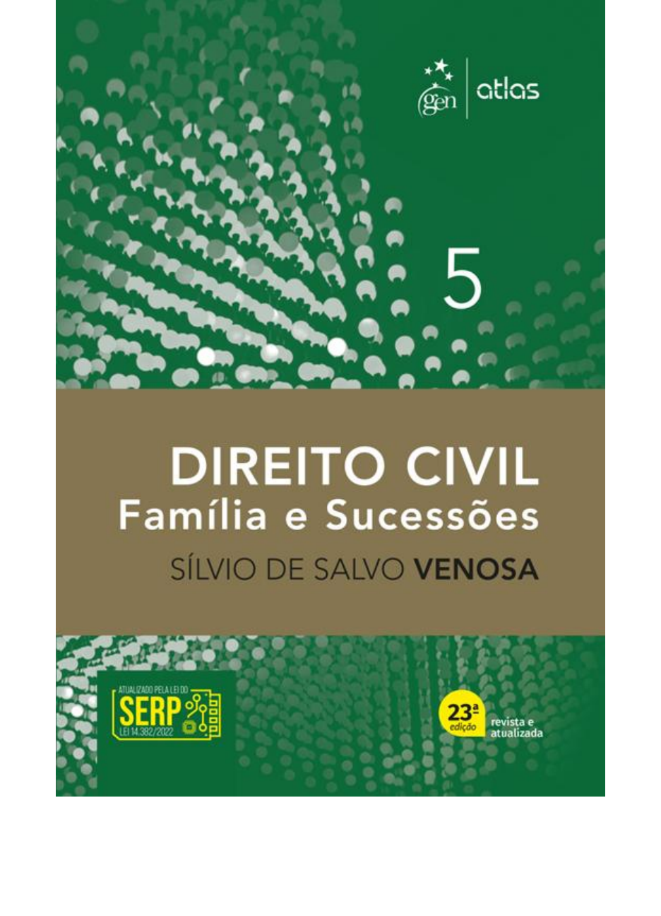 O autor deste livro e a editora empenharam seus melhores esforços para assegurar que as informações e os procedimentos apresentados no texto estejam em acordo com os padrões aceitos à época da publicação, e todos os dados foram atualizados pelo autor até a data da entrega dos originais à editora. Entretanto, tendo em conta a evolução das ciências, as atualizações legislativas, as mudanças regulamentares governamentais e o constante fluxo de novas informações sobre os temas que constam do livro, recomendamos enfaticamente que os leitores consultem sempre outras fontes fidedignas, de modo a se certificarem de que as informações contidas no texto estão corretas e de que não houve alterações nas recomendações ou na legislação regulamentadora. Fechamento desta edição: 26.01.2023 O autor e a editora se empenharam para citar adequadamente e dar o devido crédito a todos os detentores de direitos autorais de qualquer material utilizado neste livro, dispondo--se a possíveis acertos posteriores caso, inadvertida e involuntariamente, a identificação de algum deles tenha sido omitida. Atendimento ao cliente: (11) 5080-0751 | faleconosco@grupogen.com.br Direitos exclusivos para a língua portuguesa Copyright © 2023 by Editora Atlas Ltda. Uma editora integrante do GEN | Grupo Editorial Nacional Travessa do Ouvidor, 11 – Térreo e 6º andar Rio de Janeiro – RJ – 20040-040 www.grupogen.com.br mailto:faleconosco@grupogen.com.br http://www.grupogen.com.br/ Reservados todos os direitos. É proibida a duplicação ou reprodução deste volume, no todo ou em parte, em quaisquer formas ou por quaisquer meios (eletrônico, mecânico, gravação, fotocópia, distribuição pela Internet ou outros), sem permissão, por escrito, da Editora Atlas Ltda. Capa: Danilo Oliveira Produção digital: Ozone CIP – BRASIL. CATALOGAÇÃO NA FONTE. SINDICATO NACIONAL DOS EDITORES DE LIVROS, RJ. V575d v. 5 Venosa, Sílvio de Salvo, 1945- Direito civil: família e sucessões / Sílvio de Salvo Venosa. – 23. ed. – Barueri [SP]: Atlas, 2023. (Direito civil ; 5) Inclui bibliografia e índice ISBN 978-65-5977-471-5 1. Direito de família - Brasil. 2. Herança e sucessão – Brasil. I. Título. II. Série. 23-82070 CDU: 347.65(81) Meri Gleice Rodrigues de Souza – Bibliotecária – CRB-7/6439 1 1.1 1.2 1.3 1.4 1.5 1.5.1 1.6 1.7 1.7.1 2 2.1 2.2 2.3 2.3.1 2.3.2 2.3.3 2.3.4 2.3.5 2.4 SUMÁRIO Parte I Direito de Família Introdução ao Direito de Família Compreensão Lineamentos Históricos Família Contemporânea. Novos fenômenos sociais Natureza Jurídica da Família Direito de Família Características Peculiares Direito de Família no Brasil. Constituição de 1988 Estado de Família Ações de Estado Casamento e União Estável Introdução. Justificação do Presente Título Lineamentos Históricos Casamento no Direito Brasileiro. Conceito Natureza Jurídica do Casamento Características do Casamento. Finalidades. Pressupostos Casamento Civil e Religioso Esponsais: Promessa de Casamento Corretagem Matrimonial União de Fato. União Estável. Concubinato https://jigsaw.vitalsource.com/books/9786559774715/epub/OEBPS/Text/08_part01.xhtml https://jigsaw.vitalsource.com/books/9786559774715/epub/OEBPS/Text/09_chapter01.xhtml https://jigsaw.vitalsource.com/books/9786559774715/epub/OEBPS/Text/09_chapter01.xhtml#ch1-1 https://jigsaw.vitalsource.com/books/9786559774715/epub/OEBPS/Text/09_chapter01.xhtml#ch1-2 https://jigsaw.vitalsource.com/books/9786559774715/epub/OEBPS/Text/09_chapter01.xhtml#ch1-3 https://jigsaw.vitalsource.com/books/9786559774715/epub/OEBPS/Text/09_chapter01.xhtml#ch1-4 https://jigsaw.vitalsource.com/books/9786559774715/epub/OEBPS/Text/09_chapter01.xhtml#ch1-5 https://jigsaw.vitalsource.com/books/9786559774715/epub/OEBPS/Text/09_chapter01.xhtml#ch1-5-1 https://jigsaw.vitalsource.com/books/9786559774715/epub/OEBPS/Text/09_chapter01.xhtml#ch1-6 https://jigsaw.vitalsource.com/books/9786559774715/epub/OEBPS/Text/09_chapter01.xhtml#ch1-7 https://jigsaw.vitalsource.com/books/9786559774715/epub/OEBPS/Text/09_chapter01.xhtml#ch1-7-1 https://jigsaw.vitalsource.com/books/9786559774715/epub/OEBPS/Text/10_chapter02.xhtml https://jigsaw.vitalsource.com/books/9786559774715/epub/OEBPS/Text/10_chapter02.xhtml#ch2-1 https://jigsaw.vitalsource.com/books/9786559774715/epub/OEBPS/Text/10_chapter02.xhtml#ch2-2 https://jigsaw.vitalsource.com/books/9786559774715/epub/OEBPS/Text/10_chapter02.xhtml#ch2-3 https://jigsaw.vitalsource.com/books/9786559774715/epub/OEBPS/Text/10_chapter02.xhtml#ch2-3-1 https://jigsaw.vitalsource.com/books/9786559774715/epub/OEBPS/Text/10_chapter02.xhtml#ch2-3-2 https://jigsaw.vitalsource.com/books/9786559774715/epub/OEBPS/Text/10_chapter02.xhtml#ch2-3-3 https://jigsaw.vitalsource.com/books/9786559774715/epub/OEBPS/Text/10_chapter02.xhtml#ch2-3-4 https://jigsaw.vitalsource.com/books/9786559774715/epub/OEBPS/Text/10_chapter02.xhtml#ch2-3-5 https://jigsaw.vitalsource.com/books/9786559774715/epub/OEBPS/Text/10_chapter02.xhtml#ch2-4 2.4.1 2.4.2 2.5 3 3.1 3.2 3.3 3.4 3.4.1 4 4.1 4.2 4.3 4.4 4.5 4.6 5 5.1 5.2 5.2.1 5.2.2 5.3 5.4 Natureza Jurídica da União Estável. Conceito e Compreensão. Elementos Constitutivos União Estável e Casamento. Aspectos Legais da União Estável Mosaico Familiar Formalidades Preliminares. Habilitação para o Casamento Lineamentos Históricos Habilitação Suprimento do Consentimento Procedimento de Habilitação Dispensa de Proclamas Impedimentos Matrimoniais. Causas de Anulação e Causas Suspensivas Legitimação e Capacidade para o Casamento Aspectos Gerais dos Impedimentos Impedimentos no Código de 2002 Casamento Anulável. Impedimentos Relativos Causas Suspensivas Oposição de Impedimentos Celebração e Prova do Casamento Ritos Matrimoniais Cerimônia do Casamento Suspensão da Cerimônia Casamento perante Autoridade Diplomática Casamento por Procuração Casamento sob Moléstia Grave. Casamento Nuncupativo https://jigsaw.vitalsour
