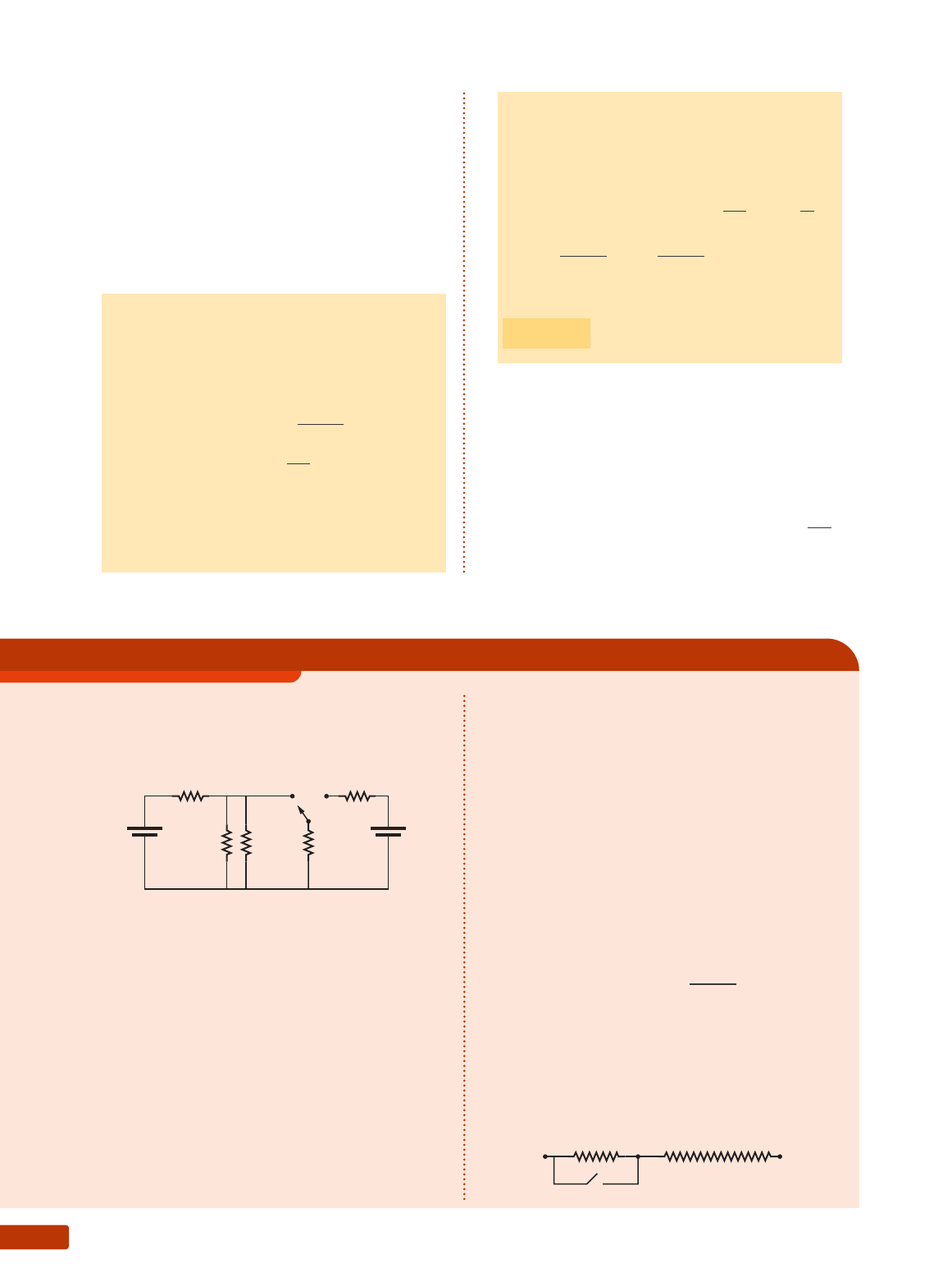 Capítulo 7134 ΔE = Q P ∙ Δt = m ∙ L 1 + m ∙ c ∙ Δθ Sendo: P = 40 W; m = 100 g; L 1 = 80 cal g = 320 J g ; c = 1,0 cal g · °C = 4,0 J g · °C ; Δθ = 10 ºC, vem: 40 ∙ Δt = 100 ∙ 320 + 100 ∙ 4,0 ∙ 10 Δt = 900 s exercícios de Reforço 47. (IME-RJ) A chave S no circuito elétrico possui duas posições de contato, conforme mostra a figura abaixo. 8 Ω8 Ω 2 Ω 4 Ω R S 1 2 12 V 10 V Para que a potência total dissipada no circuito seja a mesma estando a chave S na posição 1 ou na posição 2, o valor aproximado da resistência R em ohms, deve ser: a) 15 d) 8,2 b) 3,4 e) 12,3 c) 5,6 48. (Unirio-RJ) Um aquecedor elétrico de imersão é constituído por um resistor de 15 ohms e funcio- na sob tensão de 120 volts. Esse aparelho é uti- lizado para aquecer 900 g de água inicialmente a 20 °C. Considerando que todo o calor gerado é absorvido pela água e que o calor específico da 44. Um chuveiro de potência elétrica 6 000 W forne- ce uma vazão de água quente igual a 10 L/min. A água fria chegou ao chuveiro com uma tempe- ratura de 12 °C. O calor específico da água é c = = 4,0 J/(g ∙ ºC). A temperatura da água quente na saída do chuveiro é, aproximadamente: a) 9 °C c) 36 °C e) 54 °C b) 21 °C d) 48 °C 46. No interior de uma grande pedra de gelo a 0 °C é colocado um resistor de resistência elétrica 10 Ω que é percorrido por uma corrente elétrica de intensidade 10 A, durante 8,0 min. Num processo ideal, qual a massa de gelo que se funde? (Dados: calor latente de fusão do gelo: L 1 = 80 cal g ; 1,0 cal = 4,0 J.) água seja 4,0 ∙ 103 J/kg ∙ ºC, então, em quantos minutos a água começará a ferver? a) 1 b) 2 c) 3 d) 4 e) 5 49. (Cesgranrio-RJ) Um estudante deseja aquecer 1,2 litro de água contido em um recipiente ter- micamente isolado e de capacidade térmica des- prezível, com o auxílio de um resistor imerso na água e conectado diretamente a uma bateria de 12 V e de resistência interna praticamente nula. Quanto deve valer a resistência (R) desse resistor para que a temperatura da água seja elevada de 20 °C para 32 °C em 42 minutos? (1 cal = 4,2 J; calor específico da água: 1 cal g · °C .) 50. (Unesp-SP) A figura representa esquematicamen- te o circuito interno de um chuveiro elétrico cujos valores nominais são: 220 V; 4 400 W/6 050 W. Os terminais A e C são ligados à tensão da rede e a chave K, quando ligada, coloca o trecho AB em curto. A K B C Il U St r A ç õ ES : ZA Pt 45. Um bloco de gelo de massa 100 g encontra-se a 0 °C. Queremos obter água a 10 °C mediante calor fornecido por um resistor de potência elétrica 40 W. Num processo ideal, durante quanto tempo esse resistor deve ficar ligado? (Dados: calor específico da água: c = 1,0 cal g · °C ; calor latente de fusão do gelo: L 1 = 80 cal g ; 1,0 cal = 4,0 J.) Resolu•‹o: A energia elétrica se converte em energia tér- mica: Energia e potência elétrica 135 a) Considerando o calor específico da água igual a 4,2 ∙ 103 J/kg ∙ ºC e desprezando a capacidade térmica do recipiente e do resistor, determine a potência elétrica P dissipada no resis- tor. b) Sabendo que ε = = 28 volts, determi- ne a corrente I no circuito e a resistên- cia R do resistor. Pode-se afirmar que as resistências elétricas dos trechos AC e BC desse fio são, em ohms, respec- tivamente de: a) 19 e 15 d) 8,0 e 5,0 b) 13 e 11 e) 3,0 e 2,0 c) 11 e 8,0 51. (Vunesp-SP) Um resistor de resistência R, ligado em série com um gerador de fem ε e resistência interna desprezível, está imerso em 0,80 kg de água, contida num recipiente termicamente isolado. Quando a chave, mostrada na figura, é fechada, a temperatura da água sobe uniforme- mente à razão de 2,0 °C por minuto. 6. O brilho das lâmpadas incandescentes Uma lâmpada incandescente tem brilho proporcional à sua potência. Maior potência, maior brilho. Se com- pararmos as três lâmpadas da figura 9, a lâmpada de 100 W brilha mais que a de 60 W; a lâmpada de menor brilho é a de 25 W. A justificação é a seguinte: a potência da lâmpada e a energia luminosa irradiada são proporcionais. Portanto, quanto maior a potência, maior a quantidade de energia luminosa irradiada; consequentemente, maior o brilho da lâmpada. Na maioria das cidades do Brasil usa-se uma tensão nominal de 120 V e, portanto, a lâmpada é fabricada para funcionar sob essa voltagem. Se uma lâmpada vem, de fábri- ca, com uma tensão nominal de 120 V e uma potência nominal de 100 W, ela deve ser ligada na rede de 120 V para brilhar normalmente e dar a potência de 100 W. A tensão na lâmpada “comanda” sua potência. Se a lâmpada anterior for ligada na rede de 110 V, vai brilhar menos, pois sua po- tência cairá para 84 W. Os valores da tensão e da potência nominal vêm carimbados no bulbo da lâmpada e devem ser observados quando se adquire o produto. Se ligarmos uma lâmpada de 120 V–100 W numa rede elétrica de 220 V, sua potên- cia se elevará para 336 W e a lâmpada “queimará”. Nas lojas especializadas em materiais elétricos ou até mesmo em supermercados encontram-se lâmpadas de várias classes de tensão: 110 V; 120 V; 127 V e 220 V. Para cada classe de tensão existem as diversas potências: 25 W; 40 W; 60 W; 100 W; 150 W, etc. equacionando a potência da lâmpada incandescente Para equacionar a potência da lâmpada, devemos admitir que a sua resistência elé- trica permanece constante, qualquer que seja a voltagem a que for submetida. P = U2 r ⇒ r = U2 P (constante) 100 W 60 W 25 W Figura 9. Três lâmpadas: 100 W, 60 W e 25 W. ε chave água R Il U St r A ç õ ES : ZA Pt Capítulo 7136 exercícios de aplicação 52. A tensão nominal de uma lâmpada é 220 V e sua potência nominal é 160 W. Devido a uma falha técnica, a tensão caiu para 165 V. Determine: a) a nova potência; b) os valores aproximados da intensidade de cor- rente nominal e da nova corrente na lâmpada. Resolução: a) O procediment
