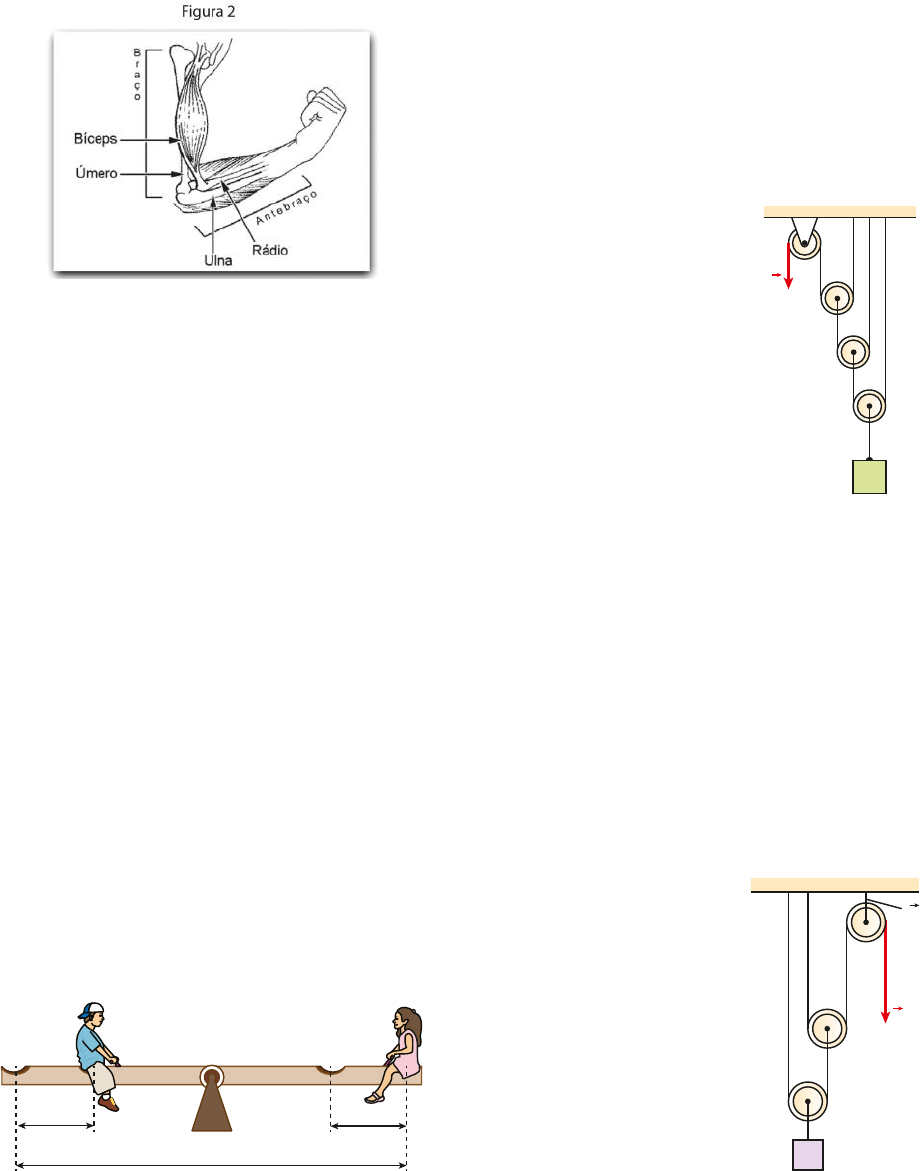 596 UNIDADE 3 | ESTÁTICA Os seres vivos utilizam esse tipo de mecanismo para a realização de diversos movimentos. Isso ocorre com o corpo humano quando, por exemplo, os ele- mentos ósseos e musculares do braço e do ante- braço interagem para produzir movimentos e fun- cionam como uma alavanca, conforme a figura 2. (commons.wikimedia.org/wiki/File:bíceps_(PSF).png Acesso em 12.09.2013. Adaptado) Nessa alavanca, o ponto de apoio está localizado na articulação entre o úmero, o rádio e a ulna. A força potente é aplicada próximo à base do rádio, onde o tendão do bíceps se insere, e a força resistente corresponde ao peso do próprio antebraço. Com base nessas informações, é possível con- cluir, corretamente, que a contração do bíceps provoca no membro superior um movimento de a) extensão, por um sistema de alavanca interfixa. b) extensão, por um sistema de alavanca inter- potente. c) flexão, por um sistema de alavanca inter- -resistente. d) flexão, por um sistema de alavanca interpo- tente. e) flexão, por um sistema de alavanca interfixa. 66. (IFSP) Em um parque de diversão Carlos e Isabela brincam em uma gangorra que dispõe de dois lu- gares possíveis de se sentar nas suas extremidades. As distâncias relativas ao ponto de apoio (eixo) estão representadas conforme a figura a seguir. 5,0 m 0,5 m0,5 m R e p ro d u ç ã o /F a te c , 2 0 1 4 . Considere a barra homogênea e de peso despre- zível e o apoio no centro da barra. Sabendo-se que Carlos tem 70 kg de massa e que a barra deve permanecer em equilíbrio ho- rizontal, assinale a alternativa correta que in- dica respectivamente o tipo de alavanca da gangorra e a massa de Isabela comparada com a de Carlos: a) Interfixa e maior que 70 kg. b) Inter-resistente e menor que 70 kg. c) interpotente e igual a 70 kg. d) Inter-resistente e igual a 70 kg. e) Interfixa e menor que 70 kg. 67. (OBF) É muito comum ob- servarmos em oficinas de automóveis, em hospitais e cais de portos, pessoas uti- lizando-se de talhas expo- nenciais ou polias móveis para elevar pesados obje- tos, tais como motores. Esse fato chama a atenção de curiosos no sentido de que a força (F ) aplicada à corda possui uma baixa in- tensidade. Se, na situação mostrada na figura acima, a talha possui três polias móveis, qual a intensidade da força aplicada na corda, se o peso do corpo A é de 1 600 N? a) 160 N b) 200 N c) 400 N d) 800 N e) 2 000 N 68. (Cefet) No sistema a seguir, em equilíbrio estático, os fios são ideais, e cada polia pesa P0 5 10 N. Sendo P 5 30 N, o módulo da tração T, que sustenta a polia superior, em new- tons, é a) 7,5 b) 15 c) 20 d) 25 e) 40 R e p ro d u ç ã o /A rq u iv o d a e d it o ra R e p ro d u ç ã o /A rq u iv o d a e d it o ra F A F T A R e p ro d u ç ã o /A rq u iv o d a e d it o ra 1CONECTEFIS_MERC18Sa_U3_Top1_p596a605.indd 596 8/9/18 9:08 AM 597TÓPICO 1 | ESTÁTICA DOS SÓLIDOS 69. (Enem) Uma invenção que significou um grande avanço tecnológico na Antiguidade, a polia com- posta ou a associação de polias, é atribuída a Arquimedes (287 a. C. a 212 a.C.). O aparato con- siste em associar uma série de polias móveis a uma polia fixa. A figura exemplifica um arranjo possível para esse aparato. É relatado que Arqui- medes teria demonstrado para o rei Hierão um outro arranjo desse aparato, movendo sozinho, sobre a areia da praia, um navio repleto de pas- sageiros e cargas algo que seria impossível sem a participação de muitos homens. Suponha que a massa do navio era de 3 000 kg, que o coeficien- te de atrito estático entre o navio e a areia era de 0,8 e que Arquimedes tenha puxado o navio com uma força F &, paralela à direção do movimento e Exercícios Nível 2 70. (Uerj) Um sistema é constituído por seis moedas idênticas fixadas sobre uma régua de massa des- prezível que está apoiada na superfície horizontal de uma mesa, conforme ilustrado abaixo. Obser- ve que, na régua, estão marcados pontos equidis- tantes, numerados de 0 a 6. Ao se deslocar a régua da esquerda para a direi- ta, o sistema permanecerá em equilíbrio na ho- rizontal até que determinado ponto da régua atinja a extremidade da mesa. De acordo com a ilustração, esse ponto está representado pelo se- guinte número: a) 1 b) 2 c) 3 d) 4 e) 5 71. (UFPI) Desejamos medir a massa M de um cor- po e a única balança de que dispomos é uma de dois pratos, equilibrada, com braços de tamanhos e massas diferentes. O procedimento adotado foi o seguinte: colocamos a massa a ser pesada em um dos pratos e equilibramos com uma massa m1, trocamos a massa M de prato e veri- de módulo igual a 400 N. Considere os fios e as polias ideais, a aceleração da gravidade igual a 10 m/s2 e que a superfície da praia é perfeitamen- te horizontal. Disponível em: www.histedbr.fac.unicamp.br Acesso em: 28 fev. 2013 (adaptado). O número mínimo de polias móveis usadas, nes- sa situação, por Arquimedes foi a) 3. b) 6. c) 7. d) 8. e) 10. R e p ro d u ç ã o /E n e m , 2 0 1 6 . ficamos que a massa equilibrante era outra, de valor m2. Diante dessa informação, podemos dizer que o valor da massa M será dado, corre- tamente, por: a) m m 2 1 21 d) m m 2 1 2 b) m m 2 1 2 e) m m1 2 c) m m 2 1 21 72. (IME-RJ) A figura abaixo mostra uma viga em equilíbrio. Essa viga mede 4,0 m e seu peso é desprezível. Sobre ela, há duas car- gas concentradas, sendo uma fixa e outra variável. A carga fixa, de 20 kN, está posi- cionada a 1,0 m do apoio A, enquanto a car- ga variável só pode posicionar-se entre a carga fixa e o apoio B. E.R. R e p ro d u ç ã o /I M E , 2 0 1 3 . R e p ro d u ç ã o /U e rj , 2 0 1 7. 1CONECTEFIS_MERC18Sa_U3_Top1_p596a605.indd 597 8/9/18 9:08 AM 598 UNIDADE 3 | ESTÁTICA Para que as reações verticais (de baixo para cima) dos apoios A e B sejam iguais a 25 kN e 35 kN, respectivamente, a posição da carga variável, em relação ao apoio B, e o seu mó- dulo devem ser: a) 1,0 m e 50 kN. b) 1,0 m e 40