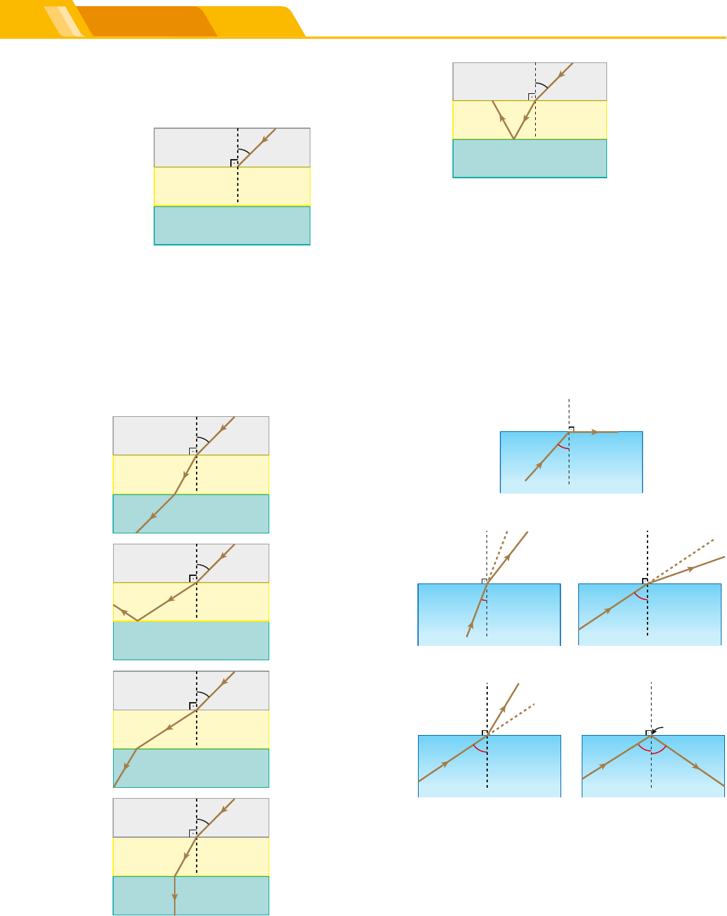 517TÓPICO 3 | REFRAÇÃO DA LUZ Nível 1Exercícios 27. (Vunesp) Três blocos retangulares feitos de ma- teriais diferentes e transparentes estão sobre- postos como mostra a figura. 145° 2 3 Um feixe de raio laser, proveniente do bloco 1, in- cide na superfície de separação entre os blocos 1 e 2, sob um ângulo de 458, penetrando no meio 2. Dos três blocos, o bloco 1 é o mais refringente e o bloco 3 é o menos refringente. O ângulo-limite de reflexão total entre os blocos 2 e 3 é de 458. Assinale a alternativa que melhor representa a trajetória do raio laser. a) 145° 2 3 b) 145° 2 3 c) 145° 2 3 d) 145° 2 3 e) 145° 2 3 28. Estreitos feixes cilíndricos de uma mesma luz monocromática são emitidos dentro de um bloco de vidro em direção à superfície plana e horizontal que separa esse meio do ar. Sabe-se que o vidro é mais refringente que o ar. Sabe-se também que no caso do esquema I, uma parcela do feixe luminoso incidente emerge rasante, isto é, parte do feixe refrata-se do vidro para o ar res- valando na interface de separação entre esses dois meios. a esquema I ar vidro b esquema II ar vidro g esquema III ar vidro g esquema IV ar vidro g g esquema V ar reflexão total vidro Se os ângulos a, b e g indicados obedecem à rela- ção b , a , g, então, estão corretos os esquemas: a) II, III, IV e V. b) II e V, apenas. c) IV e V, apenas. d) II, III e V, apenas. e) III e IV, apenas. R e p ro d u ç ã o /A rq u iv o d a e d it o ra Il u s tr a ç o e s : B a n c o d e i m a g e n s / A rq u iv o d a e d it o ra Il u s tr a ç õ e s : R e p ro d u ç ã o /A rq u iv o d a e d it o ra R e p ro d u ç ã o /A rq u iv o d a e d it o ra 2CONECTEFis_MERC18Sa_U3_Top3_p494a544.indd 517 7/7/18 2:32 PM 518 UNIDADE 3 | ÓPTICA GEOMÉTRICA B a n c o d e i m a g e n s /A rq u iv o d a e d it o ra 29. Um mergulhador A utiliza uma lanterna que emi- te um estreito feixe cilíndrico de luz monocromá- tica de dentro da água para a interface do líquido com o ar. Um outro mergulhador, B, observa o feixe luminoso refletido, como ilustra a figura. lanterna A B água ar u O índice de refração absoluto da água vale 1,325 enquanto o do ar é igual a 1,000. Considere, ainda, a tabela abaixo. sen 41 o sen 45 o sen 49 o sen 53 o sen 57 o 0,656 0,707 0,755 0,799 0,839 Nessas condições, o maior valor do ângulo u, in- dicado na figura e formado entre o feixe incidente e a superfície plana da água, para o qual a per- cepção do feixe refletido por parte do mergulha- dor B ocorra com intensidade máxima é de, apro- ximadamente: a) 418 b) 458 c) 498 d) 538 e) 578 30. Encanto E o diamante brilha; Reluz. Como um fulgurante em brasas, Conduz. Duro, frio e flamejante; Ardor. Pedra que corta; regalo de amante; Amor. Guy Medeiros No poema acima, o autor enaltece a capacidade que os diamantes têm de brilhar. Considere a seção principal de uma pedra pre- ciosa, transparente, lapidada e simétrica, como representada na figura a seguir, na qual está tra- çado o caminho óptico de um raio luminoso mo- nocromático que sofre reflexão total nas faces BC e CD. Nesse esquema está a explicação para o brilho dos diamantes: a luz penetra e, depois de se refletir internamente, retorna, atingindo os olhos do observador. Admita que o meio que en- volve a pedra seja o ar (índice de refração abso- luto igual a 1,0). B C D EA Sendo n o índice de refração absoluto da pedra para a cor da luz utilizada, pode-se afirmar que o mínimo valor de n que viabiliza a situação pro- posta é ligeiramente maior que: a) 5 2 b) 7 2 c) 2 d) 3 e) 5 31. (EsPCEx-RJ) Uma fibra óptica é um filamento flexível, transparente e cilíndrico, que possui uma estrutura simples composta por um núcleo de vidro, por onde a luz se propaga, e uma casca de vidro, ambos com índices de refração diferentes. Um feixe de luz monocromático, que se propaga no interior do núcleo, sofre reflexão total na su- perfície de separação entre o núcleo e a casca segundo um ângulo de incidência a, conforme representado no desenho a seguir (corte longitu- dinal de um trecho da fibra). Com relação à reflexão total mencionada acima, são feitas as afirmativas abaixo. I. O feixe luminoso propaga-se do meio menos refringente para o meio mais refringente. II. Para que ela ocorra, o ângulo de incidência a deve ser inferior ao ângulo limite da su- perfície de separação entre o núcleo e a casca. III. O ângulo limite da superfície de separação entre o núcleo e a casca depende do índice de refração do núcleo e da casca. IV. O feixe luminoso não sofre refração na super- fície de separação entre o núcleo e a casca. B a n c o d e i m a g e n s /A rq u iv o d a e d it o ra 2CONECTEFis_MERC18Sa_U3_Top3_p494a544.indd 518 7/7/18 2:32 PM 519TÓPICO 3 | REFRAÇÃO DA LUZ R e p ro d u ç ã o /E s P C E x , 2 0 1 4 B a n c o d e i m a g e n s / A rq u iv o d a e d it o ra Entre as afirmativas apresentadas, as únicas cor- retas são: a) I e II b) III e IV c) II e III d) I e IV e) I e III 32. Um peixe, observado diretamente do alto sobre um lago, parece estar a 3,0 m da superfície. ar o água imagem do peixe peixe p' 5 3,0 m p Se o índice de refração da água em relação ao ar é 4 3 , determine a profundidade em que se encontra realmente o peixe em relação à superfície do lago. Resolução: Pela Equação de Gauss, para o dioptro plano, temos p' p n n obs obj 5 em que: nobs: índice de refração absoluto do meio onde está o observador. nobj: índice de refração absoluto do meio onde está o objeto. Assim: p' p n n ar água 5 ⇒ 3,0 p 1 4 3 5 [ p 5 4,0 m E.R. Convém destacar que a imagem visualizada pelo observador, notada aparentemente mais ao raso, é de natureza virtual. 33. A figura abaixo ilustra uma pessoa observando um peixe que se encontra no fundo de um tanque de vidro cheio de água. As paredes do tanque têm espessura desprezível. B E C A D A imagem do peixe observada pela pessoa é de natureza r