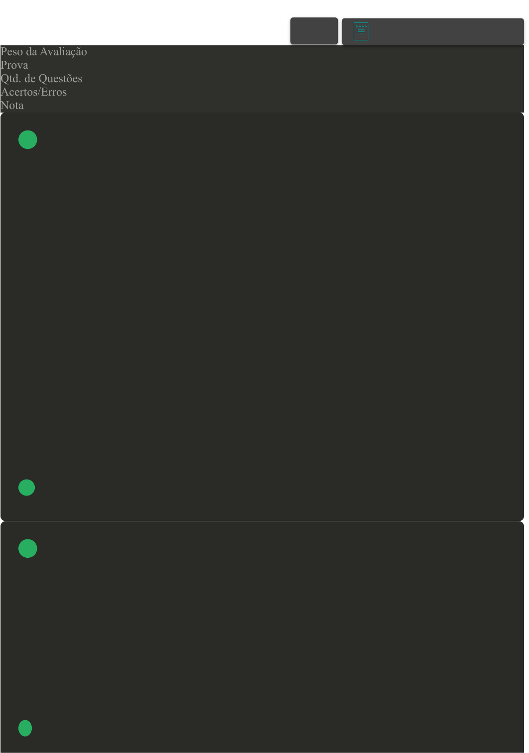 28/06/2023, 15:39 Avaliação II - Individual about:blank 1/5 Prova Impressa GABARITO | Avaliação II - Individual (Cod.:821616) Peso da Avaliação 1,50 Prova 65358805 Qtd. de Questões 10 Acertos/Erros 10/0 Nota 10,00 Com relação ao artigo 24 da Lei de Diretrizes e Bases da Educação, que apresenta a organização do ensino fundamental e médio, e descreve: a carga horária, classificação em séries, verificação de rendimento escolar, entre outros. Sobre esses critérios, analise as sentenças a seguir: I- A verificação de rendimento escolar poderá ser cumulativa e contínua através do desempenho do aluno nos aspectos qualitativo e quantitativo. II- A manutenção dos estudos regulares sem a possibilidade de aceleração de estudos para os alunos com atraso escolar. III- A impossibilidade de avanço nos cursos e séries através de verificação do aprendizado pelo profissional da educação da escola. IV- A recuperação de estudos é obrigatório, de preferência em paralelo ao período letivo e aos alunos com baixo rendimento escolar. Assinale a alternativa CORRETA: FONTE: https://www2.senado.leg.br/bdsf/bitstream/handle/id/544283/lei_de_diretrizes_e_bases_2ed.pdf. Acesso em: 23 out. 2019. A As sentenças II e III estão corretas. B Somente a sentença II está correta. C Somente a sentença IV está correta. D As sentenças I e IV estão corretas. A LDB/96, em seu título V, no que se refere aos níveis e modalidades de educação através do Artigo 21, determina que a educação escolar compõe-se de educação básica, a qual é formada pela educação infantil, ensino fundamental e ensino médio, e da educação superior. No Artigo 24 da LDB/96 apresenta-se a organização do ensino fundamental e médio, no qual o dispositivo I, trata da carga horária mínima. A respeito desta carga horária, assinale a alternativa CORRETA: A A carga horária mínima anual será de 720 horas, distribuídas por um mínimo de 180 dias de efetivo trabalho escolar. B A carga horária mínima anual será de 720 horas, distribuídas por um mínimo de 190 dias de efetivo trabalho escolar. C A carga horária mínima anual será de 800 horas, distribuídas por um mínimo de 200 dias de efetivo trabalho escolar. VOLTAR A+ Alterar modo de visualização 1 2 28/06/2023, 15:39 Avaliação II - Individual about:blank 2/5 D A carga horária mínima anual será de 820 horas, distribuídas por um mínimo de 220 dias de efetivo trabalho escolar. Quando falamos em Educação Infantil, acreditamos que, nessa etapa da vida das crianças, não seria necessária uma avaliação dos trabalhos realizados. Somente depois da construção de documentos que efetivaram esse nível de ensino, ocorreu a preocupação com formas de avaliação, não em nível quantitativo, mas qualitativo. Sobre formas de avaliação em nível qualitativo, assinale a alternativa CORRETA: A Trabalhar 180 dias letivos com as crianças de maneira ininterrupta. B Trabalhar de maneira multidisciplinar e interdisciplinar, através da ludicidade pedagógica. C Trabalhar de maneira que se apure e ocorra a avaliação de maneira quantitativa. D Trabalhar com alfabetização, sendo obrigatório a criança sair alfabetizada da Educação Infantil. O INEP - Instituto Nacional de Estudos e Pesquisa Educacionais Anísio Teixeira - nos diz que o Sinaes foi criado pela Lei n° 10.861, de 14 de abril de 2004. O Sistema Nacional de Avaliação da Educação Superior (Sinaes) é formado por três componentes principais: a avaliação das instituições, dos cursos e do desempenho dos estudantes. O Sinaes avalia todos os aspectos que giram em torno desses três eixos, principalmente o ensino, a pesquisa, a extensão, a responsabilidade social, o desempenho dos alunos, a gestão da instituição, o corpo docente e as instalações. Este programa possui seus objetivos, os quais determinam sua funcionalidade. Sobre estes objetivos, analise as sentenças a seguir: I- Melhorar o mérito e o valor das instituições, áreas, cursos e programas, nas dimensões de ensino, pesquisa, extensão, gestão e formação. II- Melhorar o banco de questões das instituições, as entrevistas e avaliação externa do processo acadêmico. III- Melhorar a qualidade da educação superior e orientar a expansão da oferta, além de promover a responsabilidade social das IES (Instituições de Ensino Superior), respeitando a identidade institucional e a autonomia de cada organização. IV- Melhorar a análise, a reformulação e o desenvolvimento de questões internas de interesse meramente especulativo. Assinale a alternativa CORRETA: FONTE: BRASIL. SINAES. Disponível em: . Acesso em: 13 ago. 2018. A As sentenças I e III estão corretas. B As sentenças II e IV estão corretas. C As sentenças I e II estão corretas. D As sentenças III e IV estão corretas. 3 4 28/06/2023, 15:39 Avaliação II - Individual about:blank 3/5 O Fundo Nacional de Desenvolvimento da Educação possui o objetivo de fornecer as condições para o desenvolvimento de ações, planos e programas destinados ao sistema de ensino. Frente a isso, qual o programa que cuida do envio de obras e materiais de apoio a atividades relativas à educação básica? A Proinfância. B Biblioteca na Escola. C Caminho da Escola. D Livro Didático. O Ministério da Educação, em suas atribuições, criou mecanismos que auxiliam na melhor formação do jovem brasileiro. Estes mecanismos estão ligados também à questão avaliativa dos programas. A respeito destes programas, associe os itens, utilizando o código a seguir: I- Pronatec. II- Prouni. III- Sinaes. IV- Enade. ( ) Tem com objetivo fomentar e apoiar a expansão da rede física de atendimento da educação profissional e tecnológica. ( ) Possui uma série de instrumentos complementares: autoavaliação, avaliação externa, Enade, avaliação dos cursos de graduação e instrumentos de informação. ( ) Concede aos estudantes brasileiros que não possuem n