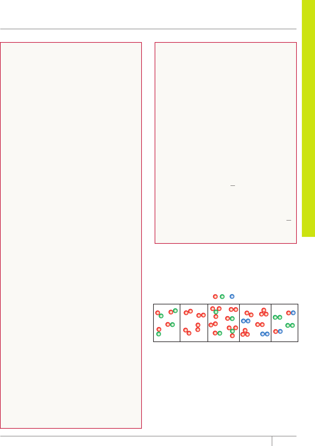 Os sistemas químicos e suas transformações 7Editora Bernoulli Q U ÍM IC A Divisibilidade Divisibilidade é a qualidade que os corpos apresentam de poderem ser divididos em porções cada vez menores, sem alterarem a sua constituição. Inércia Inércia é a capacidade que um corpo apresenta de não poder, por si só, modificar a sua condição de movimento ou de repouso. Propriedades específicas da matéria As propriedades que nos permitem distinguir uma espécie de matéria de outra são denominadas propriedades específicas da matéria. As propriedades específicas podem ser propriedades físicas, químicas ou organolépticas. Propriedades físicas São propriedades que caracterizam individualmente uma substância sem que haja alteração da composição dessa substância. Exemplos: Temperatura de fusão, temperatura de ebulição, densidade, solubilidade, calor específico, etc. Propriedades químicas São propriedades que caracterizam individualmente uma substância por meio da alteração da composição dessa substância. Exemplos: Decomposição térmica do carbonato de cálcio, originando gás carbônico e óxido de cálcio; oxidação do ferro, originando a ferrugem, etc. Propriedades organolépticas São propriedades que impressionam um dos cinco sentidos (olfato, visão, tato, audição e paladar). Exemplos: Cor, sabor, odor, brilho, etc. Propriedades funcionais da matéria As propriedades que nos permitem agrupar substâncias por apresentarem propriedades químicas semelhantes são denominadas propriedades funcionais da matéria. Exemplos: • Ácidos de Arrhenius são substâncias que, em contato com metais alcalinos e alcalinoterrosos, produzem sais e gás hidrogênio. • Os compostos fenólicos são neutralizados por bases fortes, produzindo fenolatos e água. Propriedades extensivas da matéria As propriedades que dependem das dimensões (tamanho ou extensão) dos corpos são denominadas extensivas. Exemplos: • Massa e volume: duas amostras de um mesmo material de tamanhos diferentes apresentam massas e volumes diferentes. Outros exemplos de propriedades extensivas: quantidade de matéria em mols, área superficial, energia térmica, energia interna, entalpia, entropia, energia livre de Gibbs e corrente elétrica. Propriedades intensivas da matéria As propriedades que não dependem das dimensões (tamanho ou extensão) dos corpos são denominadas intensivas. Exemplo: • Temperatura: duas amostras de tamanhos diferentes podem apresentar a mesma temperatura. Outros exemplos de propriedades intensivas: pressão, pontos de fusão e de ebulição, concentração (mol.L–1) e viscosidade. Algumas propriedades intensivas são derivadas (obtidas) de outras grandezas extensivas, por exemplo, a densidade. Por definição, densidade é a razão entre a massa de uma amostra e o volume ocupado por ela. Matematicamente, essa definição é expressa por: d = m V Como é possível duas propriedades extensivas, massa e volume, originarem uma propriedade intensiva, a densidade? Quando dobramos a massa de uma amostra, dobramos também o volume dessa amostra e, portanto, a razão m V permanece a mesma, independentemente dos valores individuais de massa e de volume. EXERCÍCIOS DE FIXAÇÃO 01. Os itens a seguir são relativos a este esquema em que estão representados cinco sistemas (I a V), formados por moléculas constituídas por três tipos de átomo (A, B e C) representados por , e , respectivamente. I V IV IIIII A) Qual(is) desses sistemas é(são) substância(s) pura(s)? B) Qual(is) desses sistemas é(são) mistura(s)? C) Qual(is) desses sistemas é(são) substância(s) simples? D) Qual(is) desses sistemas é(são) substância(s) composta(s)? E) Qual o número de componentes de cada sistema? F) Qual o número de elementos que entram na composição de cada sistema? 8 Coleção Estudo Frente A Módulo 01 02. (UFRGS–2007) Na temperatura de 595 ºC e na pressão de 43,1 atm, o fósforo apresenta o seguinte equilíbrio: P(sólido, violeta) P(líquido) P(gasoso) Esse sistema apresenta A) 1 componente e 2 fases. B) 1 componente e 3 fases. C) 3 componentes e 1 fase. D) 3 componentes e 2 fases. E) 3 componentes e 3 fases. 03. (UNESP–2008) Uma amostra de água do Rio Tietê, que apresentava partículas em suspensão, foi submetida a processos de purificação, obtendo-se, ao final do tratamento, uma solução límpida e cristalina. Em relação às amostras de água antes e após o tratamento, podemos afirmar que correspondem, respectivamente, a A) substâncias composta e simples. B) substâncias simples e composta. C) misturas homogênea e heterogênea. D) misturas heterogênea e homogênea. E) mistura heterogênea e a substância simples. 04. (UFU-MG–2007) Analise os processos a seguir. Marque aquele que NÃO representa uma transformação química. A) Oxidação de ferramenta B) Queimada da floresta C) Evaporação do álcool D) Digestão de sanduíche 05. (PUCPR–2010) Os fenômenos a seguir são exemplos de fenômenos químicos. I. O vinho, que é transformado em vinagre pela ação da bactéria Acetobacter acetil. O leite, que é transformado em coalhada pela a ação dos micro-organismos Lactobacillus bulgaricus e Streptococcus themophilus. II. A planta captura CO2 da atmosfera e o transforma em seiva, liberando O2. III. O processo de digestão dos alimentos. IV. O ímã atrai a limalha de ferro sob a ação magnética. V. É possível transformar o metal cobre em fios e em lâminas. A) Apenas as assertivas I e II estão corretas. B) Apenas a assertiva I está correta. C) Todas as assertivas estão corretas. D) Apenas a assertiva II está correta. E) Apenas as assertivas I, II e III estão corretas. EXERCÍCIOS PROPOSTOS 01. (PUC Minas–2007) Considere os experimentos equacionados: I. Água → gás hidrogênio + gás oxigênio II. Gelo → água líquida III. Papel → gás carbônico + água IV. Iodo(s) → iodo(g) V. Vinho → vinagre VI. Barra de ferro → ferrug