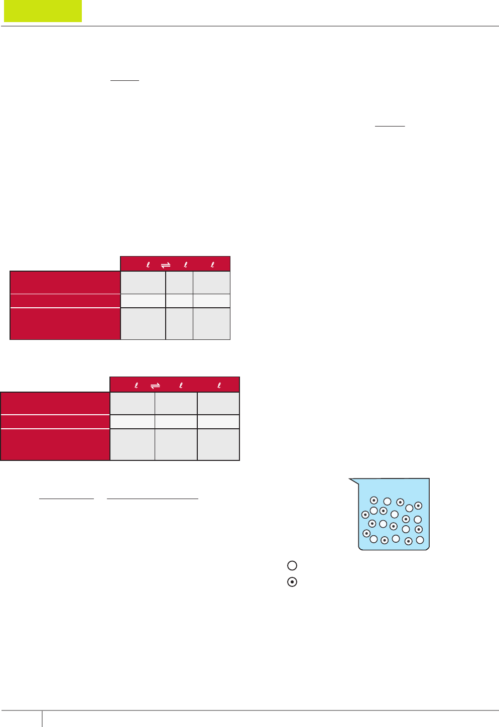 46 Coleção Estudo Frente C Módulo 21 O grau de equilíbrio pode aparecer também na forma percentual. α% = n0 – neq. n0 . 100 Quando se fala que o grau de equilíbrio é, por exemplo, 0,4, significa que 40% de reagente foi convertido em produto. A dissociação do PCℓ5(g) é representada pela seguinte equação de equilíbrio: PCℓ5(g) PCℓ3(g) + Cℓ2(g) Com uma concentração inicial de 4,0x10–1 mol.L–1 de PCℓ5 e sabendo-se que o grau de equilíbrio em certa temperatura é igual a 80% ou 0,8, deseja-se calcular a constante de equilíbrio nessa mesma temperatura. Nesse caso, o mais adequado é montar uma tabela de equilíbrio químico. Uma tabela desse tipo pode ser montada da seguinte forma, observando-se os coeficientes estequiométricos: PCℓ5 PCℓ3 + Cℓ2 Quantidade ou concentração inicial n 0 0 Consumido / Formado αn αn αn Quantidade ou concentração no equilíbrio (n – αn) αn αn Substituindo as incógnitas n (quantidade inicial de reagente) e α (grau de equilíbrio) por seus valores numéricos: PCℓ5 PCℓ3 + Cℓ2 Quantidade ou concentração inicial 4,0x10 –1 0 0 Consumido / Formado 3,2x10–1 3,2x10–1 3,2x10–1 Quantidade ou concentração no equilíbrio 0,8x10–1 3,2x10–1 3,2x10–1 Calcula-se, então, a constante de equilíbrio: Kc = [PC�3] . [C�2] (3,2x10–1) . (3,2x10–1) 0,8x10–1 = 1,28 [PC�5] = QUOCIENTE REACIONAL (Q) É preciso encontrar uma maneira de prever se uma mistura reacional qualquer está ou não em equilíbrio químico. No caso de não haver equilíbrio, deseja-se saber a direção da reação, ou seja, se os reagentes têm tendência a formar mais produtos, ou se os produtos tendem a se transformar em reagentes. O quociente reacional permite fazer essas previsões. A expressão que define o quociente reacional é a mesma utilizada para a constante de equilíbrio, com a diferença de que, na primeira, as concentrações empregadas não são necessariamente as de equilíbrio. São empregadas as concentrações de um sistema químico arbitrário e, muitas vezes, não se sabe se o sistema está ou não em equilíbrio químico. Utilizando-se novamente, como exemplo, o seguinte equilíbrio em certa temperatura: 2NO2(g) N2O4(g) Seu quociente reacional pode ser expresso como [N2O4] [NO2] 2 Q = Na expressão anterior, [N2O4] e [NO2] não são, necessariamente, concentrações de equilíbrio. Ao conhecer a constante de equilíbrio, na referida temperatura, e comparar o quociente reacional com ela, tem-se condições de saber se a reação deve avançar no sentido direto, inverso ou se o equilíbrio já foi estabelecido. Relação entre Q e Kc • Se Q < Kc, o sistema não está em equilíbrio, e parte dos reagentes deve ser convertida em produtos, ou seja, a reação tem de avançar no sentido direto para estabelecer o equilíbrio. • Se Q = Kc, o sistema está em equilíbrio. • Se Q > Kc, o sistema não está em equilíbrio, e parte dos produtos deve ser convertida em reagentes, ou seja, a reação tem de avançar no sentido inverso para o equilíbrio ser alcançado. EXERCÍCIOS DE FIXAÇÃO 01. (UEL-PR–2008) A figura seguinte representa a quantidade de moléculas de frutose e glicose, em solução aquosa, a 25 ºC e em equilíbrio químico, de acordo com a equação Frutose(aq) Glicose(aq) Representação de 1 molécula de frutose Representação de 1 molécula de glicose A constante de equilíbrio a 25 ºC para a reação é igual a Dados: Volume da solução = 3,0 L . A) 0,40. B) 0,83. C) 0,28. D) 1,20. E) 1,00. Constantes de equilíbrio 47Editora Bernoulli Q U ÍM IC A 02. (UFOP-MG) A reação H2O(g) + CO(g) � 1 2 H2(g) + CO2(g) em equilíbrio, apresenta as constantes cinéticas nas direções 1 e 2 iguais a k1 = 2x10 –4 L2.mol–1.h–1 e k2 = 8x10 –4 L2.mol–1.h–1, respectivamente. Sabendo-se que v1 = k1 . [H2O] . [CO] e v2 = k2 . [H2] . [CO2], pede-se: A) CALCULE a constante de equilíbrio no sentido 1. B) CALCULE a concentração de CO2(g), no equilíbrio, sabendo que as concentrações iniciais de H2O(g) e CO(g) são iguais a 1,0 mol.L–1. 03. (UNESP) O hidrogênio pode ser obtido do metano, de acordo com a equação química em equilíbrio CH4(g) + H2O(g) CO(g) + 3H2(g) A constante de equilíbrio dessa reação é igual a 0,20 a 900 K. Em uma mistura dos gases em equilíbrio a 900 K, as pressões parciais de CH4(g) e de H2O(g) são ambas iguais a 0,40 atm e a pressão parcial de H2(g) é de 0,30 atm. A) ESCREVA a expressão da constante de equilíbrio. B) CALCULE a pressão parcial de CO(g) no equilíbrio. 04. 64,0 g de HI gasoso sofrem decomposição à temperatura constante em recipiente fechado. 2HI(g) H2(g) + I2(g) Estabelecido o equilíbrio, verifica-se a presença de 12,8 g de HI no sistema. Pede-se A) o grau de equilíbrio. B) o valor da constante de equilíbrio. 05. (UEG-GO–2007) O N2O4 é um gás incolor e pode transformar-se no gás castanho NO2, de acordo com o equilíbrio apresentado na figura a seguir. N2O4(g) � 2NO2(g) Considere que 4,0 mol do gás incolor e 2,0 mol do gás castanho foram misturados em um recipiente fechado de 1,0 L de capacidade, à temperatura de 227 ºC. Admita ainda que, a essa temperatura, a constante de equilíbrio, em termos das concentrações, vale 40. Com base nas informações do texto e da figura, e considerando ¹3 = 1,73, faça o que se pede. A) EXPLIQUE, por meio de cálculos, se haverá diminuição ou aumento na concentração de NO2 até que o equilíbrio seja estabelecido. B) DETERMINE as concentrações de N2O4 e NO2 no estado de equilíbrio. EXERCÍCIOS PROPOSTOS 01. (PUC Minas–2010) Na tabela a seguir, assinale a reação que MAIS favorece o produto. Reação Keq A) 2NO2(g) N2O4(g) 1,0x10 2 B) 2NO(g) + O2(g) 2NO2(g) 6,4x10 5 C) 2NOBr(g) 2NO(g) + Br2(g) 6,4x10 –2 D) CH4(g) + H2O(g) CO(g) + 3H2(g) 5,7 02. (FUVEST-SP) A altas temperaturas, N2 reage com O2 produzindo NO, um poluente atmosférico. N2(g) + O2(g) 2NO(g) À temperatura de 2 0