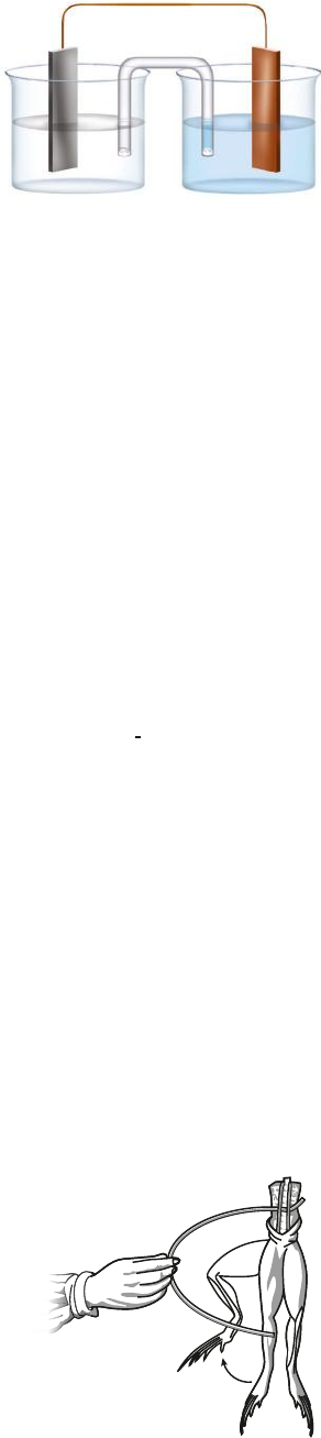 296 UNIDADE 5 | ELETROQUÍMICA 5. Considere a seguinte pilha: 1 1Cu | Cu || Ag |Ag0 2 0. Ag0 Ag1 (aq) NO 3 2(aq) NO 3 2(aq) Cu0 Cu21 (aq) Ponte salina L u is M o u ra /A rq u iv o d a e d it o ra Sabendo que o cobre cede elétrons espontanea- mente aos íons Ag+, é correto afirmar que: a) a concentração de íons Ag+ na solução diminui. b) a prata é o agente redutor. c) o íon Cu21 sofre oxidação. d) o eletrodo negativo ou ânodo terá a sua massa aumentada. e) o fluxo de elétrons é: →Ag Ag01 . 6. (Uema) Somente quem tem restaurações dentárias sa- be o infortúnio que é a sensação de tomarmos um choque ao tocar no dente obturado com um objeto metálico. Simplesmente porque forma-se uma pi- lha, dois metais diferentes em meio ácido. O alu- mínio transforma-se no polo negativo, e seus elé- trons caminham através da saliva (que é levemente ácida) para a obturação, que recebe os elétrons. Fonte: SUPERINTERESSANTE. No 7, ano 13, jul. 1999. São Paulo: Abril. Com base nesse texto, responda: a) por que o alumínio constitui o polo negativo da pilha? b) qual a denominação dada ao polo negativo? c) qual o papel assumido pela saliva nessa pilha? d) qual a denominação dada à saliva? 7. (Fuvest-SP) Na década de 1780, o médico italiano Luigi Galvani realizou algumas observações, uti- lizando rãs recentemente dissecadas. Em um dos experimentos, Galvani tocou dois pontos da mus- culatura de uma rã com dois arcos de metais diferentes, que estavam em contato entre si, ob- servando uma contração dos músculos, conforme mostra a figura a seguir. X os músculos da rã se contraem, e a perna se move Interpretando essa observação com os conhecimen- tos atuais, pode-se dizer que as pernas da rã con- tinham soluções diluídas de sais. Pode-se, também, fazer uma analogia entre o fenômeno observado e o funcionamento de uma pilha. Considerando essas informações, foram feitas as seguintes afirmações: I. Devido à diferença de potencial entre os dois metais, que estão em contato entre si e em contato com a solução salina da perna da rã, surge uma corrente elétrica. II. Nos metais, a corrente elétrica consiste em um fluxo de elétrons. III. Nos músculos da rã, há um fluxo de íons as- sociado ao movimento de contração. Está correto o que se afirma em: a) I, apenas. b) III, apenas. c) I e II, apenas. d) II e III, apenas. e) I, II e III. 8. (Uece) As pilhas de marca-passo precisam ser pe- quenas, confiáveis e duráveis, evitando algumas cirurgias para sua troca. Como não formam gases, elas podem ser hermeticamente fechadas. Sua du- ração é de aproximadamente 10 anos. Essas pilhas são formadas por lítio metálico e iodo (LiI). Assina- le a alternativa que mostra as semirreações que ocorrem corretamente para formar o produto LiI. a) → → cátodo: 2 Li 2 Li 2 e ; ânodo: I 2 e 2 I . o 2 1 1 1 2 2 2 b) → → cátodo: 2 Li 2 e 2 Li ; ânodo: I 2 I 2 e . o 2 1 1 2 1 2 2 c) → → ânodo: 2 Li 2 Li 2 e ; cátodo: I 2 e 2 I . o 2 1 1 1 2 2 2 d) → → ânodo: 2 Li 2 e 2 Li ; cátodo: I 2 I 2 e . o 2 1 1 2 1 2 2 9. (UFPE) Uma pilha de uso comercial é baseada na reação de óxido de prata (Ag 2 O) com um ânodo de zinco, produzindo prata metálica e óxido de zinco (ZnO). Esta pilha funciona em meio alcalino, e apresenta as seguintes características: ( ) na reação da pilha, o Ag 2 O recebe elétrons. ( ) o zinco atua como agente oxidante. ( ) a prata tem seu estado de oxidação decresci- do de 2 unidades. ( ) para cada mol de óxido de prata consumido, também são consumidos 2 mol de zinco. ( ) no óxido de zinco, o estado de oxidação do zinco é 11. X X V-F-F-F-F R e p ro d u ç ã o /A rq u iv o d a e d it o ra arco de ferro arco de cobre arco de ferro arco de cobre os músculos da rã se contraem, e a perna se move 2CONECTEQuim_MERC18Sa_U5_Cap15_p285a298.indd 296 8/2/18 11:59 AM 297CAPÍTULO 15 | PILHAS Conexão Eletricidade As primeiras pilhas Por volta de 1780, o anatomista italiano Luigi Galvani (1737-1798) observou que os músculos da coxa de rãs recém-dissecadas sofriam contrações quando em contato simultâneo com dois metais diferentes. Galvani concluiu que o fenômeno estava associado à presença de eletricidade, originária dos músculos (os metais serviam de condutores). Já o físico italiano Alessandro Volta interpretou o mesmo fato de maneira diferente. Ele julgou que a eletricidade tinha sua origem nos metais e, com base nisso, começou a realizar uma série de experimentos usando pares de diferentes metais. Os resultados desses experimentos logo comprovaram que ele tinha razão. Em seus experimentos, Volta colocava um “condutor úmido” (solução aquosa salina) entre dois “condutores secos” (geralmente metais), ligando-os com um fio condutor. Assim, ele descobriu que se estabelece, segundo a força predominante, à direita ou à esquerda, uma corrente elétrica, uma circulação desse fluido, que cessa apenas ao se romper o circuito, e se restabelece logo, sempre que o circui- to é religado. Como podemos perceber, Volta já tinha, naquele momento, a ideia da pilha e também notado que o sentido do fluxo da corrente elétrica dependia dos metais que formavam cada par de “condutores secos”. Hoje, sabemos que o metal que libera os elétrons sofre oxidação e é aquele que tem o maior potencial de oxidação, ou seja, menor potencial de redução. Em 1800, em uma carta ao cientista inglês Joseph Banks (1743-1820), Volta relata a construção de sua primeira pilha: Coloco horizontalmente, sobre uma mesa ou uma base, um dos discos me- tálicos — de prata, por exemplo — e sobre ele disponho um segundo disco de zinco; sobre este coloco um dos discos de flanela embebido em salmoura; depois outro disco de prata, seguido imediatamente por outro de zinco, sobre o qual pouso outra vez um disco umedecido. Continuo então da mesma maneira... até formar, com vários desses estágios, uma coluna tão alta que possa ai