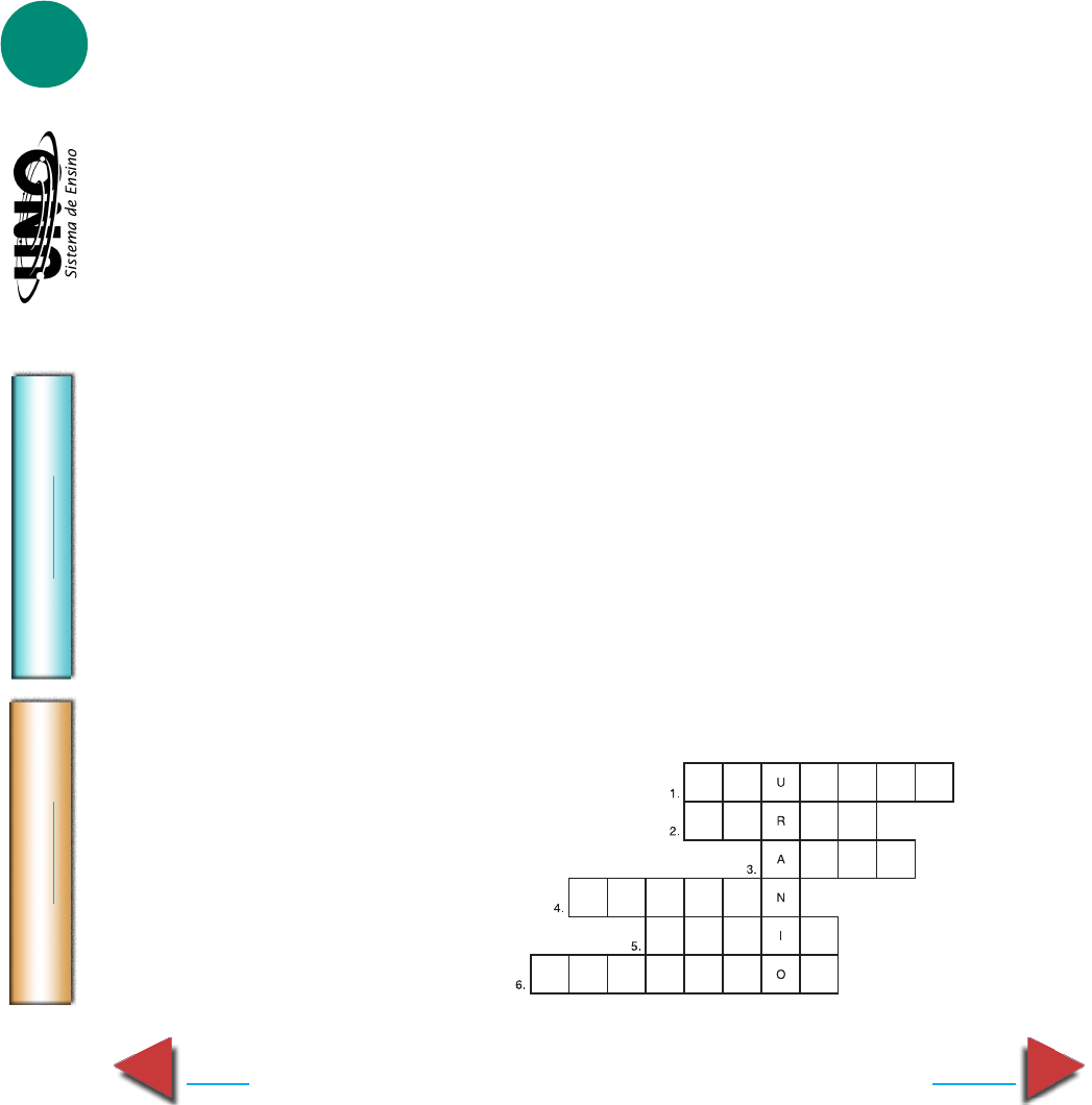 QUÍMICA - Estrutura atômica IM PR IM IR Voltar GA BA RI TO Avançar 4 16. UFR-RJ Dados os elementos A, B e C sabe-se que: • A e C são isótopos, sendo que A tem um nêutron a menos que C. • B e C são isóbaros. • C tem número de massa e número atômico 4 vezes maior que os do flúor. • B tem o mesmo número de nêutrons do átomo A. Indique, para os elementos A, B e C: a) os números atômicos e os números de massas; b) os números de prótons, nêutrons e elétrons; c) as configurações eletrônicas. 17. UEMG Devido à sua estrutura, um átomo de sódio tem as características abaixo, exceto. a) Seu isótopo de massa 23 contém 12 nêutrons. b) Fica com 10 elétrons quando se torna cátion. c) Possui 2 elétrons no primeiro nível e 9 elétrons no segundo nível. d) Tem 11 prótons no núcleo. 18. U. Alfenas-MG Sobre as partículas que constituem um átomo pode-se afirmar que: a) os elétrons têm grande contribuição tanto na massa do átomo, quanto na sua carga; b) a neutralidade das espécies ocorre devido à presença de prótons, elétrons e nêutrons; c) praticamente os prótons e os nêutrons é que são responsáveis pela massa do átomo; d) a massa atômica e o número de massa medem exatamente o mesmo; e) através do número de massa é possível se conhecer a estabilidade do átomo. 19. F.M. Itajubá-MG As afirmativas incompletas: 1. Átomos de mesmo número atômico e número de nêutrons diferentes são denomina- dos ............... . 2. Os átomos 20A40 e 20C42 são ............... . 3. Átomos com diferentes números atômicos e mesmo número de nêutrons são denomina- dos ............... . 4. Átomos com diferentes números atômicos e mesmo número de massa são denomina- dos ............... . 5. Os átomos 20Y42 e 18X40 são ............... . 6. Os átomos 20A40, 19B40 e 18E40 são ............... . Tornar-se-ão completas se, na mesma ordem numérica, introduzirmos as palavras: a) Isótonos, isóbaros, isótonos, isóbaros, isótopos, isótonos. b) Isótopos, isótonos, isóbaros, isóbaros, isótopos, isótonos. c) Isóbaros, isótopos, isótopos, isótopos, isótopos, isótonos. d) Isótopos, isótopos, isótonos, isóbaros, isótonos, isóbaros. e) Isótopos, isótopos, isóbaros, isótonos, isóbaros, isótonos. 20. UFR-RJ Complete as horizontais: 1. Partícula fundamental que não apresenta carga. 2. Um íon sempre apresenta ............... . 3. Partícula emitida pelo núcleo radioativo. 4. Partícula de carga positiva existente no núcleo. 5. Apresenta número atômico igual a 11. 6. Átomos que apresentam os mesmos números atômicos e números de massa diferentes. QUÍMICA - Estrutura atômica IM PR IM IR Voltar GA BA RI TO Avançar 5 21. UFGO Os diagramas, a seguir, representam distribuições eletrônicas para o átomo de nitrogênio: Considerando-se essas distribuições, julgue os itens abaixo. ( ) I e II seguem a regra de Hund. ( ) III e IV obedecem ao princípio de Pauli. ( ) II representa a distribuição do estado fundamental. ( ) em I, dois elétrons possuem o mesmo conjunto de números quânticos. 22. UFRS Ao comparar-se os íons K+ e Br– com os respectivos átomos neutros de que se originaram, pode-se verificar que: a) houve manutenção da carga nuclear de ambos os íons; b) o número de elétrons permanece inalterado; c) o número de prótons sofreu alteração em sua quantidade; d) ambos os íons são provenientes de átomos que perderam elétrons; e) o cátion originou-se do átomo neutro a partir do recebimento de um elétron. 23. U.E. Ponta Grossa-PR Sobre as representações abaixo, assinale o que for correto: I. 26 54 Fe IV. 26 57 2Fe + II. 26 56 2Fe + V. 26 57 3Fe + III. 26 56 3Fe + VI. 26 56 Fe 01. I e VI são isótopos, apresentam a mesma configuração eletrônica, mas não tem a mesma quantidade de nêutrons. 02. I e II têm o mesmo número de prótons e de elétrons. 04. Embora sejam isótopos isoeletrônicos, II e IV não tem a mesma massa atômica. 08. III e V, que não tem o mesmo número de neutrôns, apresentam menor quantidade de elétrons que o átomo IV. 16. II e IV não tem o mesmo número de neutrôns nem a mesma massa atômica. Dê, como resposta, a soma das afirmativas corretas. 24. U.F. Santa Maria-RS A alternativa que reúne apenas espécies isoeletrônicas é: a) 7N3–, 9F – , 13Al3+ b) 16So, 17Cl – , 19K+ c) 10Neo, 11Nao, 12Mgo d) 20Ca2+, 38Sr2+, 56Ba2+ e) 17Cl – , 35Br – , 53I – 25. VUNESP Em relação aos números de massa, prótons, nêutrons e elétrons, 28 14 Si e 27 13 Al são classificados como a) isóbaros. b) isótopos. c) isótonos. d) isoeletrônicos. e) isoestruturais.