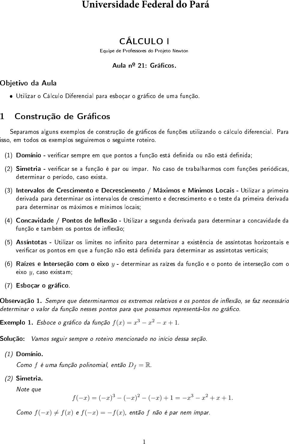 Separamos alguns exemplos de construção de grá�cos de funções utilizando o cálculo diferencial. Para